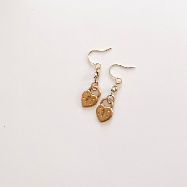 【padlock ピアス イヤリング】 心をつかむハート型南京錠のアクセサリーが登場! ⚪︎特徴⚪︎ このpadlock ピアス イヤリングは、真鍮製のハート型南京錠モチーフがキュート 小さくて可愛らしい見た目ながらも、存在感を放ち、様々なスタイルにマッチします。 普 あなたの普段のコーディネートを一層引き立てることでしょう。 ⚪︎素材⚪︎ 真鍮 ガラス ⚪︎サイズ⚪︎ 全長約3.0cm 古典的な南京錠のデザインが、新しい印象を与えるpadlock ピアス イヤリングをぜひお楽しみください ▪️ピアス(画像のもの)、イヤリング、チタンフックピアスからお選びいただけます。