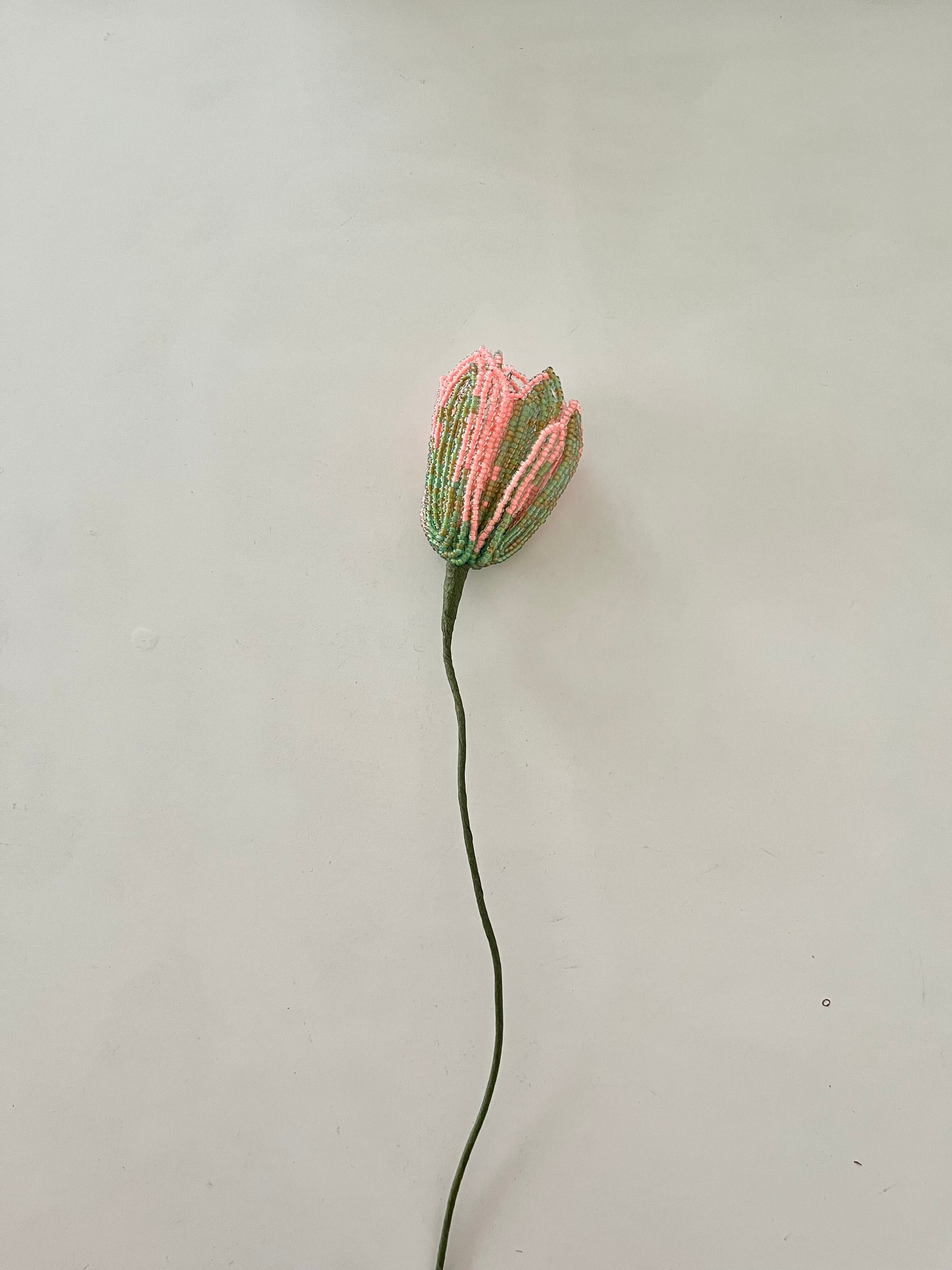 このチューリップ グリーンランドビーズフラワーは、目を引くグリーンとピンクのコントラストが特長で、どんな空間にも華やかなアクセントを添えます。