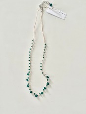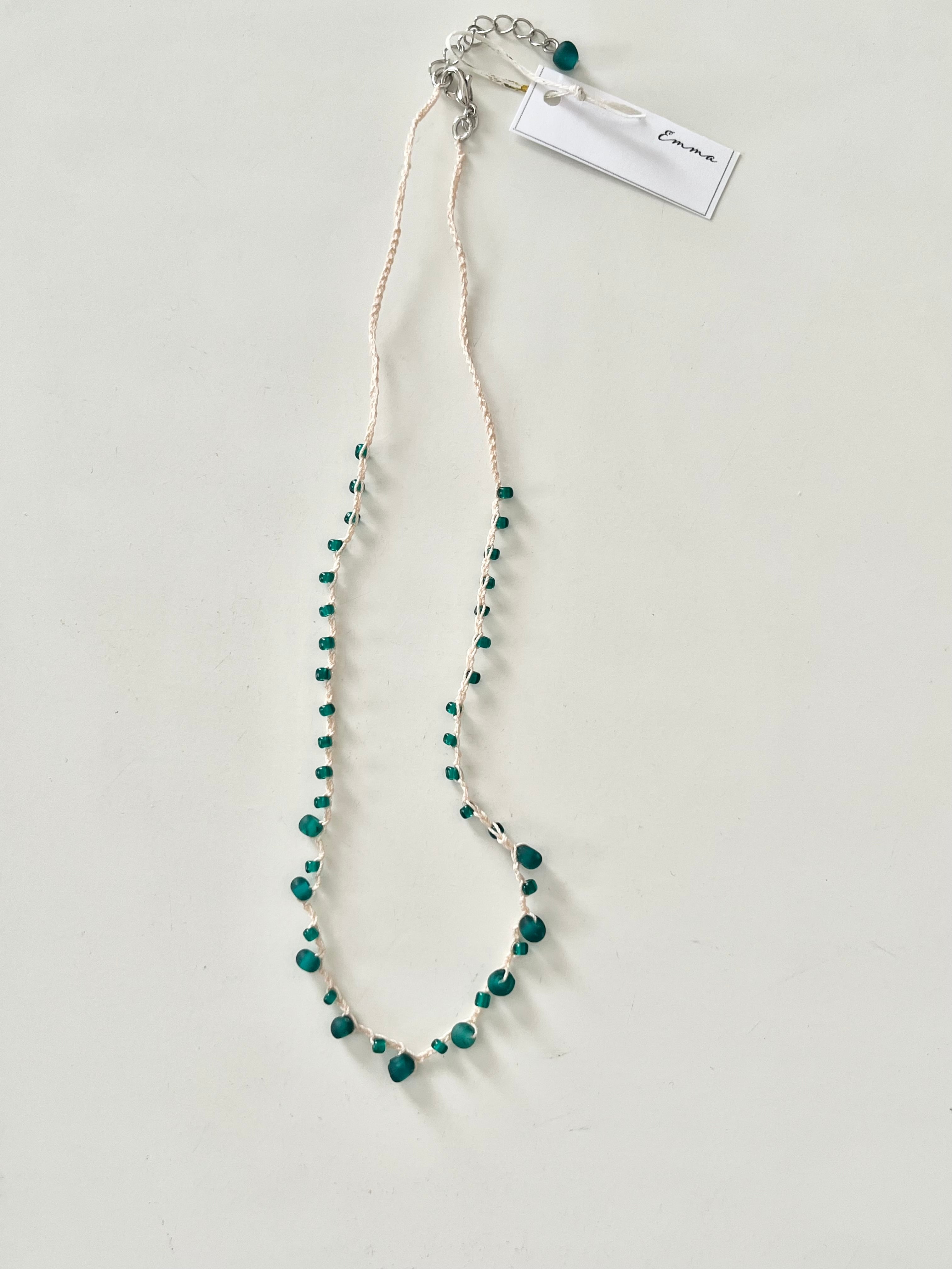 トレンドカラーのホライゾングリーンを纏ったかぎあみビーズネックレスです。首元を鮮やかに彩り、日常の中に特別な雰囲気を演出する美しいアクセサリーです!