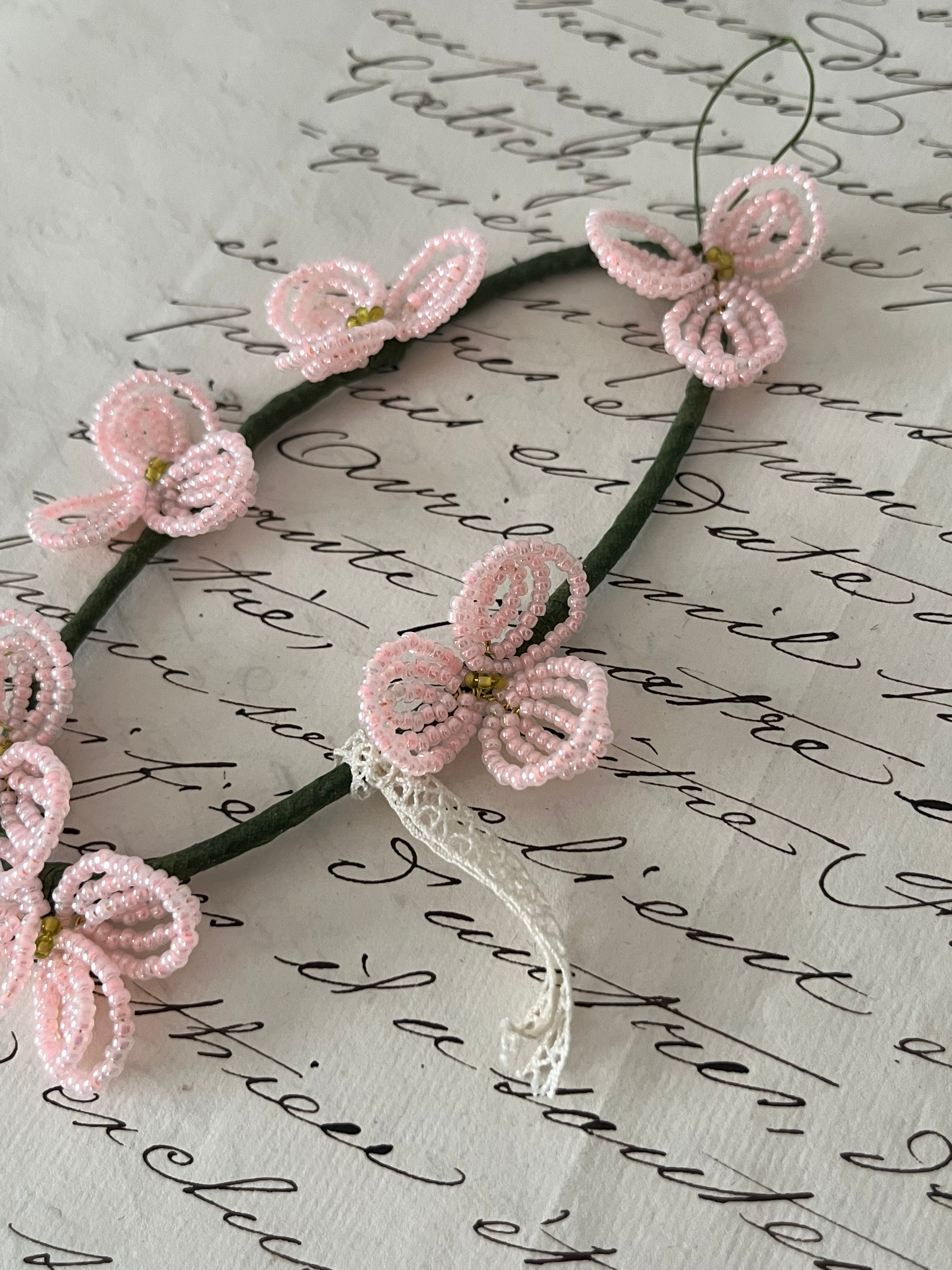 このピンクフラワー オーバルミニリースは、繊細に表現されたビーズのピンクのお花が特徴的なインテリアアイテムです。小さな空間にぴったりなデザインで、心温まる可愛らしさが溢れています。