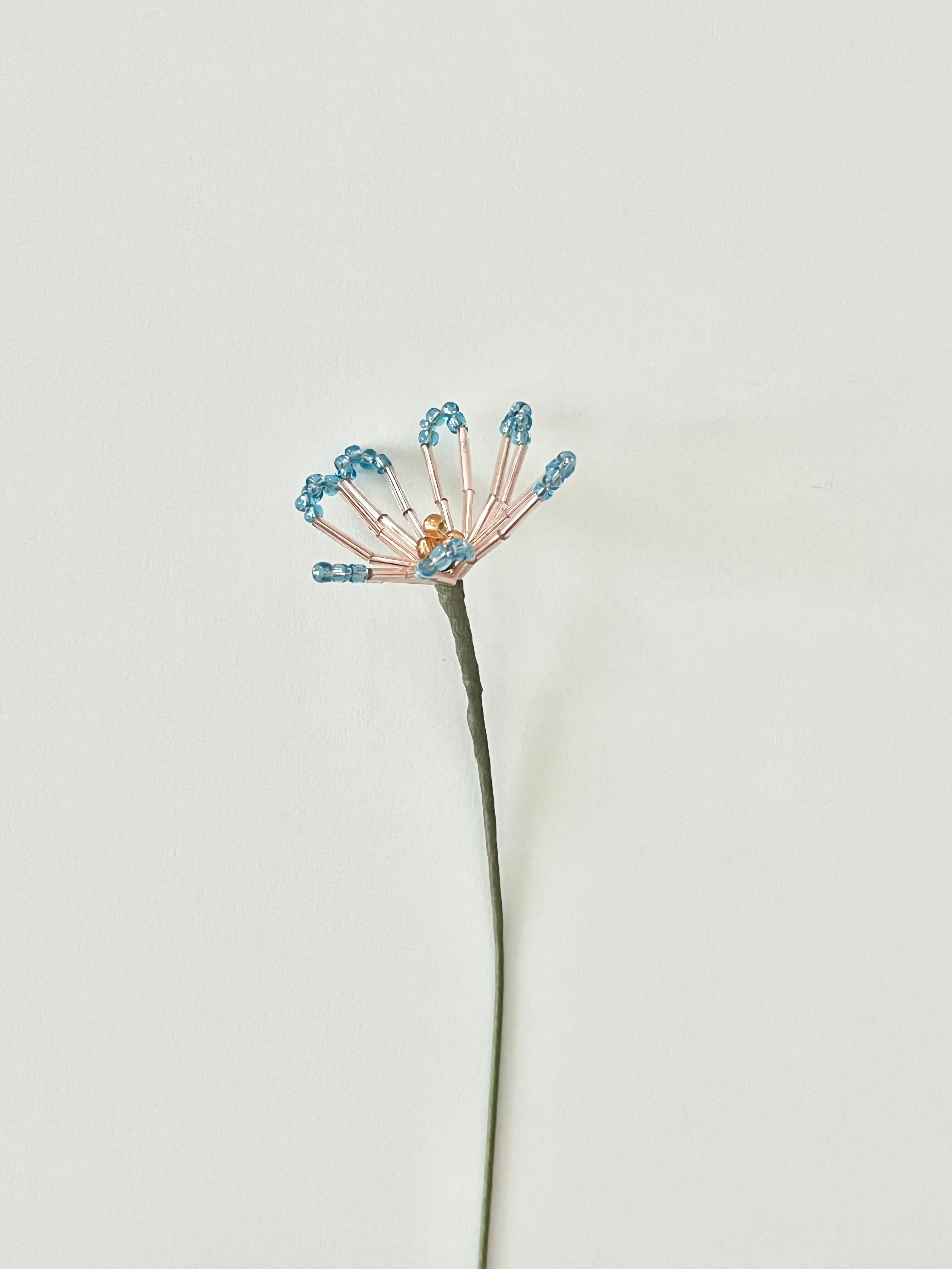 このB B ビーズフラワーは、シンプルでありながら落ち着いた雰囲気を醸し出す、美しいビーズで作られたお花が特徴です。