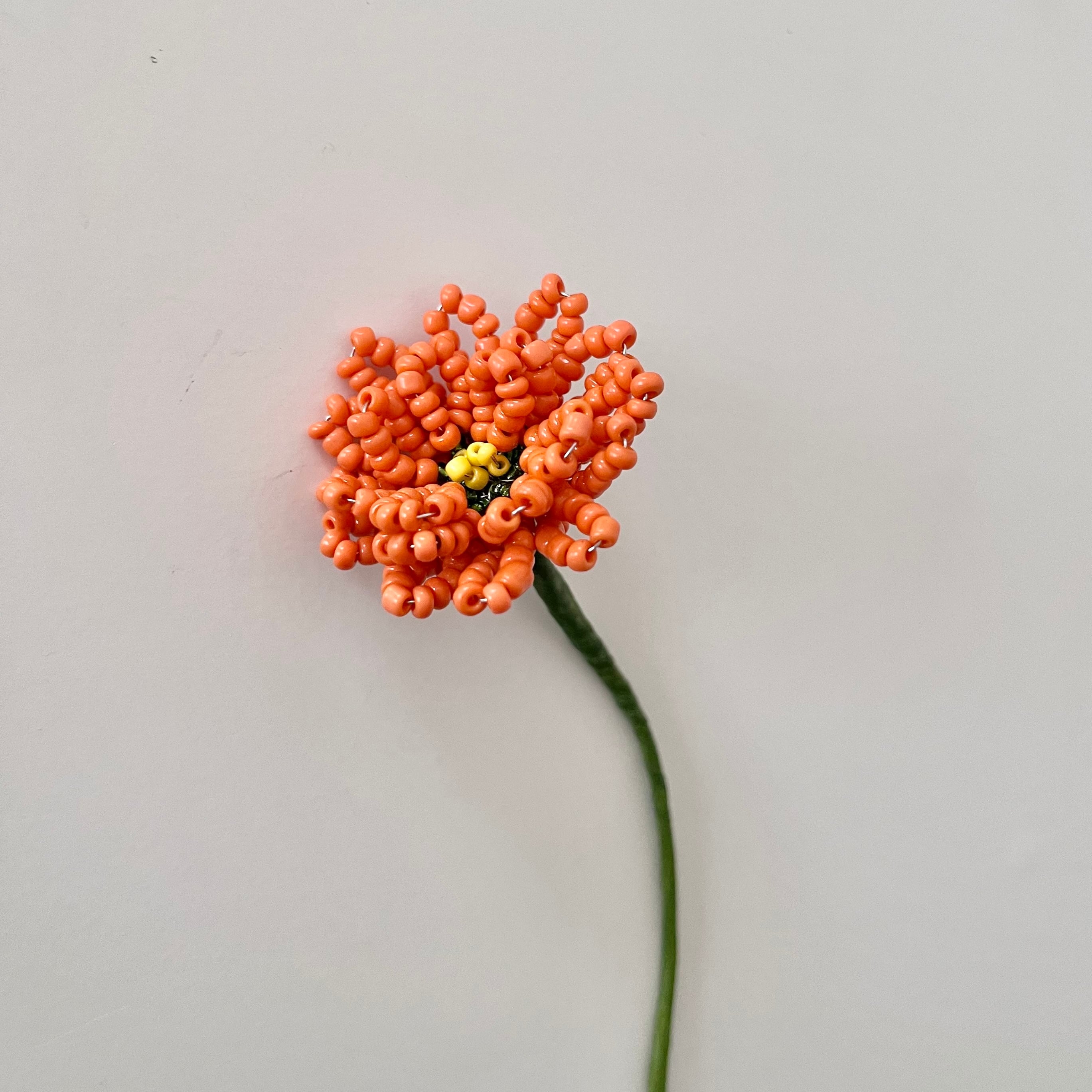 このビーズフラワーは、ビタミンカラーオレンジの色合いで、見る人の心を弾ませる魅力があります!