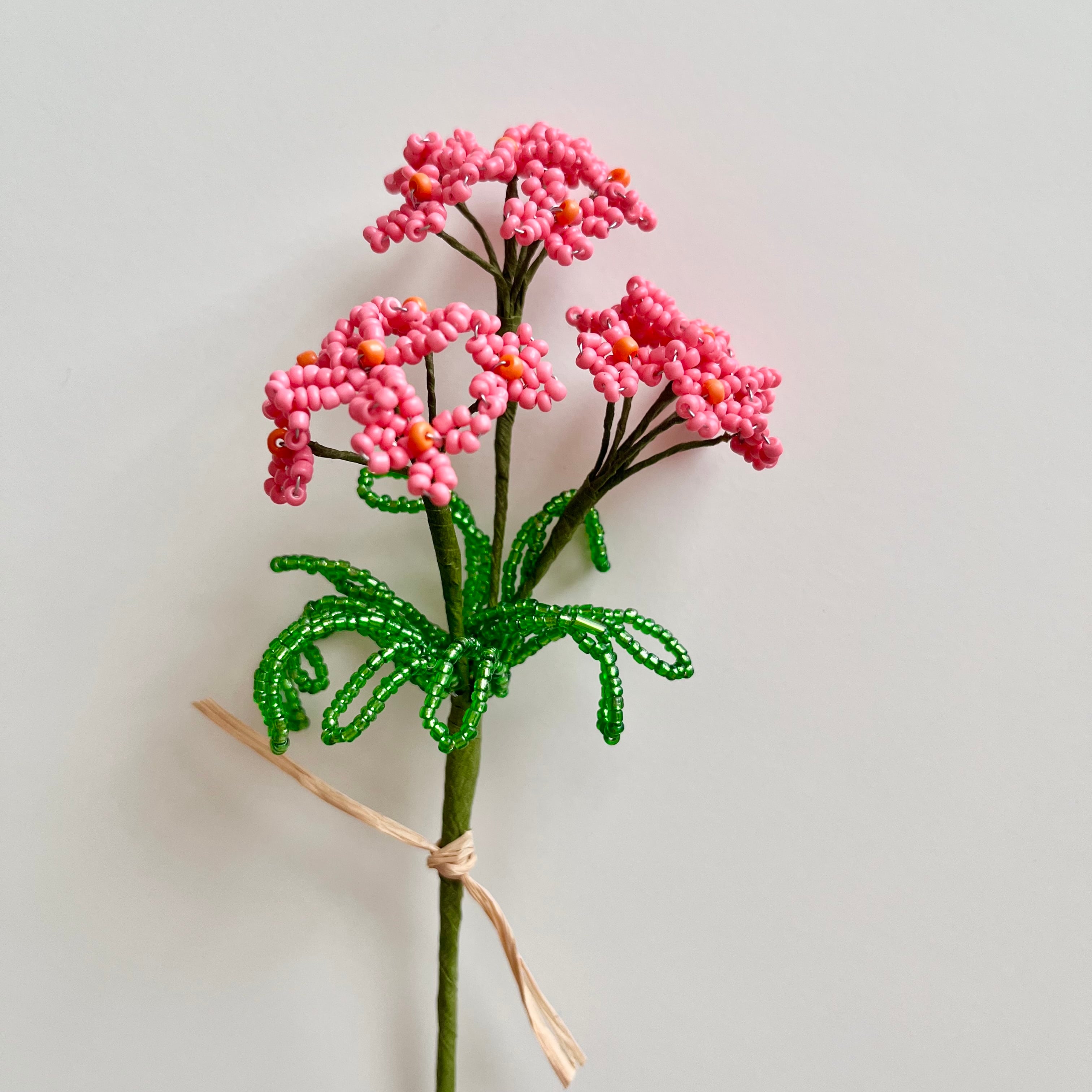 このmiki ビーズフラワーは、鮮やかなピンクオレンジのカラーが魅力で、どんなインテリアにも明るさをプラスします。活気溢れるデザインが、リビングやワークスペースにぴったりの華やかさを演出し、毎日の生活に元気を与えてくれます。