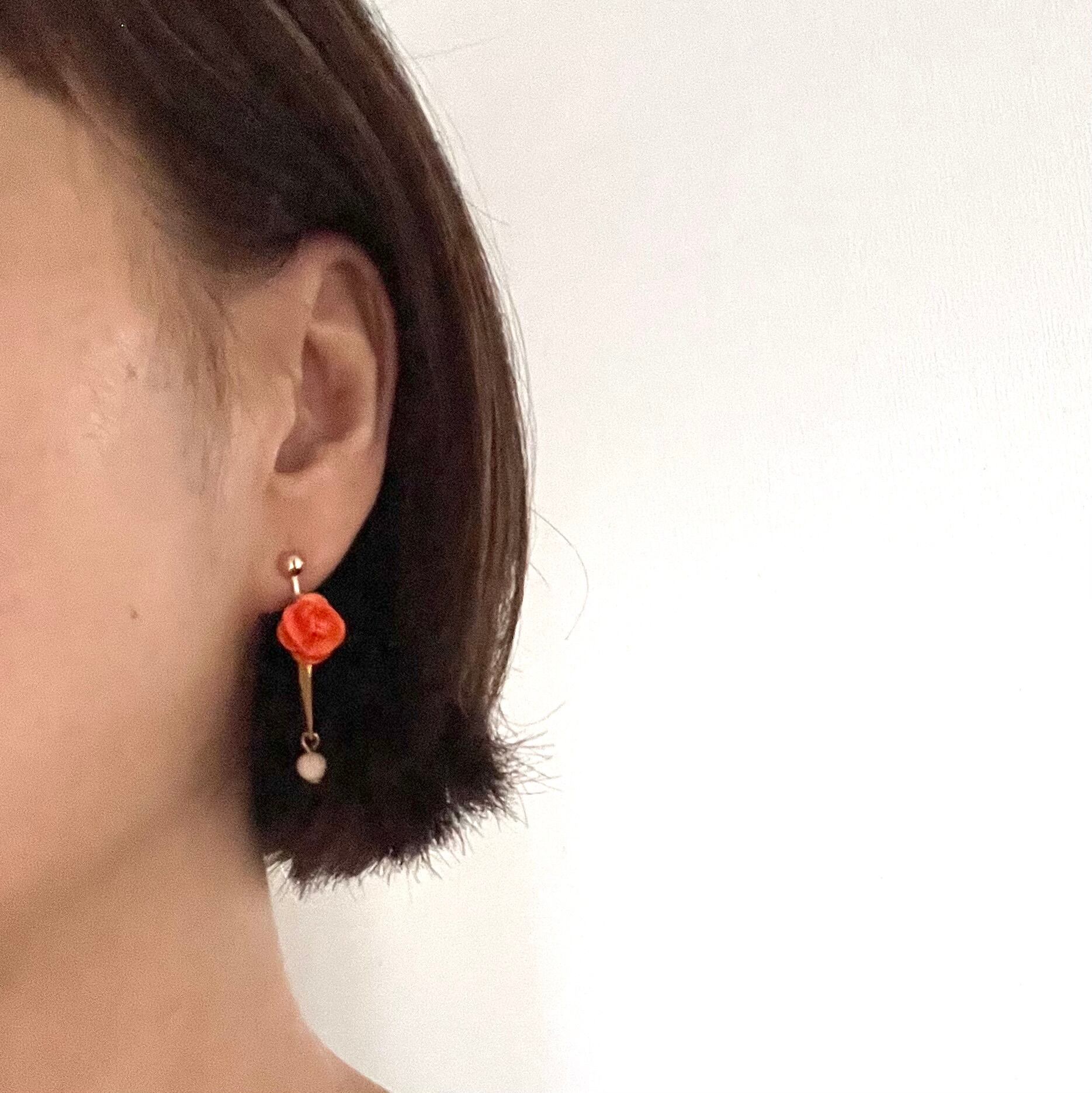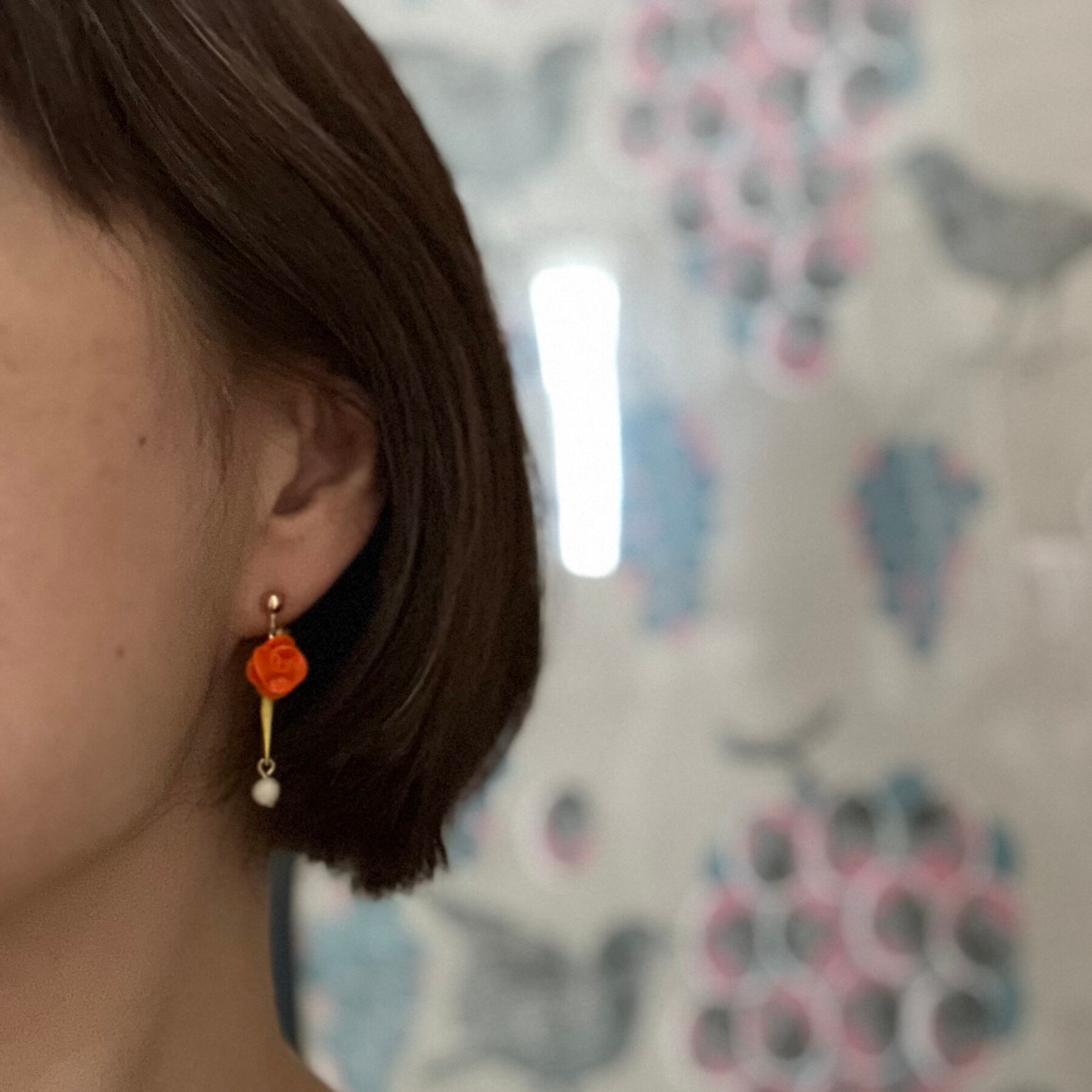 あたたかみのあるオレンジの薔薇で、コーディネートに華やかさをプラスしてくれるオレンジローズ ピアス イヤリングをぜひお楽しみください!