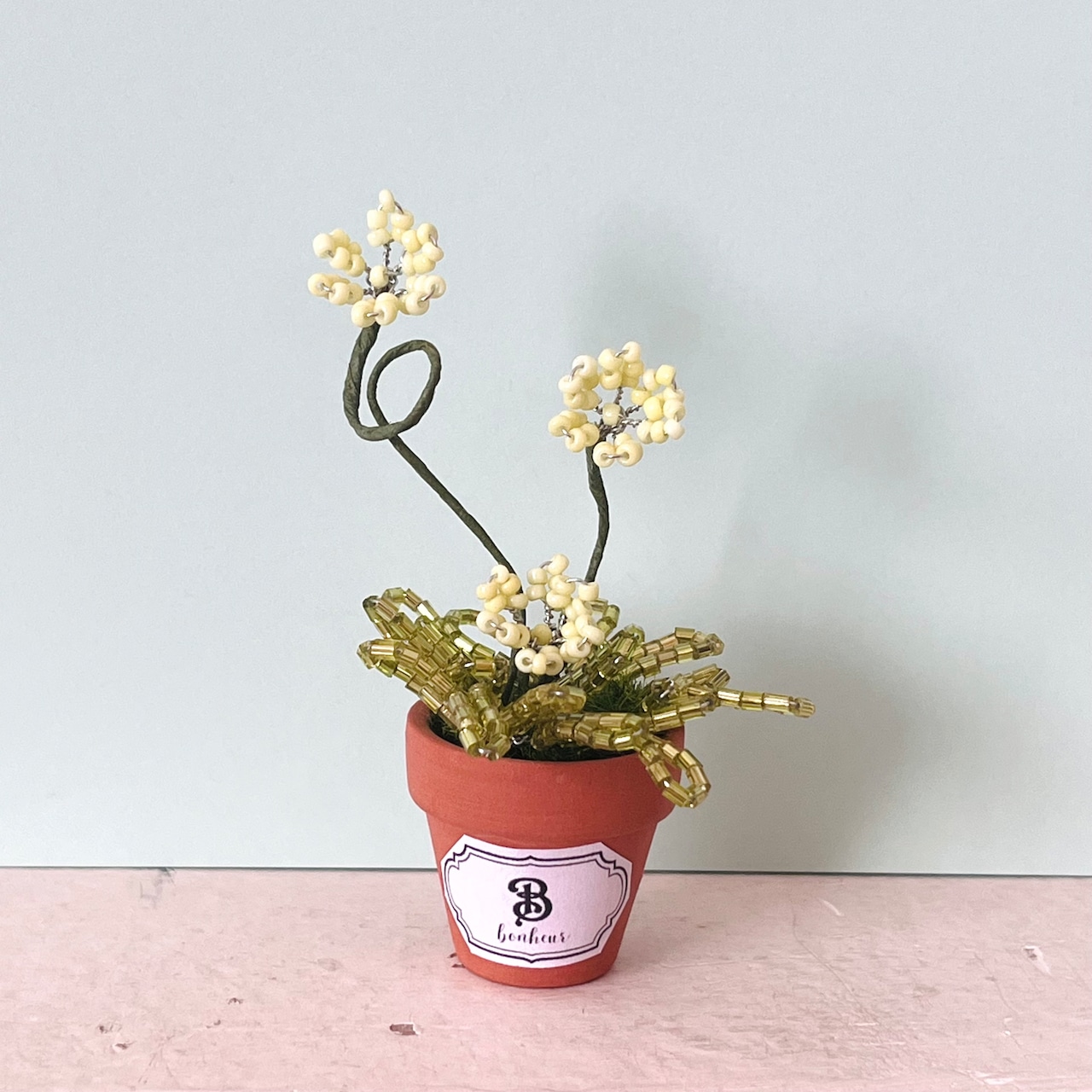 小さな植木鉢の中に広がるビーズフラワーが、あなたの心に優しさを運んでくれるミニチュアフラワーをぜひお楽しみください!