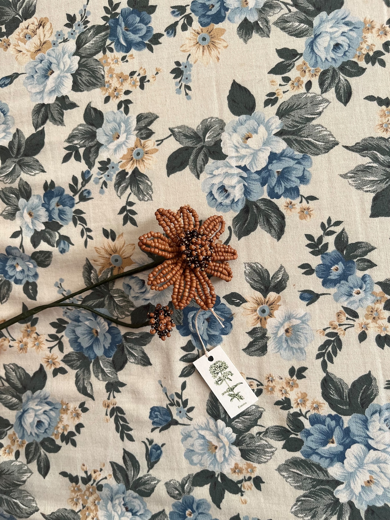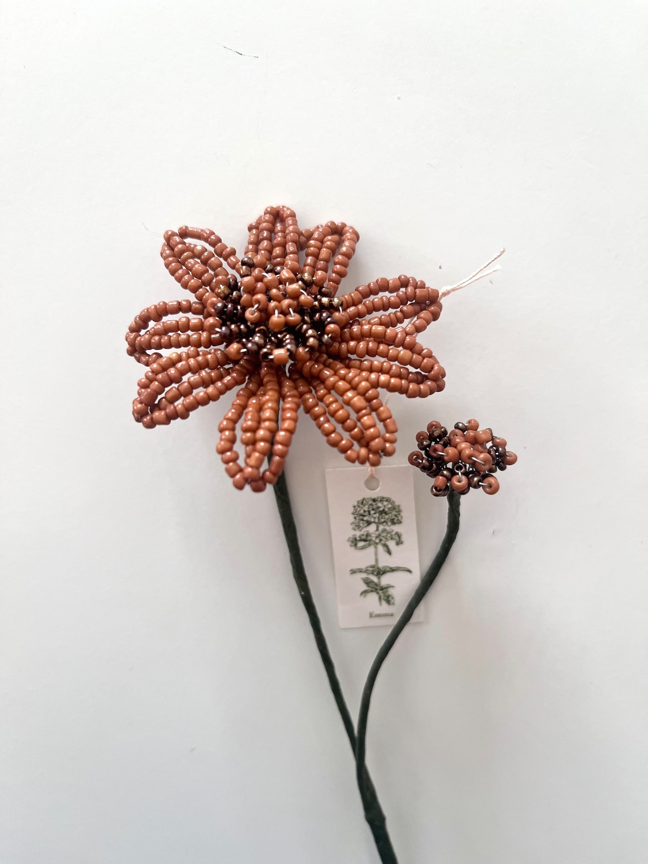 このキャラメルビーズフラワーは、温かみのあるブラウンのビーズを使用し、ノスタルジー漂うデザインが魅力です。