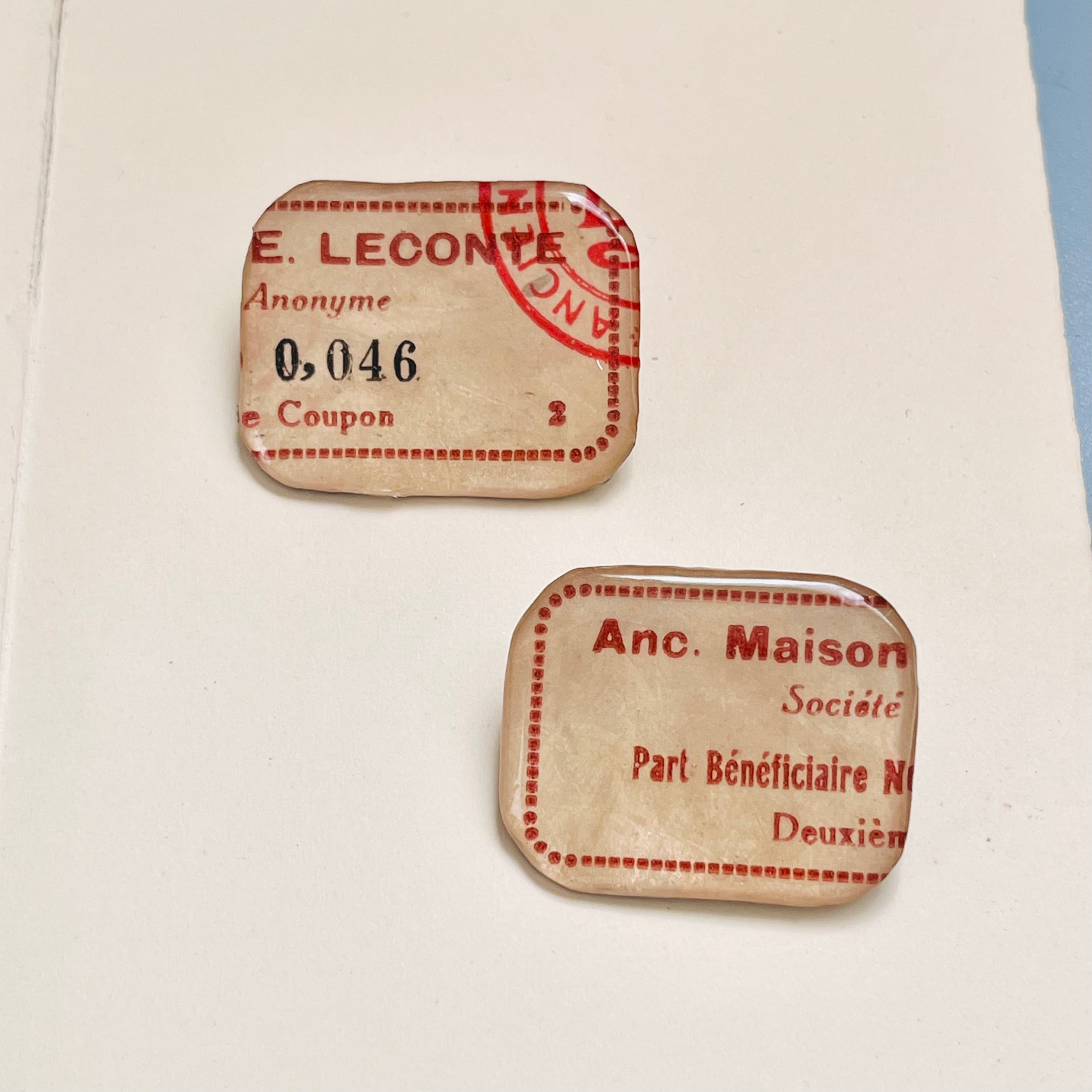 この1920フランスペーパーブローチは、歴史を感じさせる株券の一部を加工した特別なアイテムです。
