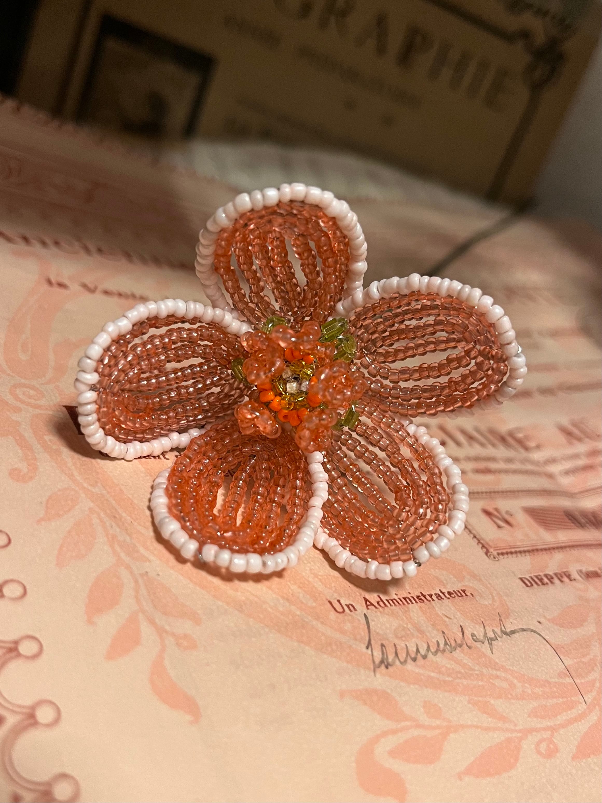 この「nicol ニコル ビーズフラワー」は、柔らかな空間を演出するオレンジ色が魅力です。ビーズを用いたデザインは、どんなインテリアにも柔和な印象をプラスし、心地よい雰囲気を作り出します。