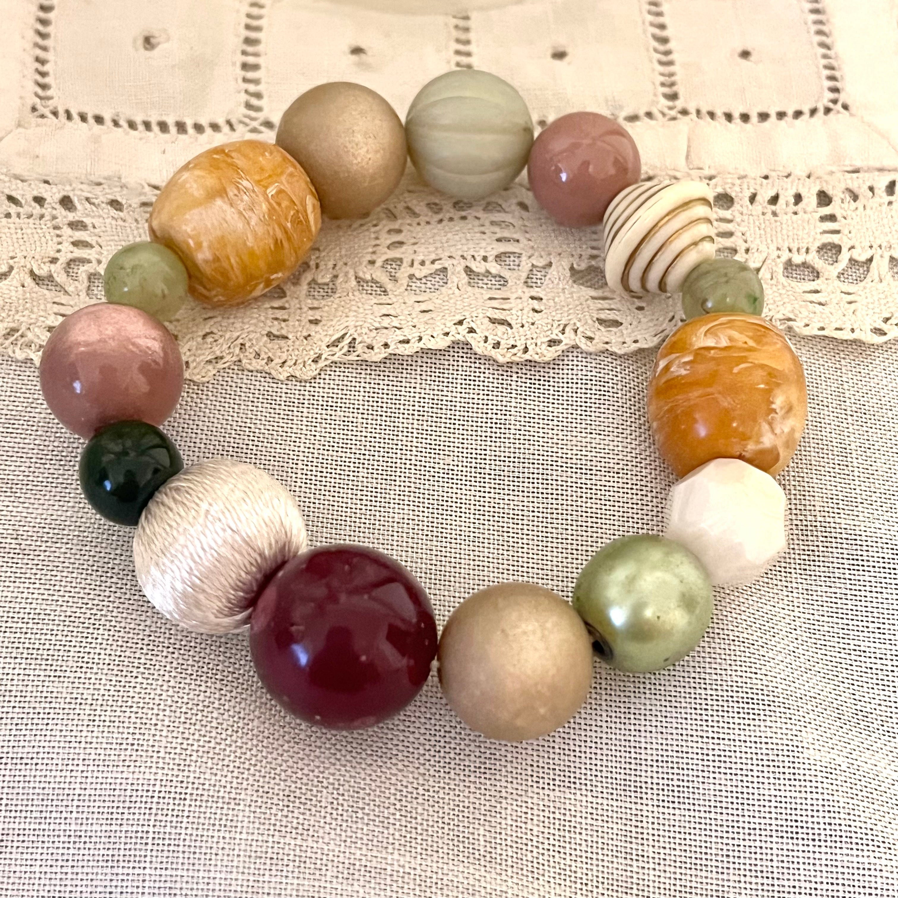 落ち着いたトーンの色ビーズはお洋服とも馴染み、おしゃれ度を上げてくれます
