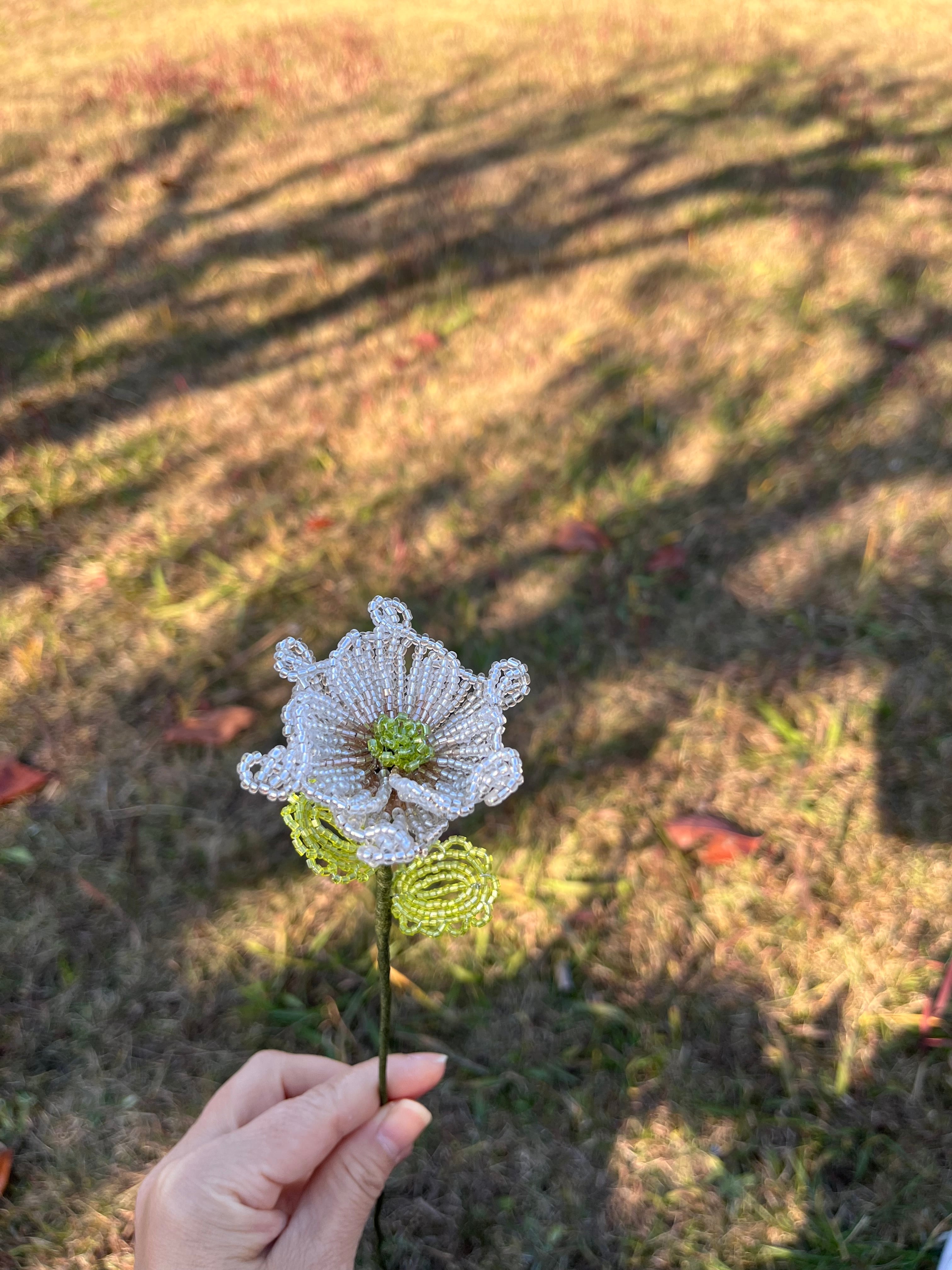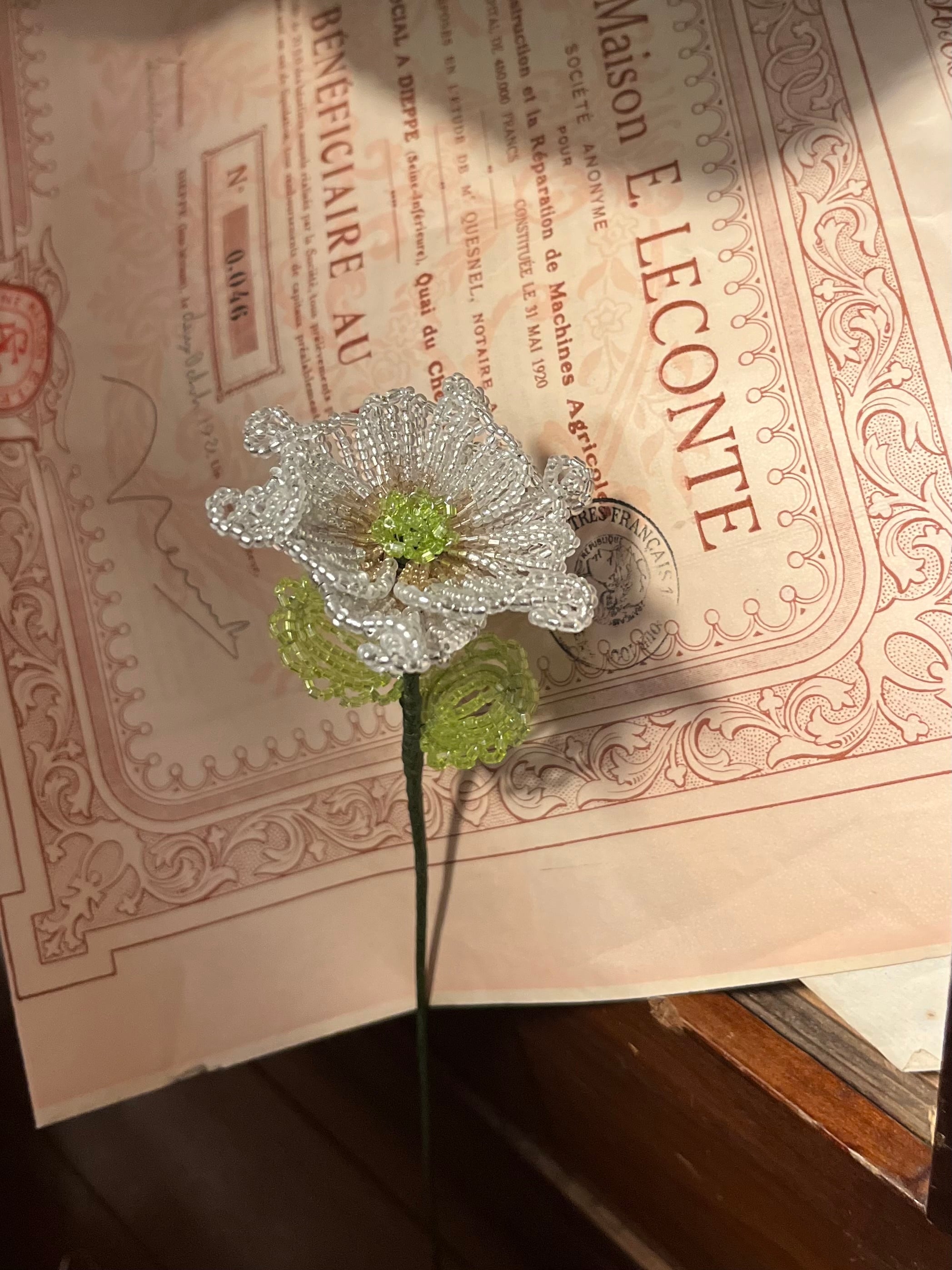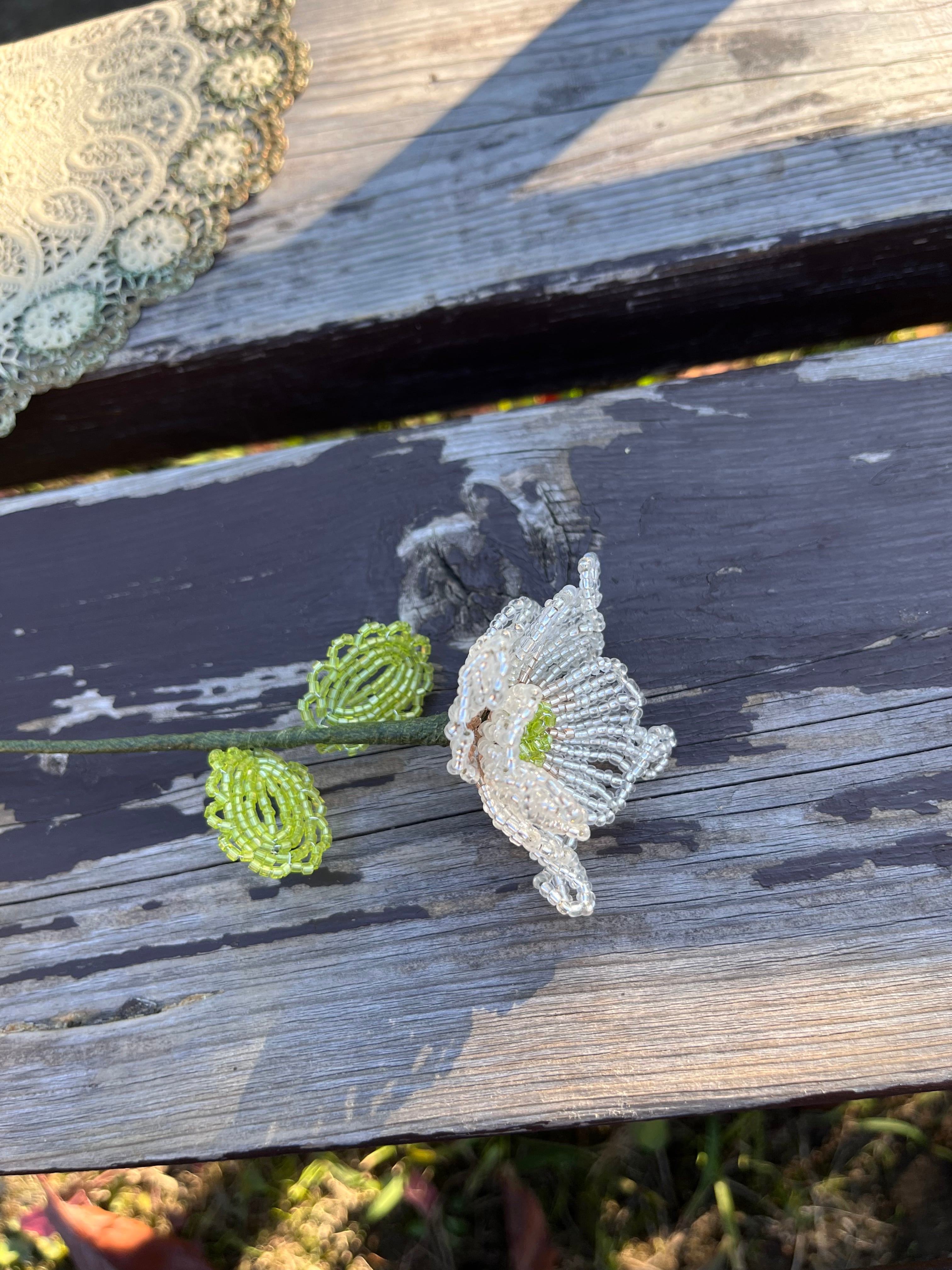 花弁がくるっと捻りのある、独特なデザインのビーズフラワーが登場!