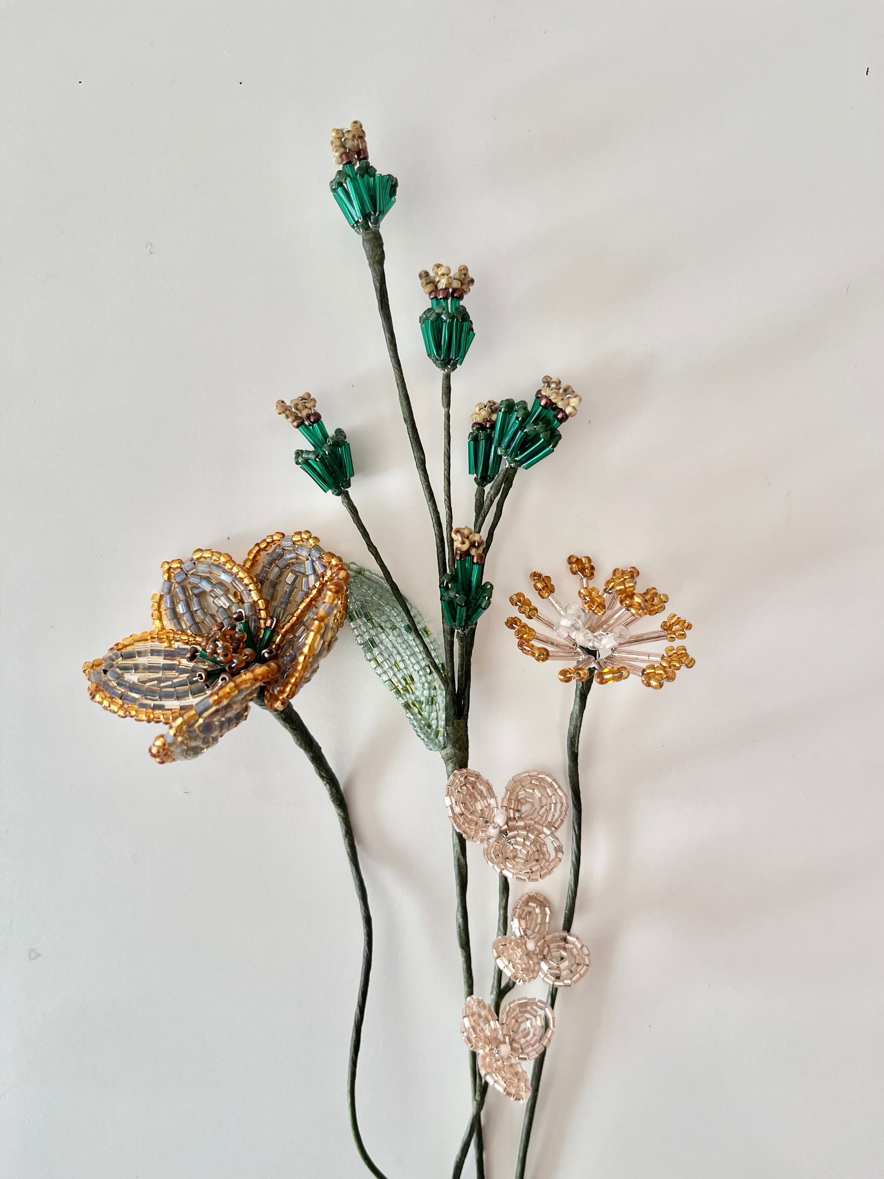 落ち着いたアースカラーが魅力的な、渋めのビーズフラワーが登場!