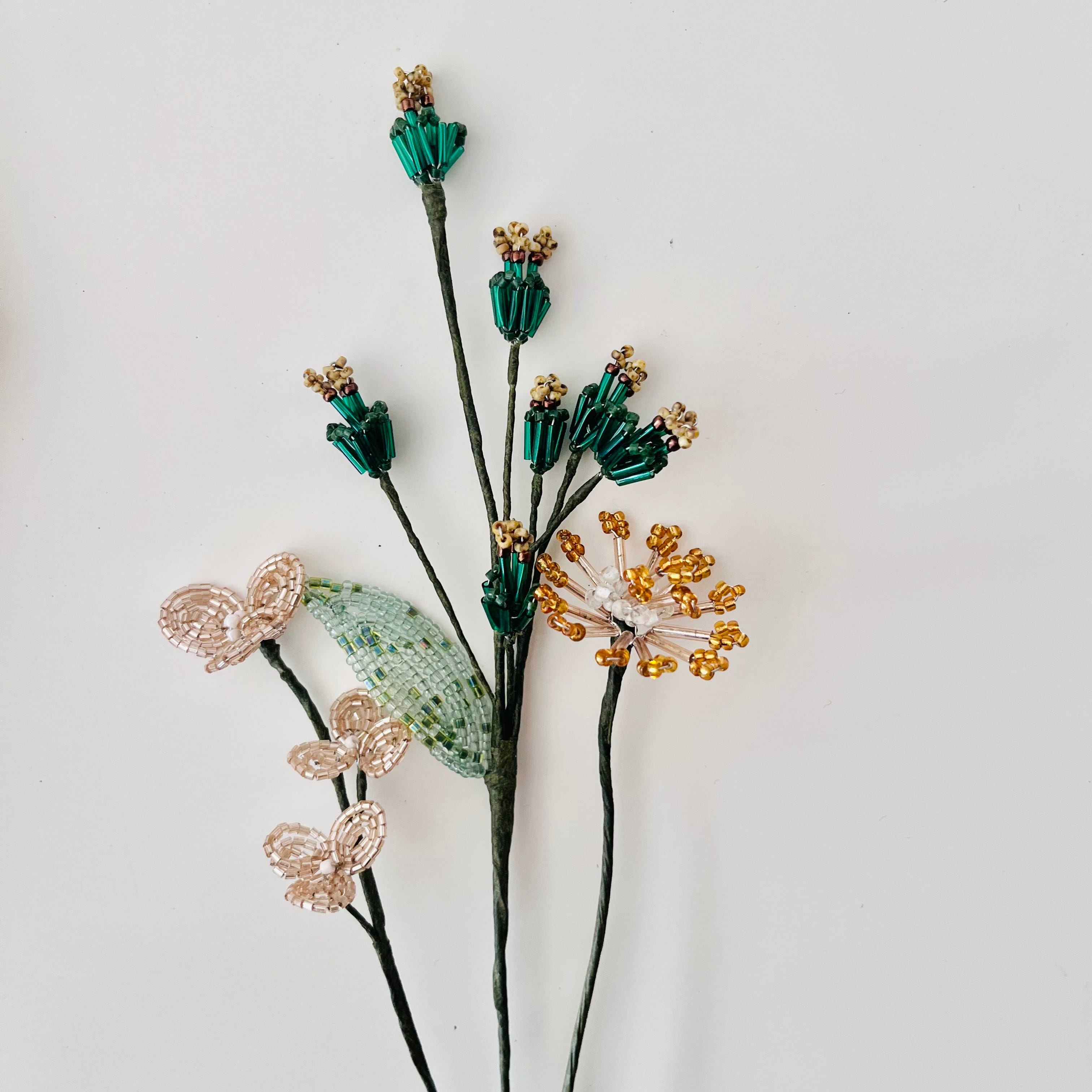 全てこれから花が咲く蕾の形をした、美しいビーズフラワーが登場!