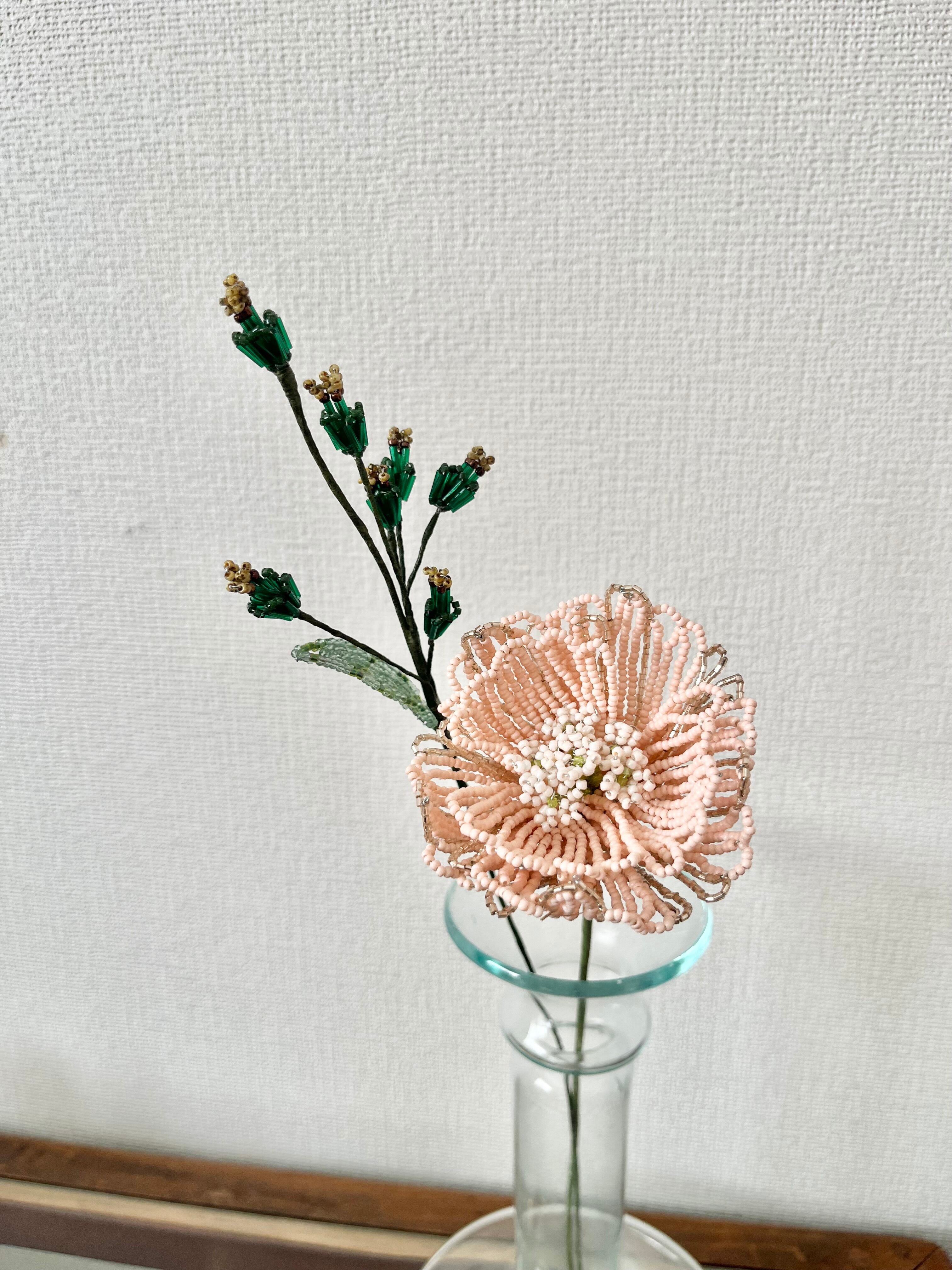 この「未来 ビーズフラワー」は、全て蕾の状態でデザインされたビーズフラワーです。これから咲く花の姿を表現したこのアイテムは、見る人に夢や希望を与えます。シンプルながらも個性的なデザインは、インテリアにナチュラルな雰囲気を加え、毎日の生活に寄り添うアイテムになることでしょう。リビングや書斎、または特別な贈り物としても喜ばれること間違いなしです。