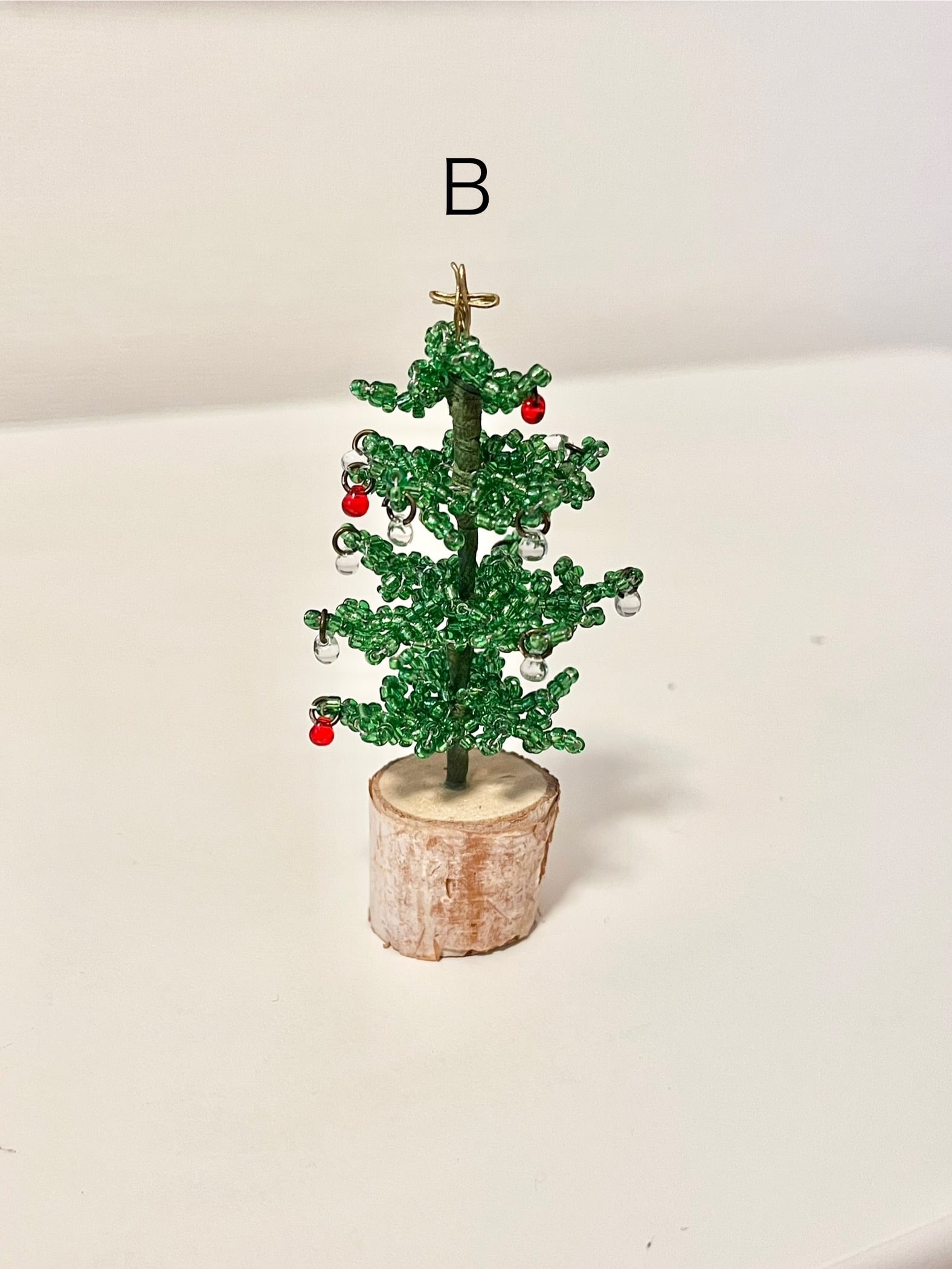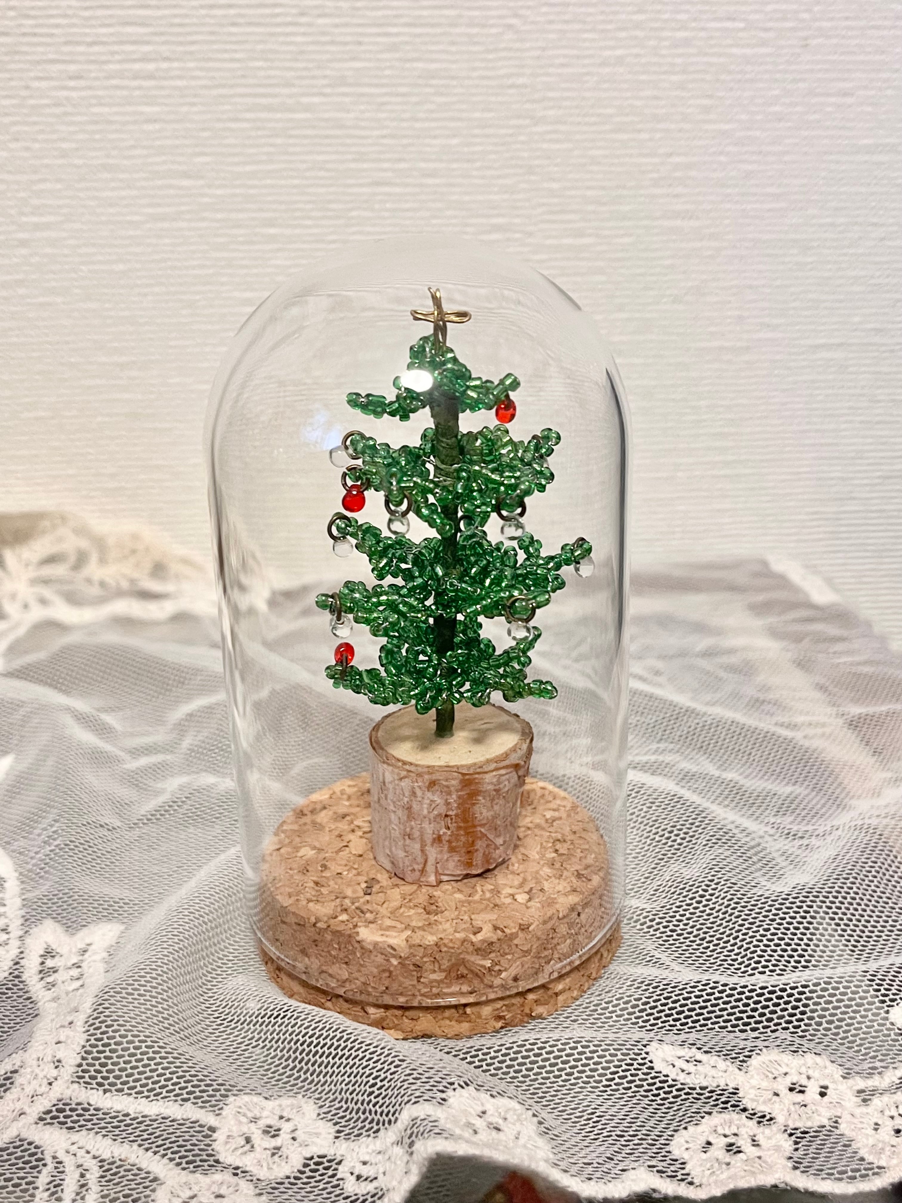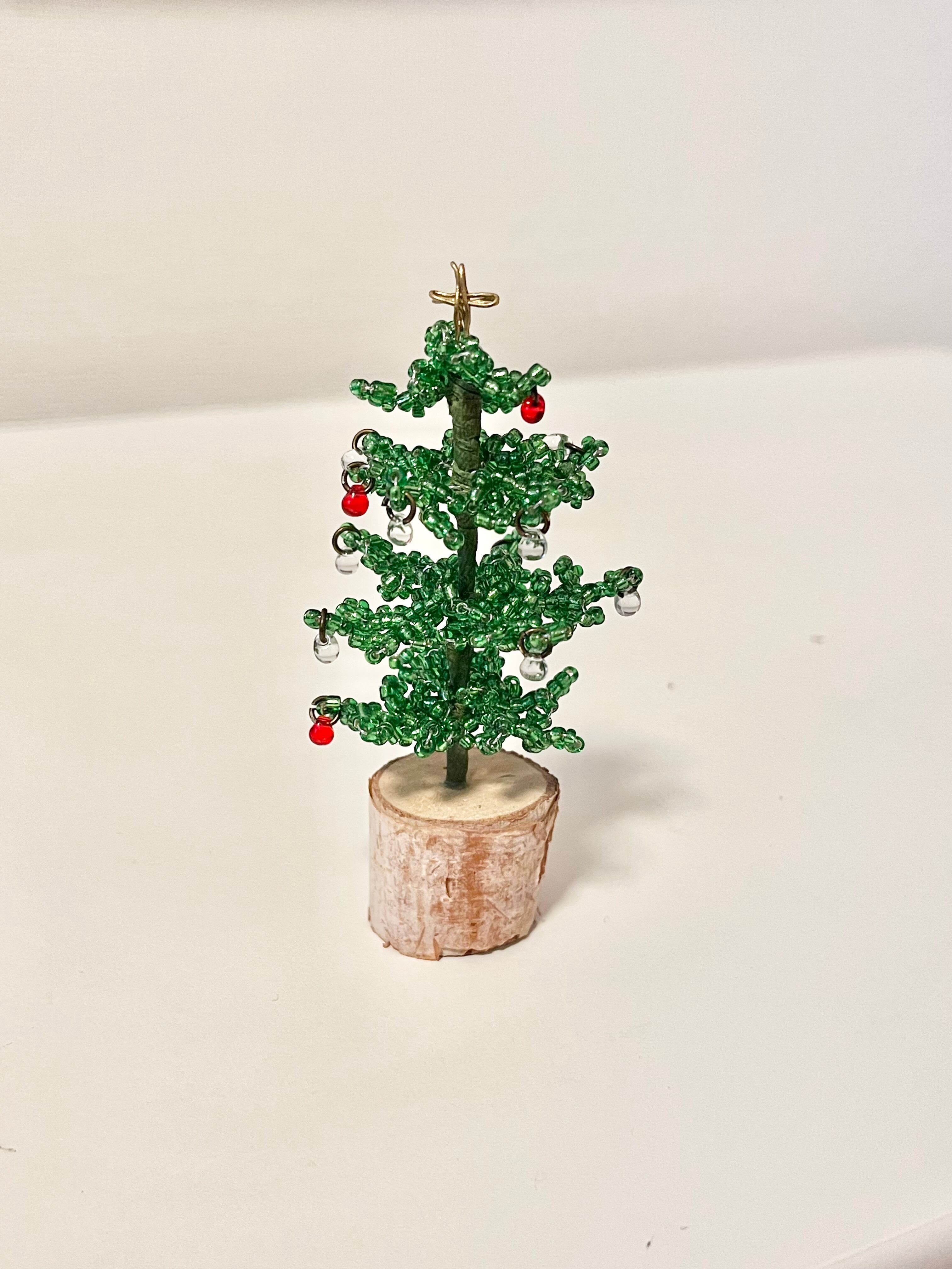 この「クリスマスミニツリー」は、ビーズで丁寧に作られたクリスマスツリーが特長で、どんな場所にも festive な雰囲気を演出します。