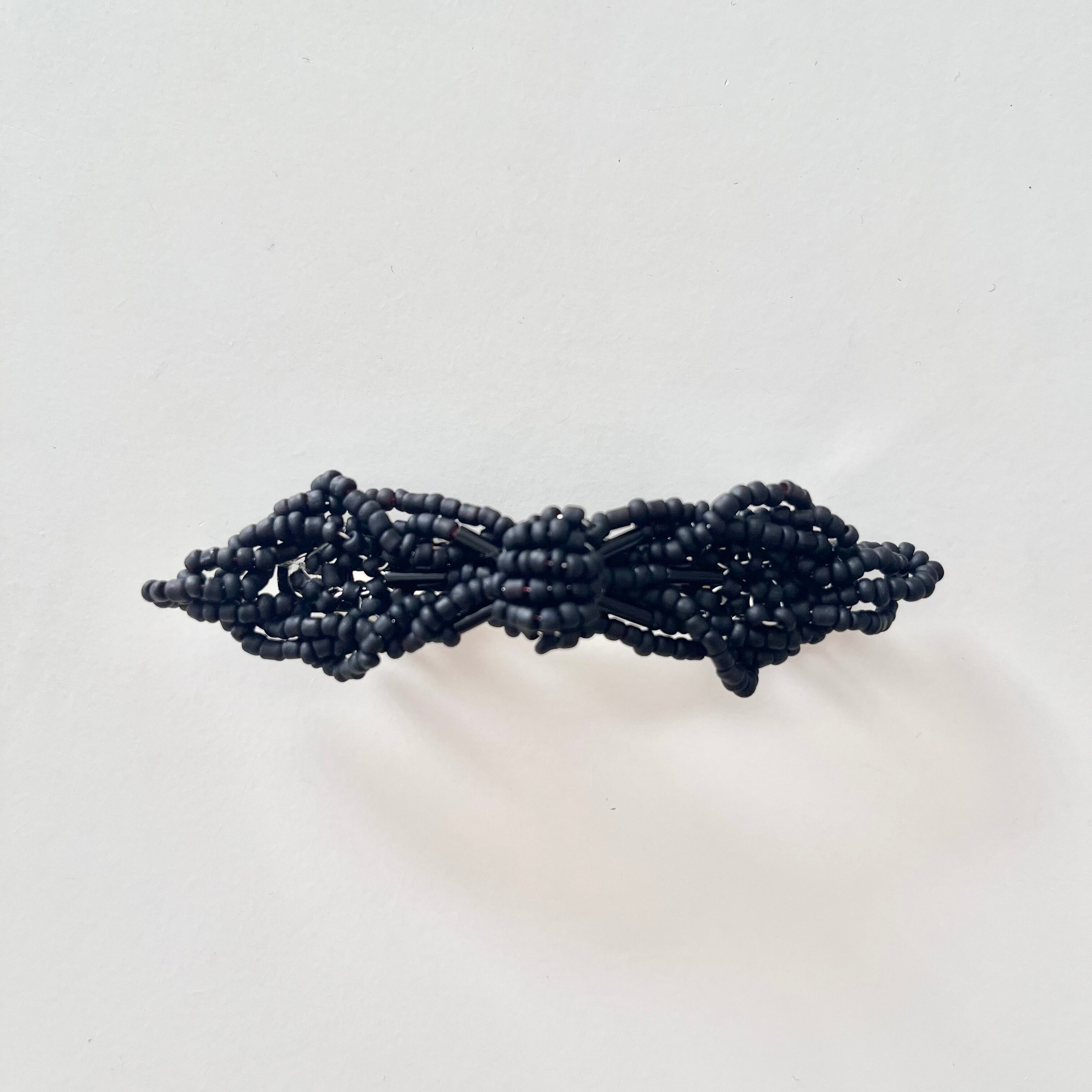 この「リボンバレッタ マットブラック」は、艶感を消したマットな仕上がりが特長で、シンプルながら洗練された印象を与えます。セレモニーやフォーマルなシーンにもマッチし、さりげなくおしゃれを楽しむことができます。控えめなデザインで、あらゆるスタイルに調和するアイテムです。ぜひ、このバレッタで特別な日のコーディネートを完成させてください。