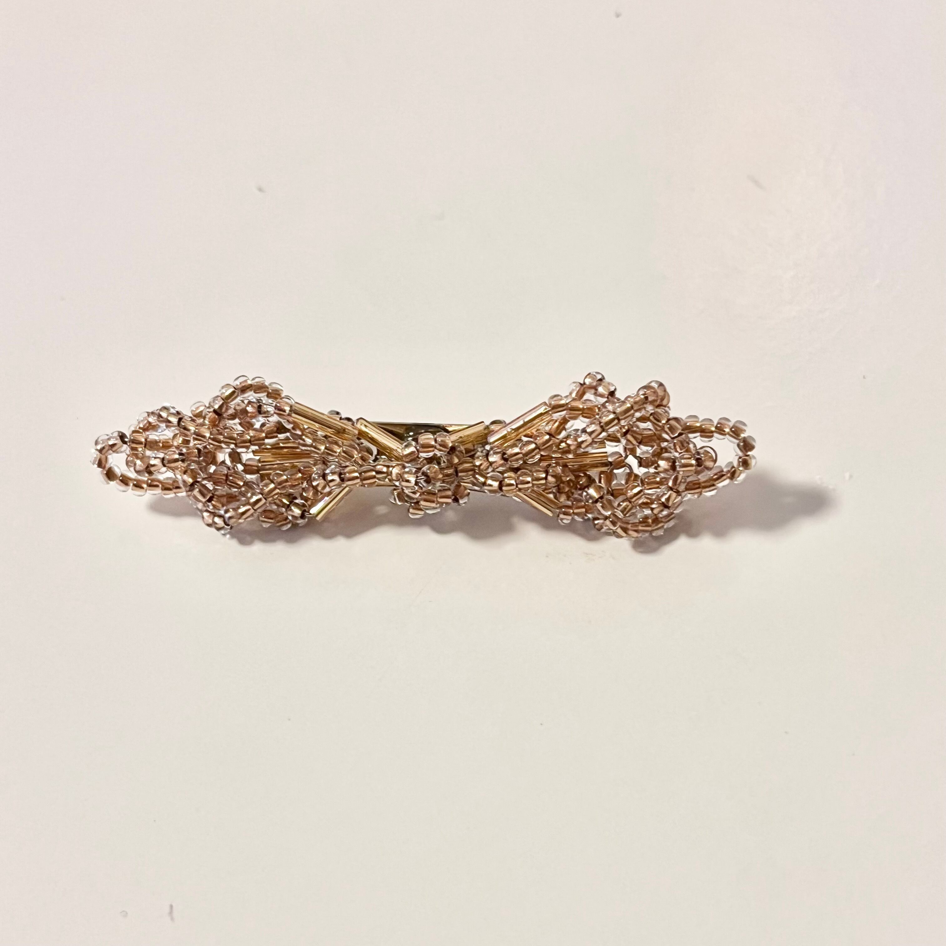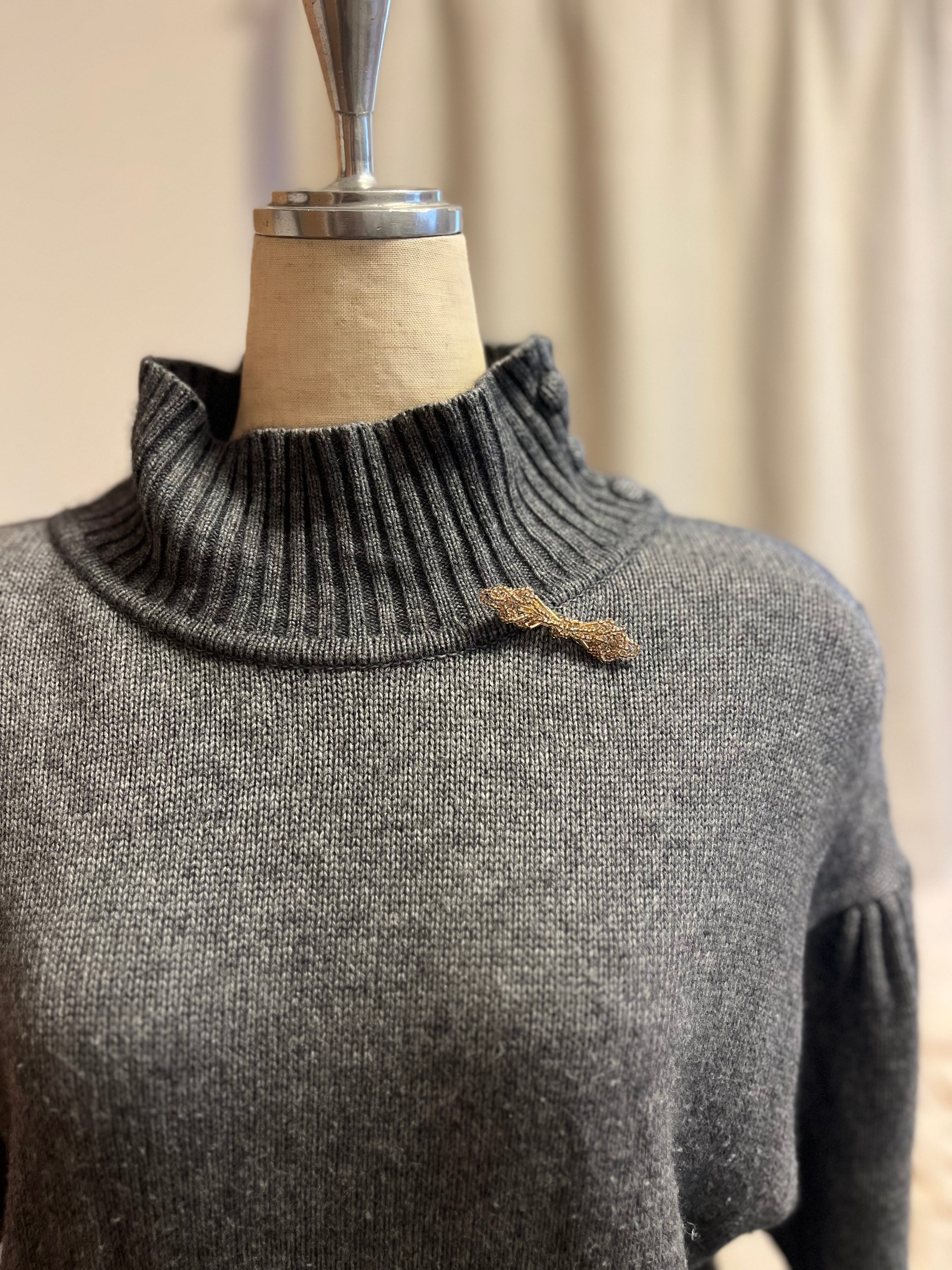 この「リボンブローチ」は、鈍い輝きのゴールドビーズが特長で、シンプルながらもラグジュアリーな印象を与えます。さりげなくつけられるので、デイリールックから特別なシーンまで幅広く活躍します。どんなスタイルにも調和し、自分らしさを引き出すアイテムとして愛用したくなる一品です。