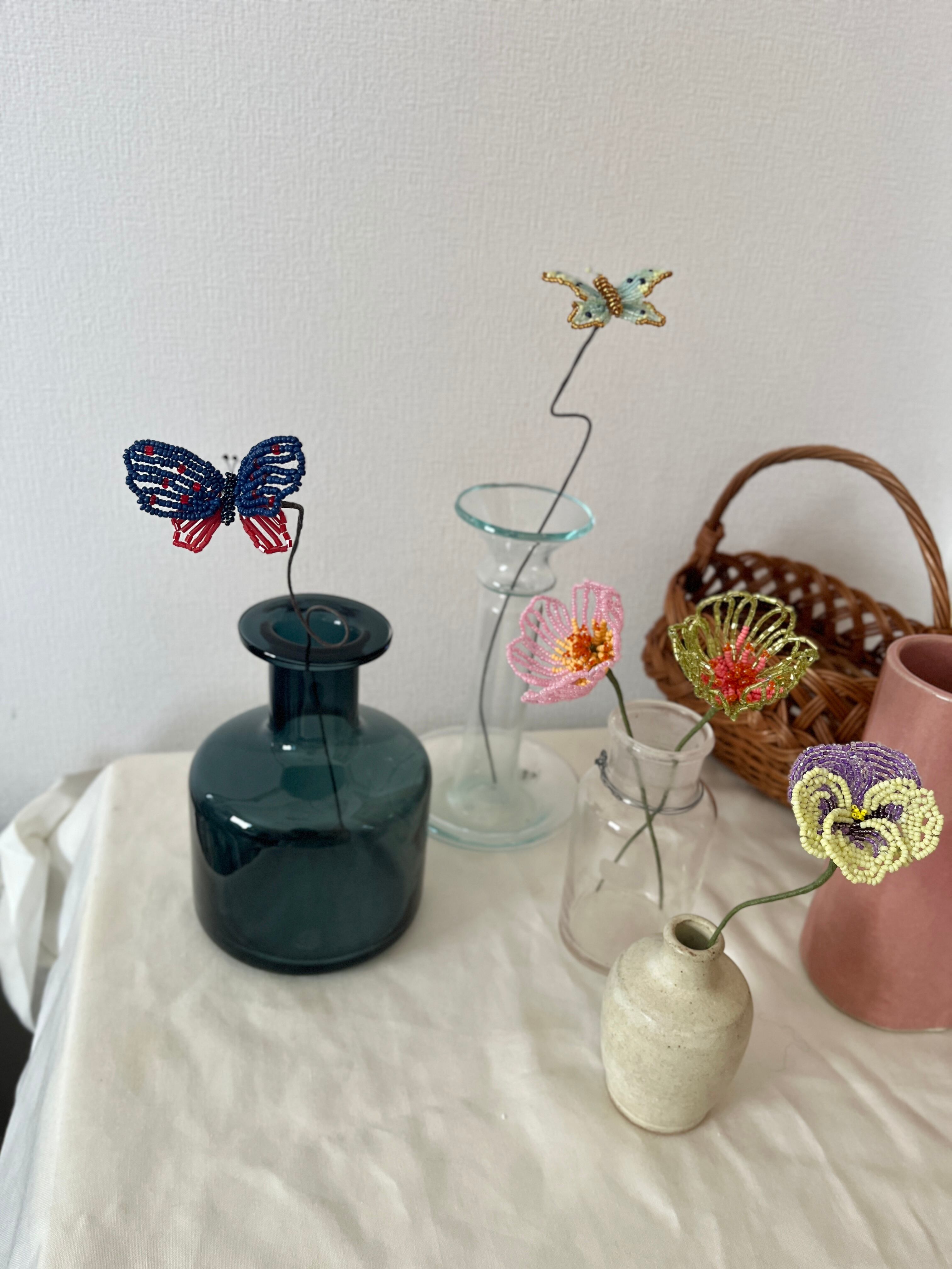 この「 ami 蝶々 ビーズバタフライ」は、カラフルなビーズで精巧に仕上げられた蝶のデザインが特長です。華やかでありながら、どこか優雅な印象を与え、インテリアに彩りを添えます。ビーズフラワーと一緒に飾るのもおすすめで、あなたのセンスを引き立てるアイテムとして活躍します。