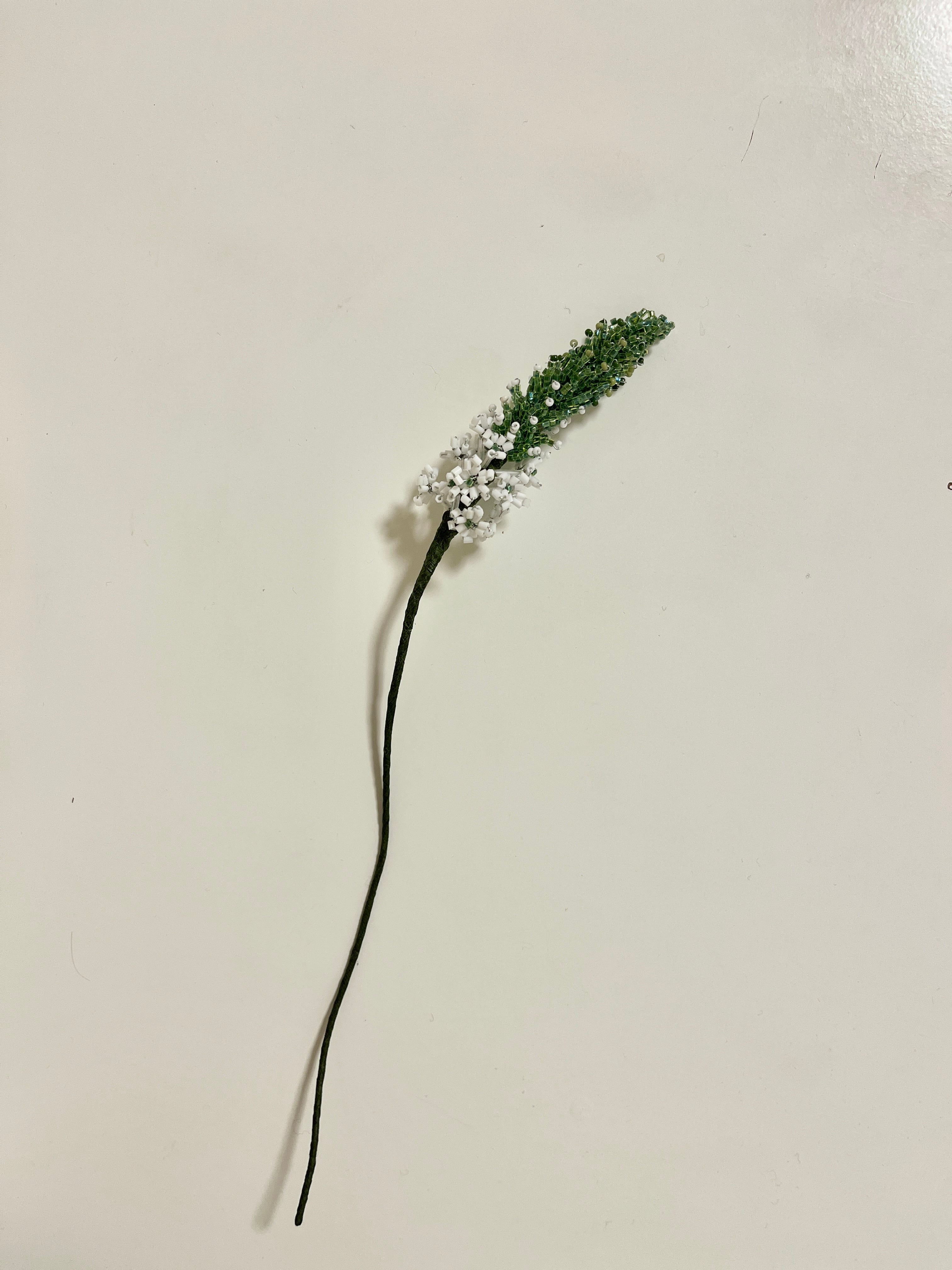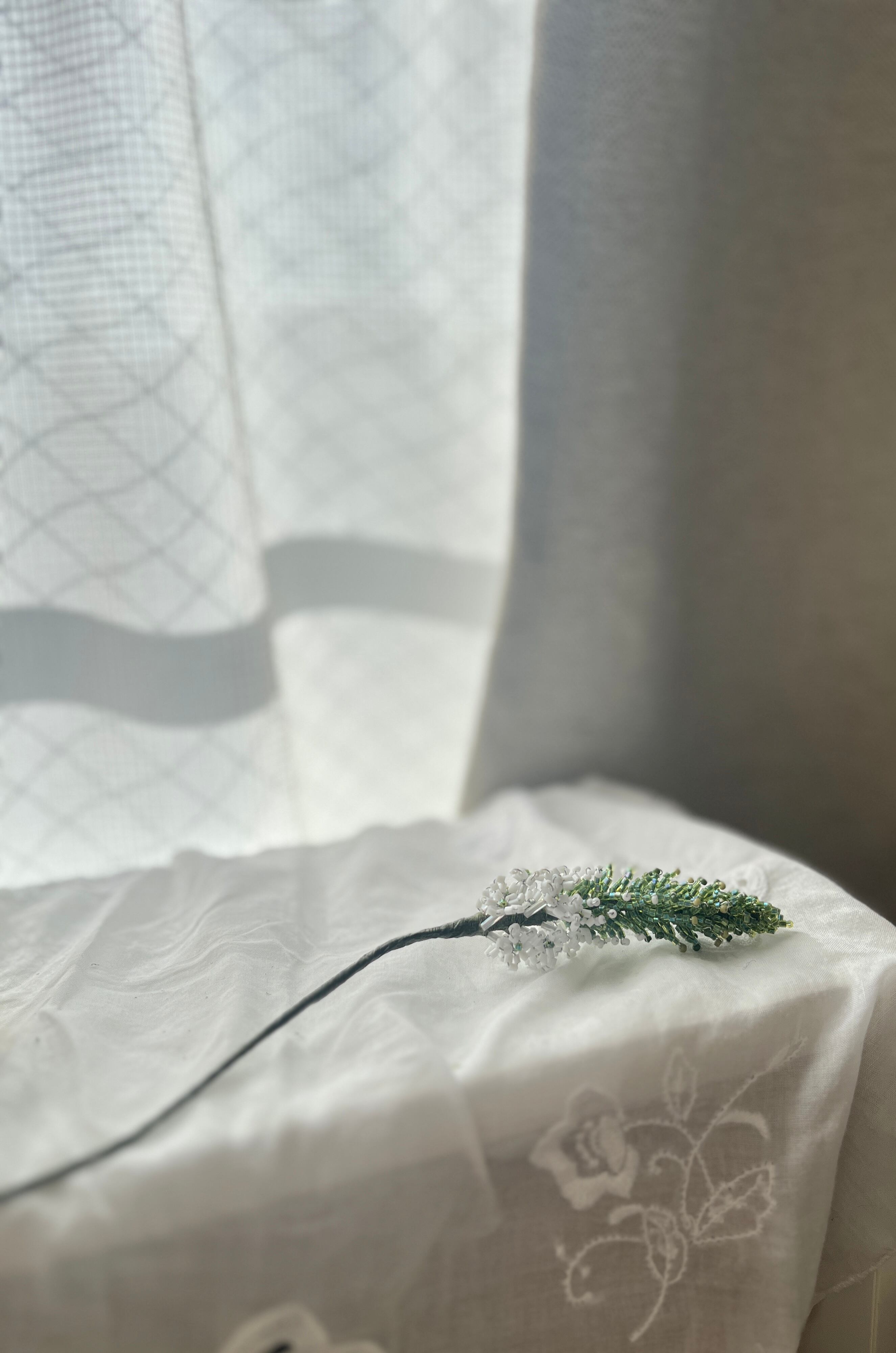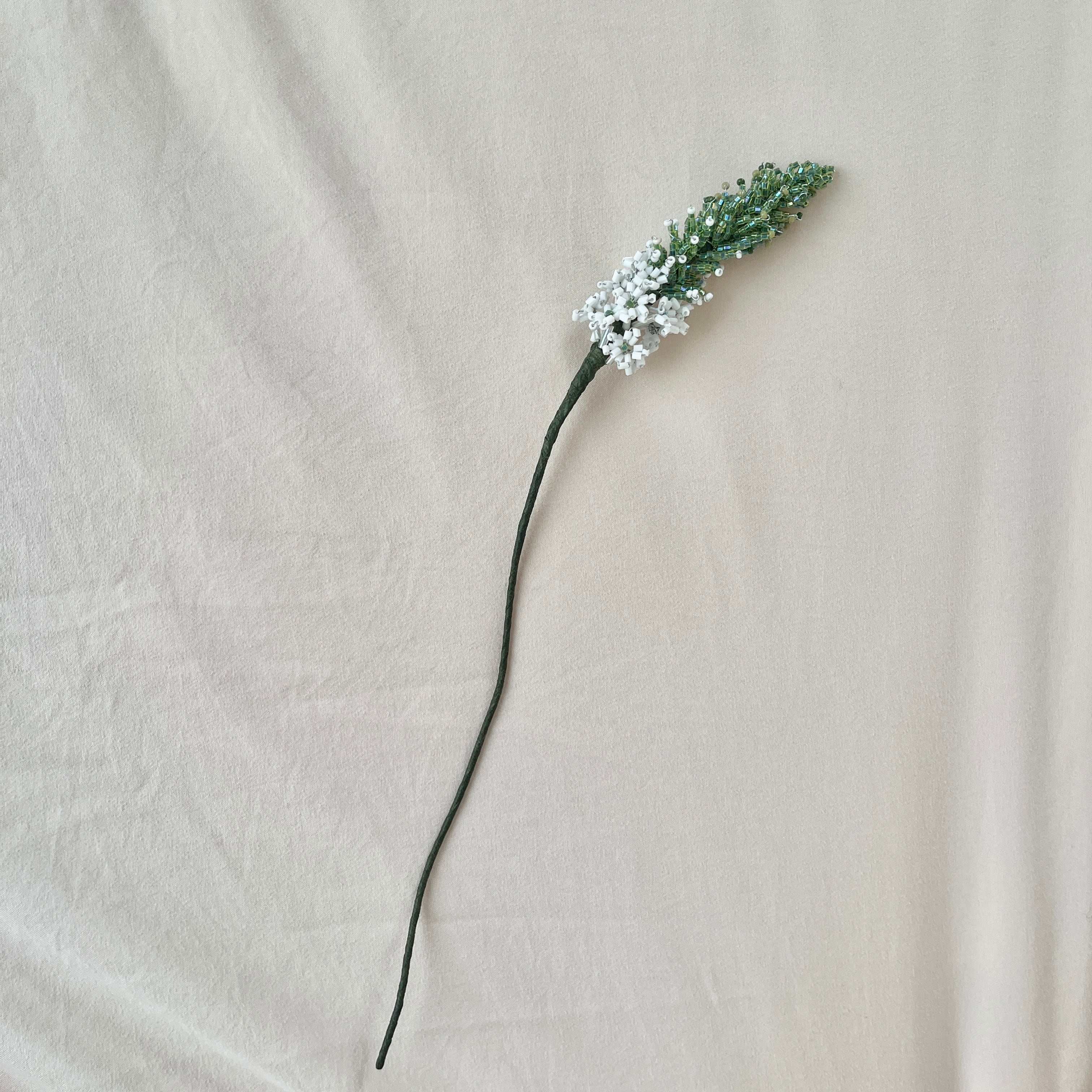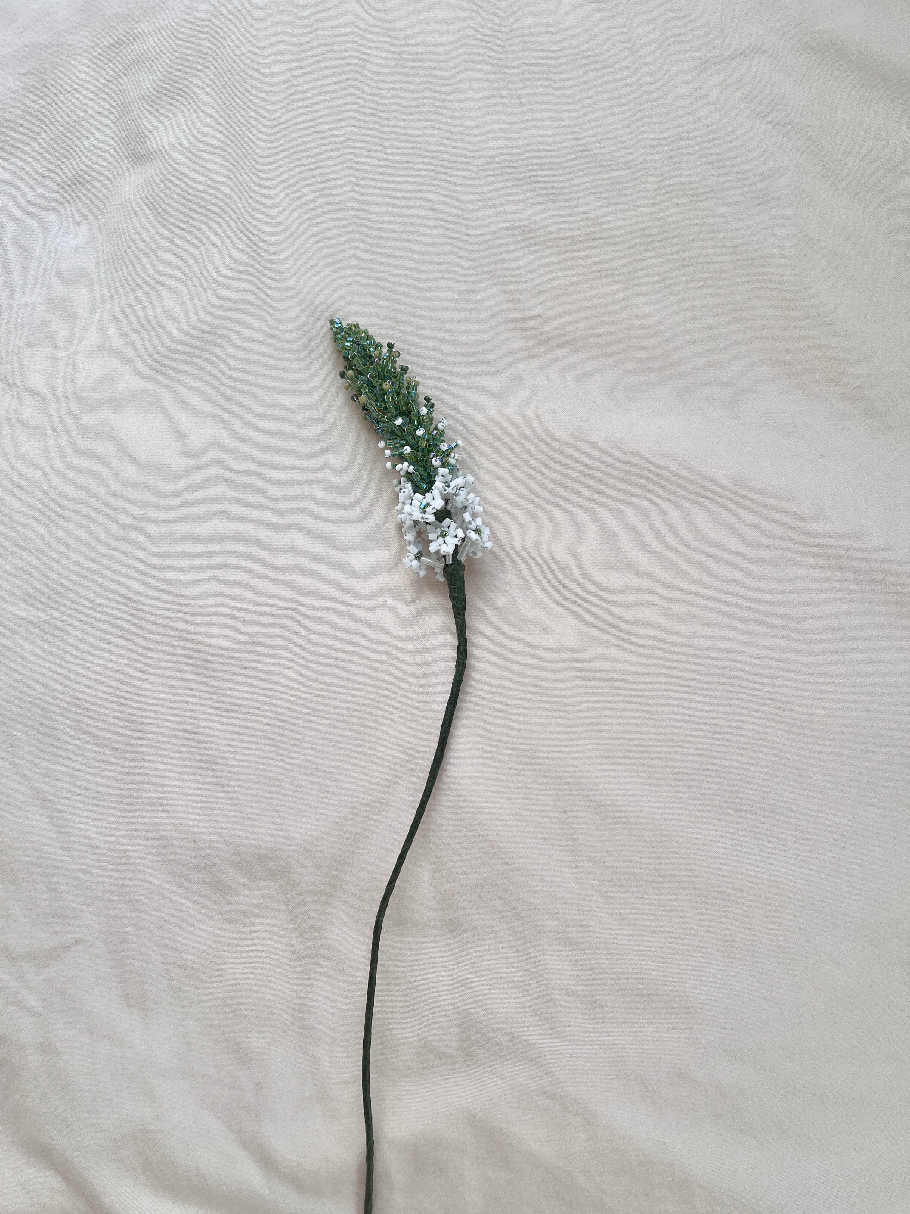 この「オカトラノオ ビーズフラワー」は、シンプルながらも存在感を放つデザインが特長です。