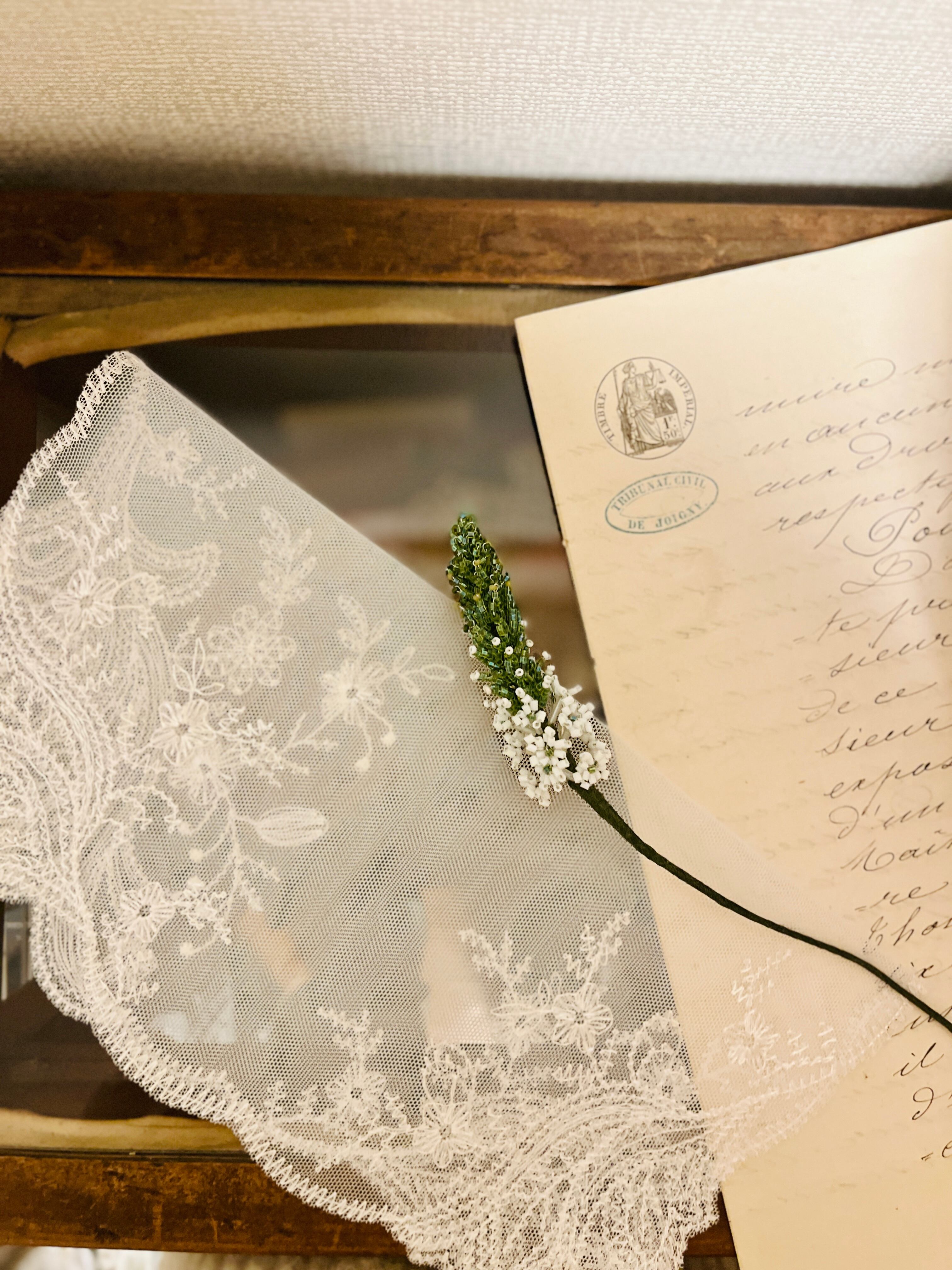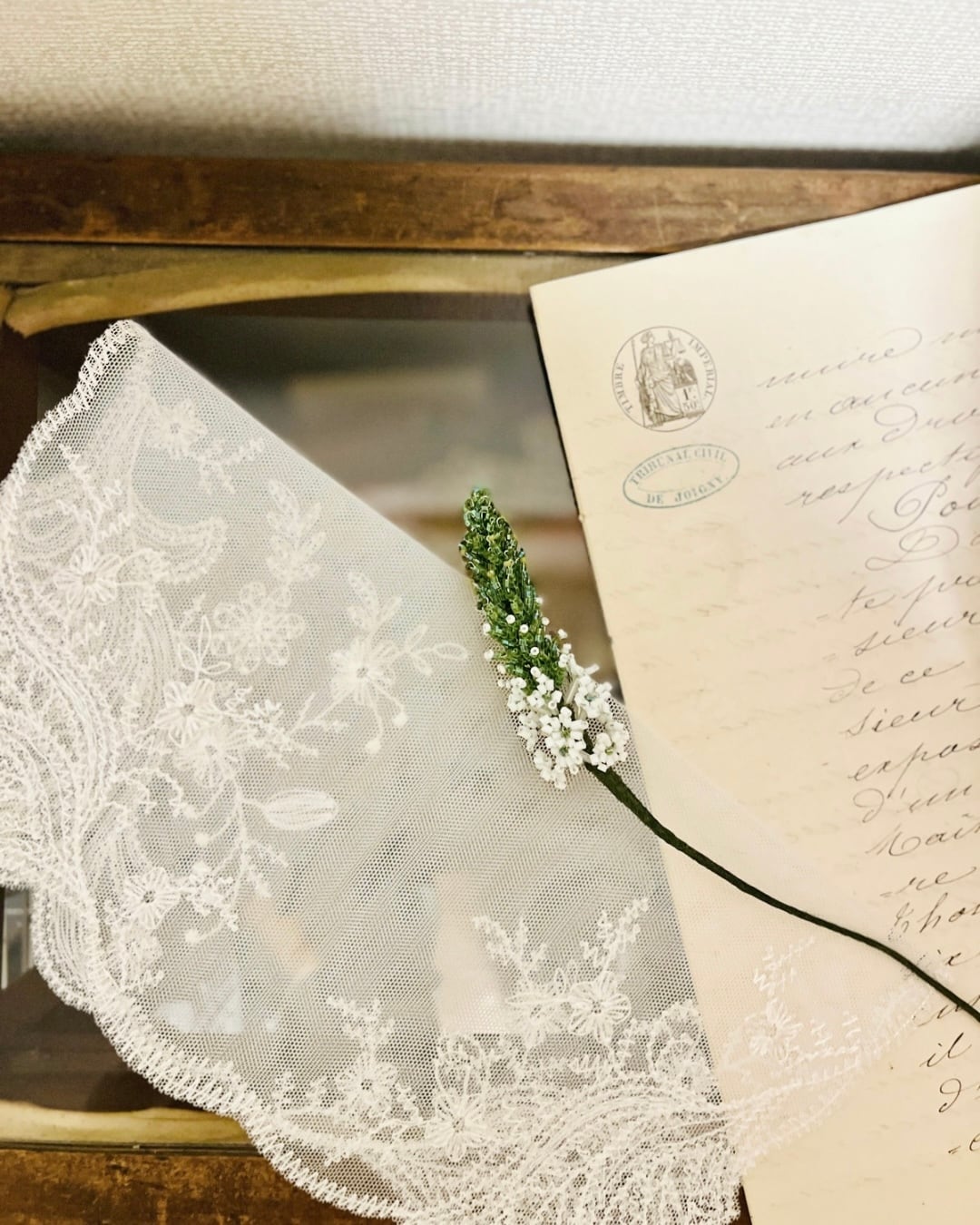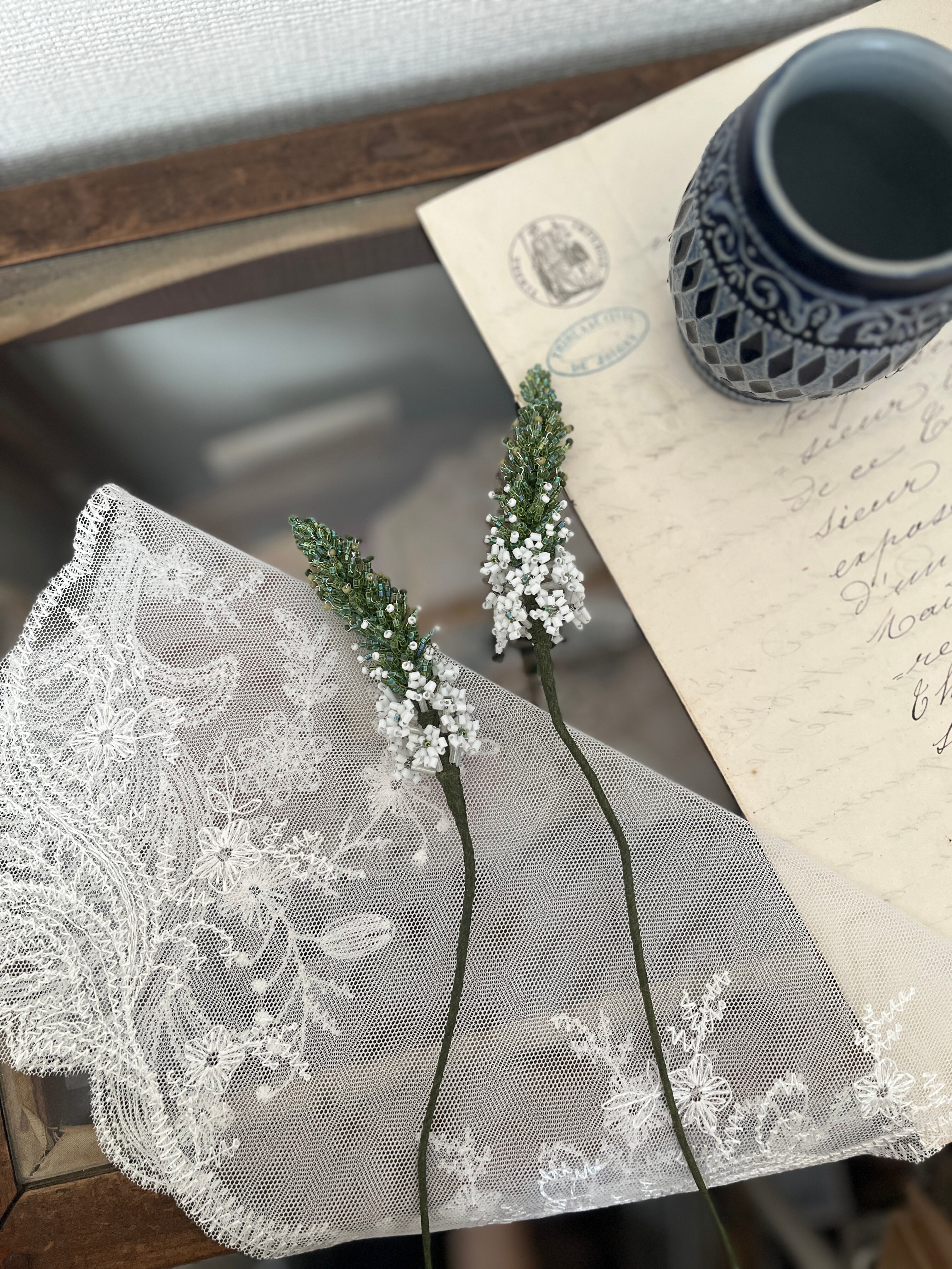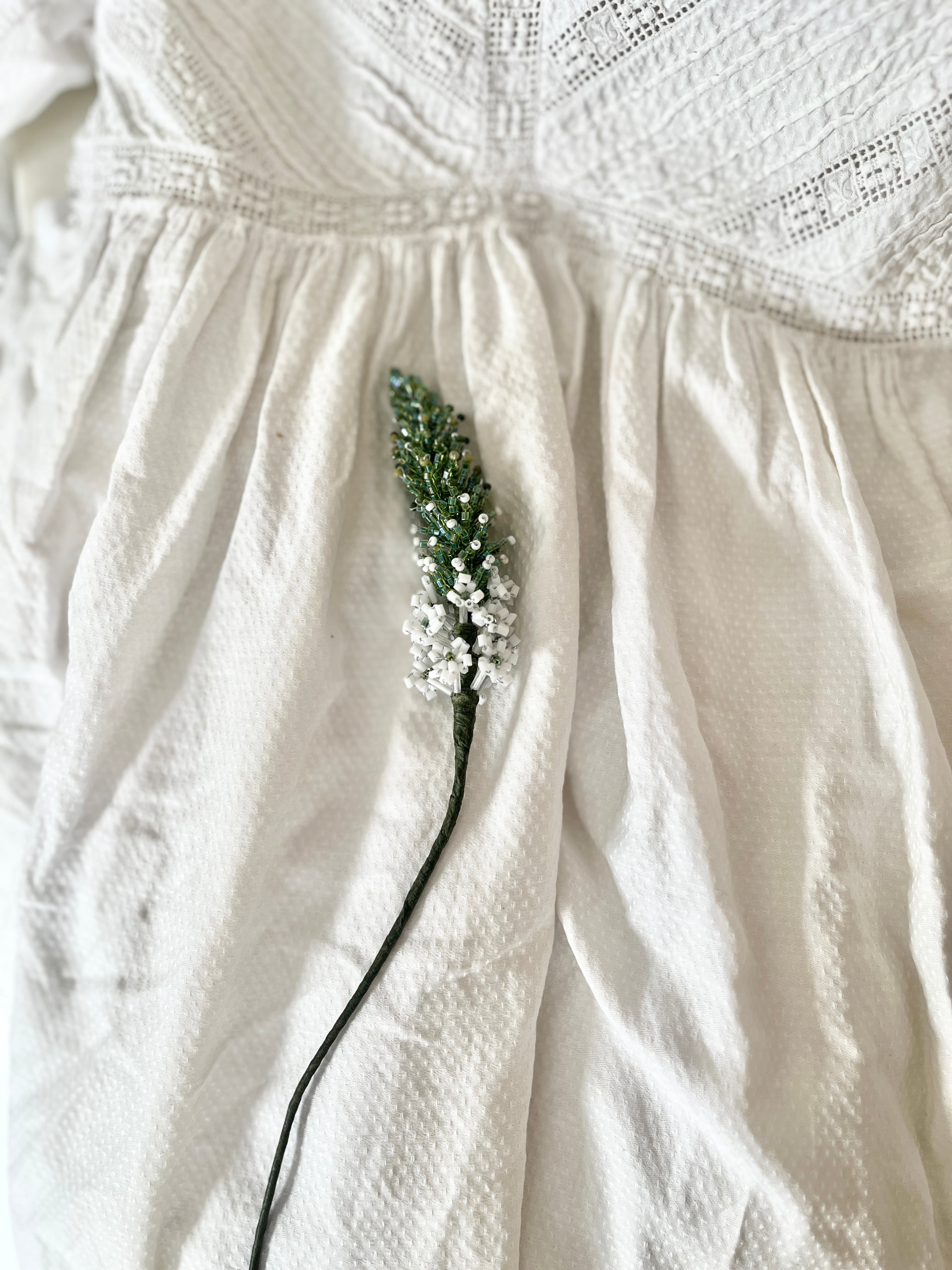 この「オカトラノオ ビーズフラワー」は、シンプルながらも存在感を放つデザインが特長です。