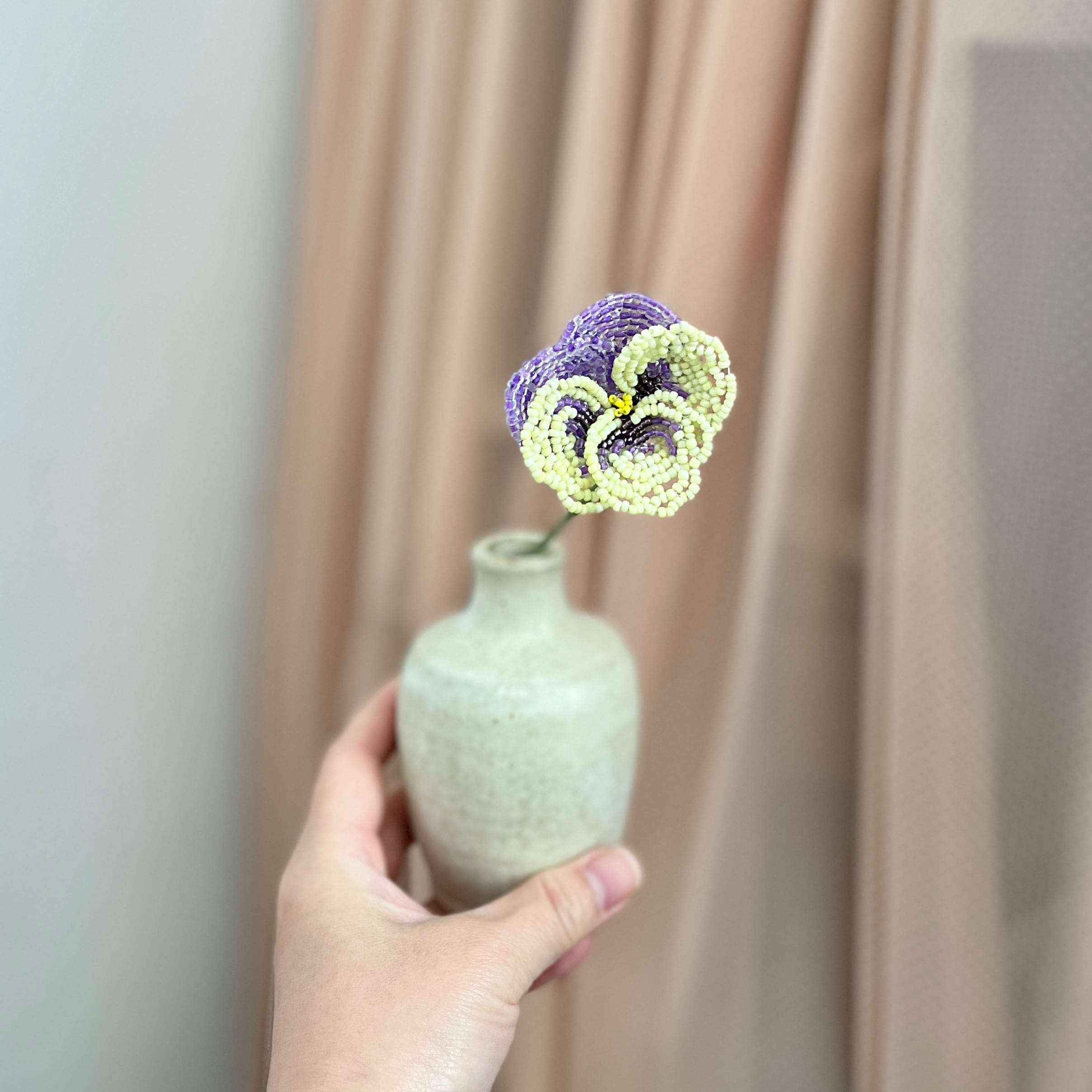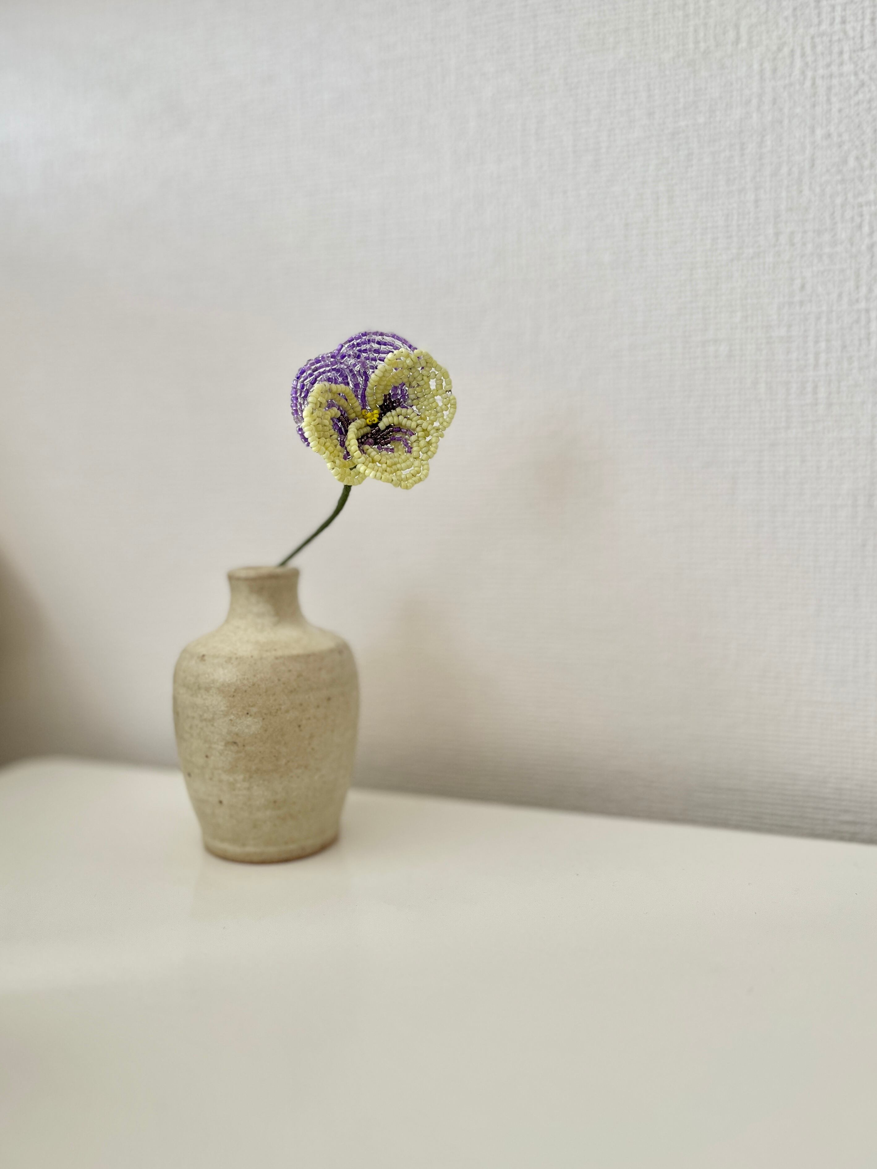 この「パンジー ビーズフラワー」は、愛らしいデザインと繊細なビーズ使いが特長です。お部屋の雰囲気を一層明るくし、自然な温かさを与えます。リビングや寝室、さらにはデスク周りなど、さまざまな場所にぴったりと調和し、あなたの空間を心地よく演出します。