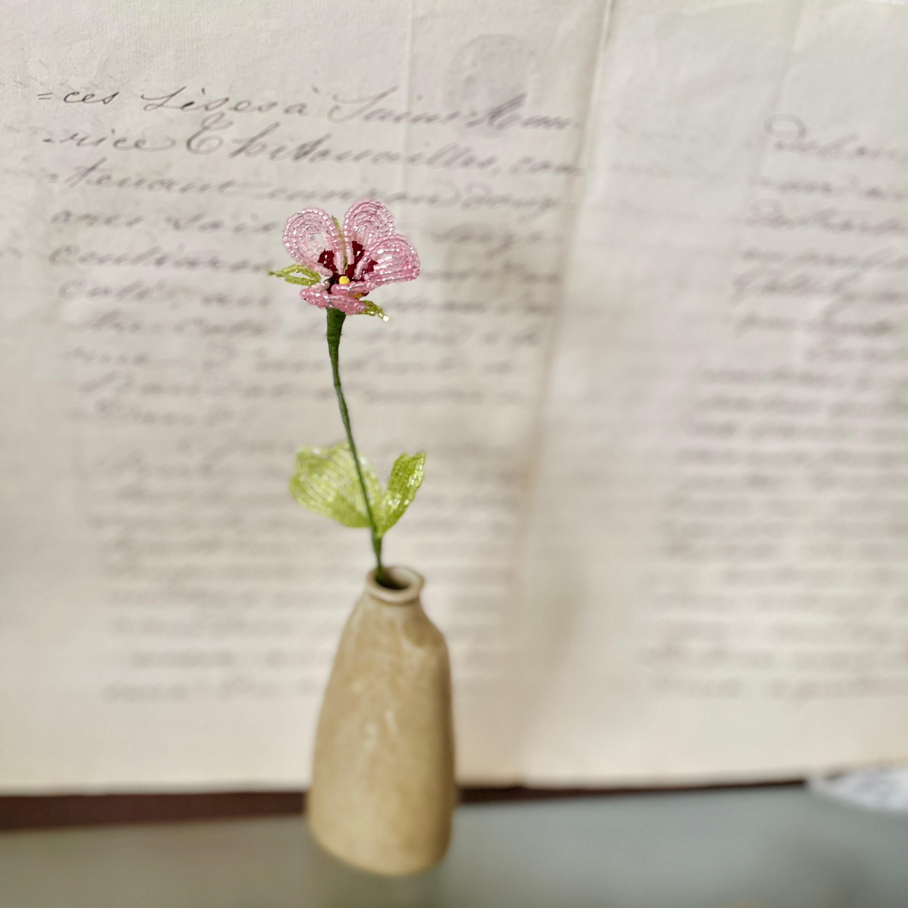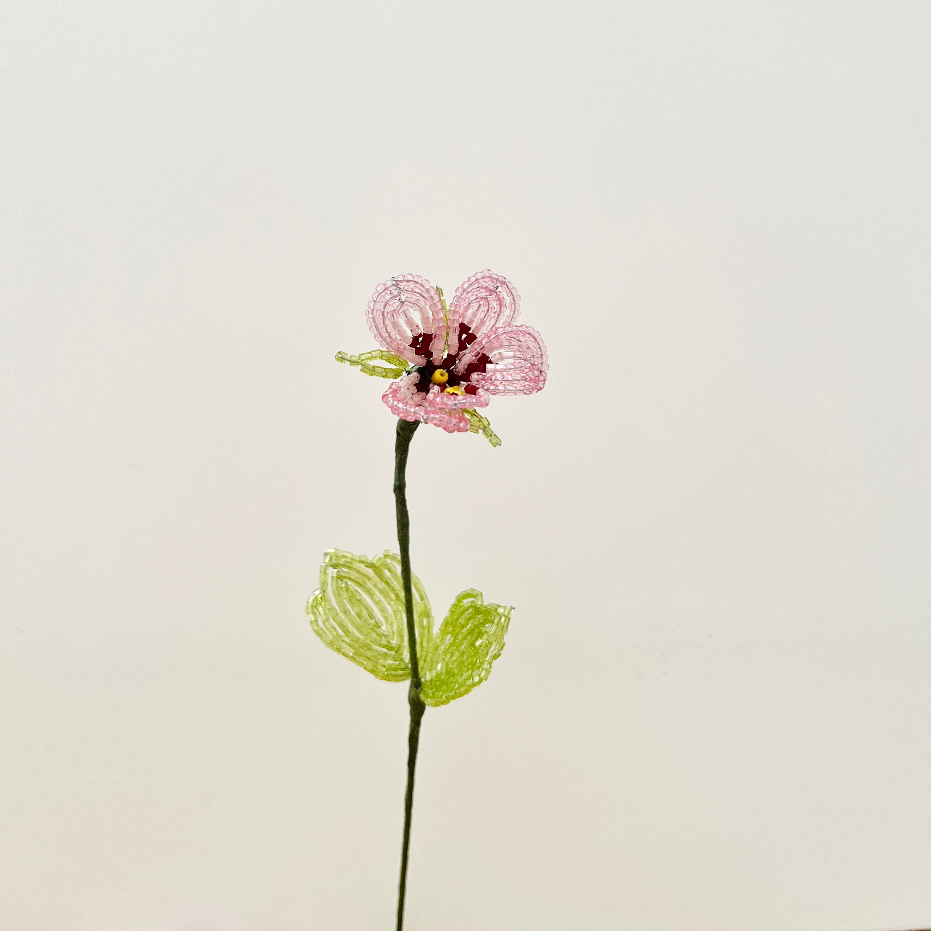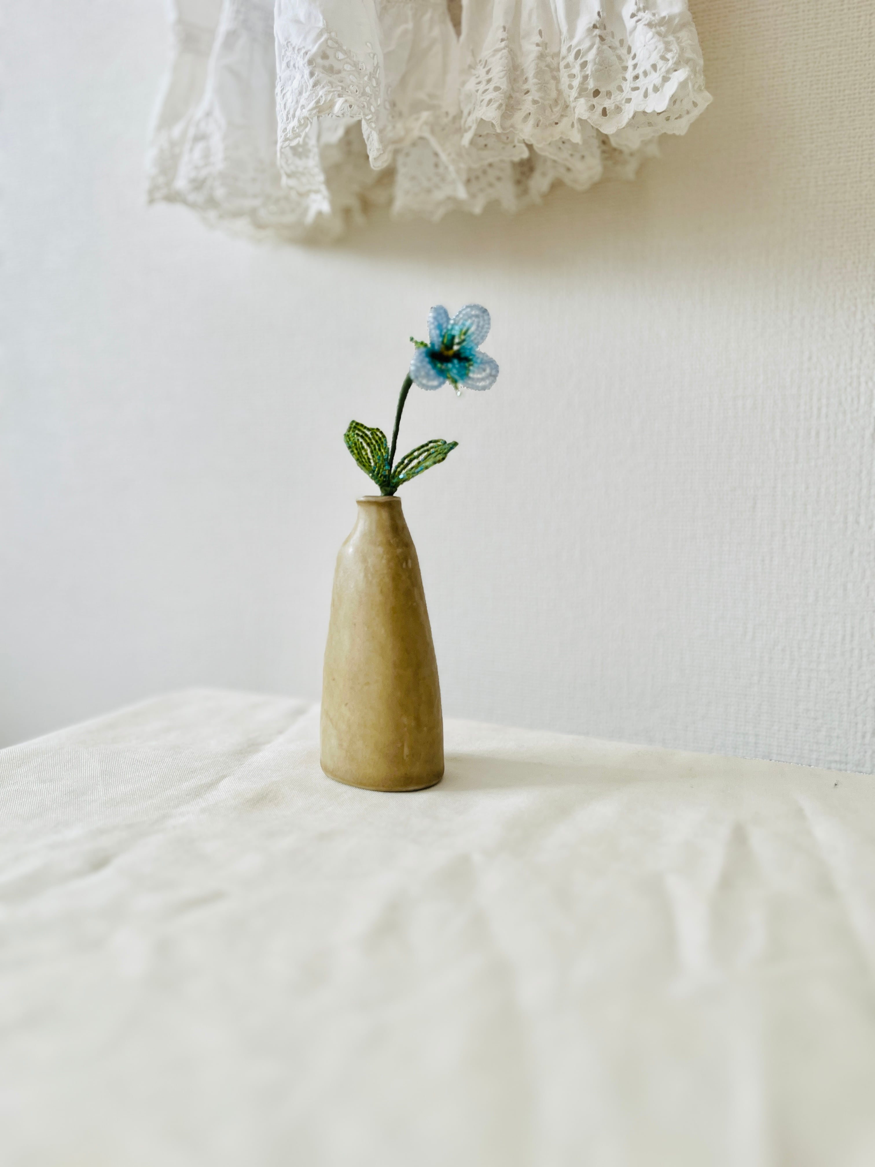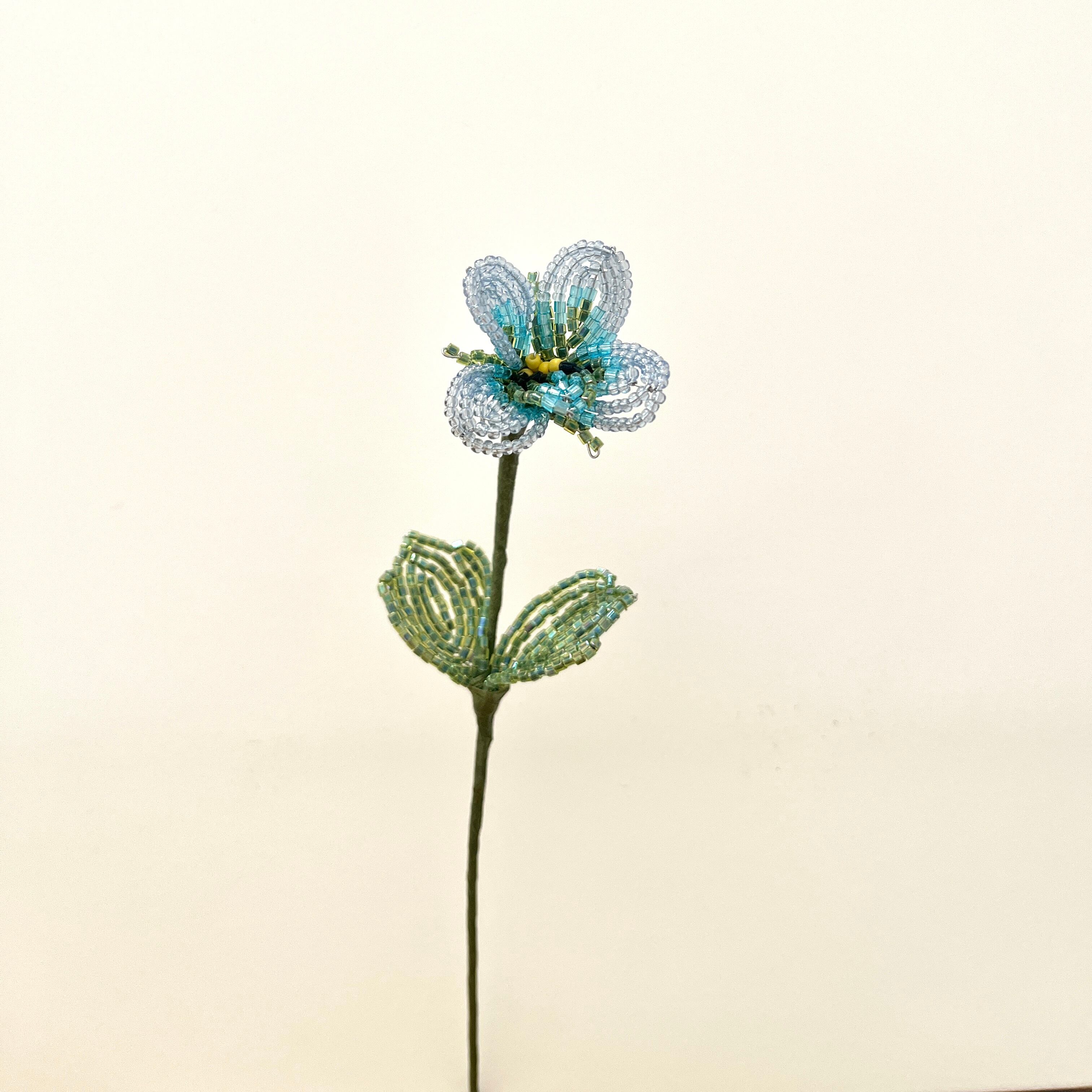 がくや、葉っぱもデザインされているので、小さな1輪でも存在感のあるビーズフラワーです