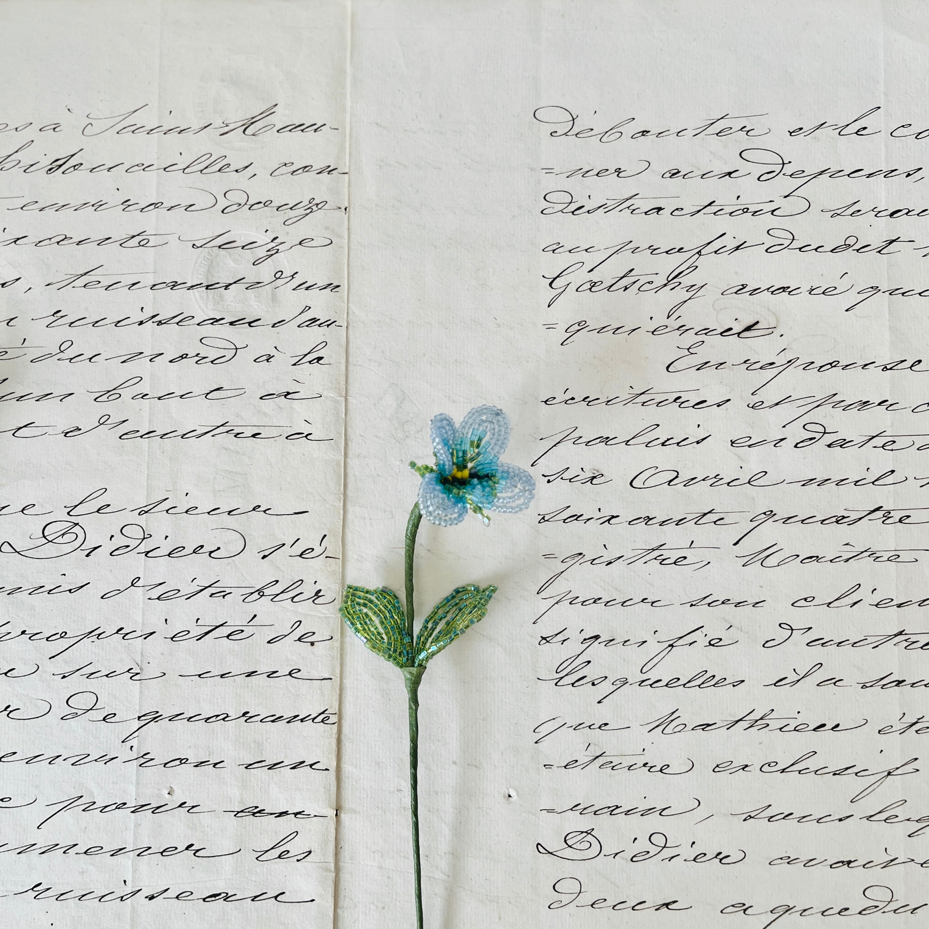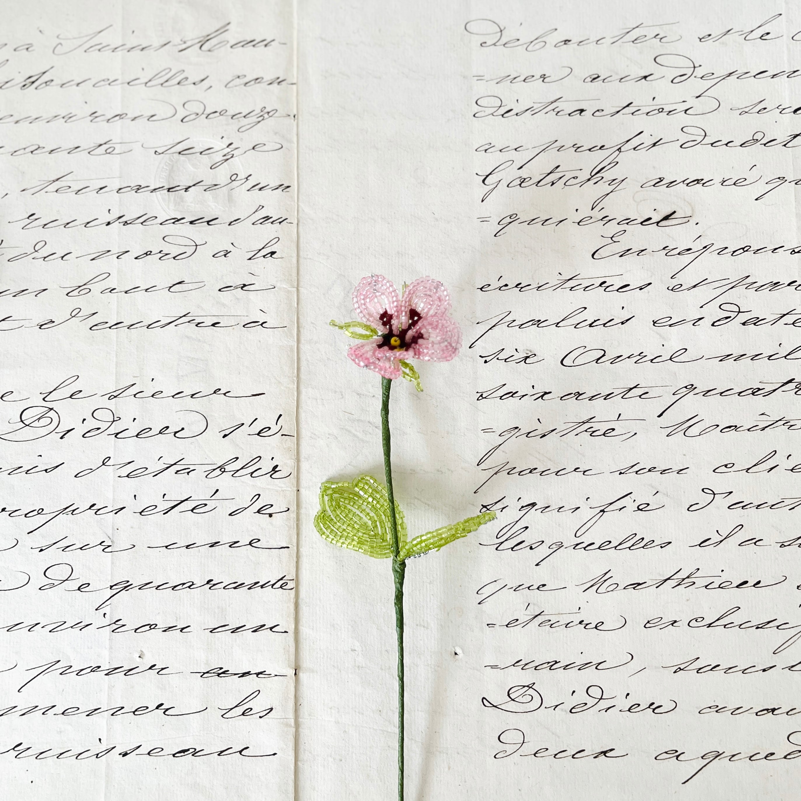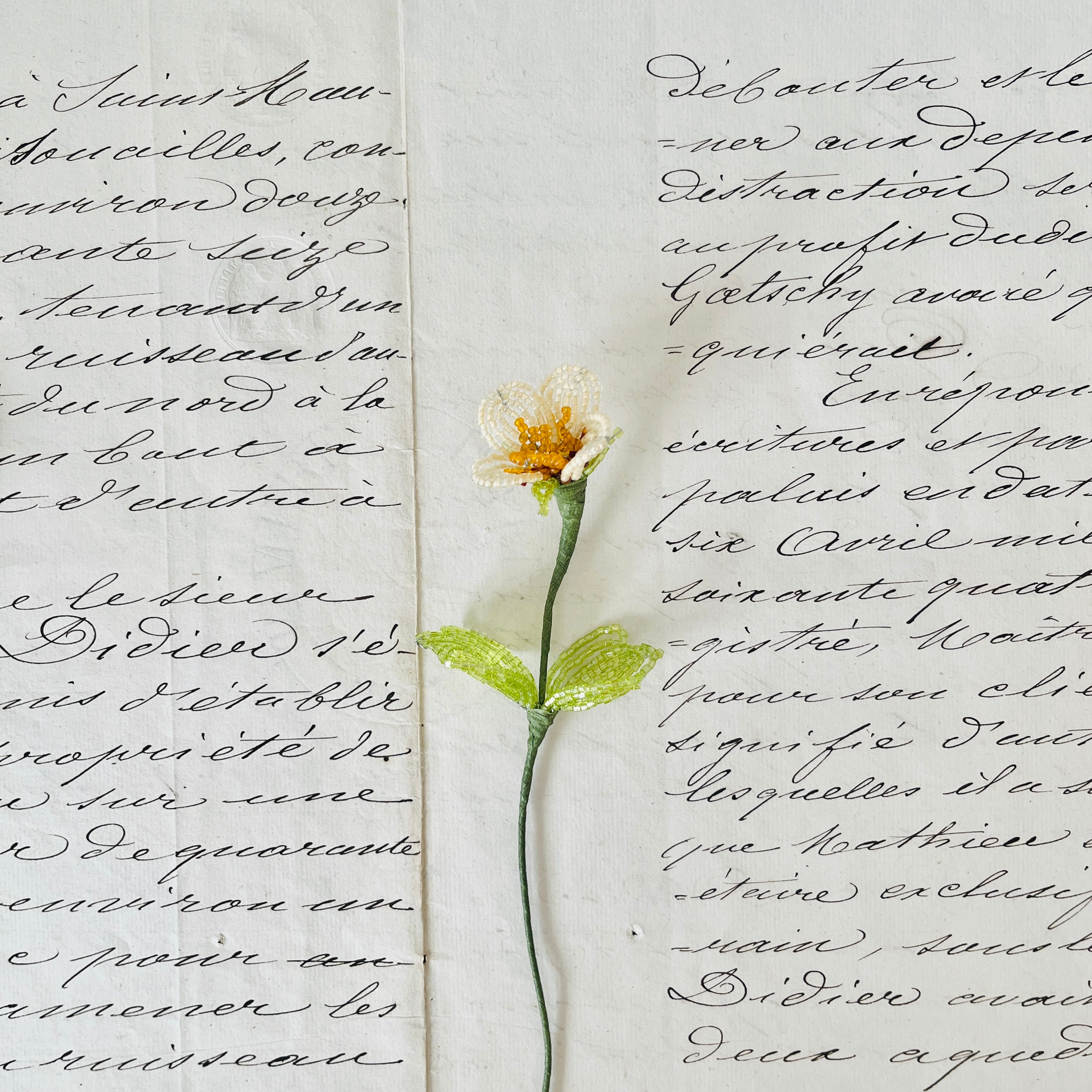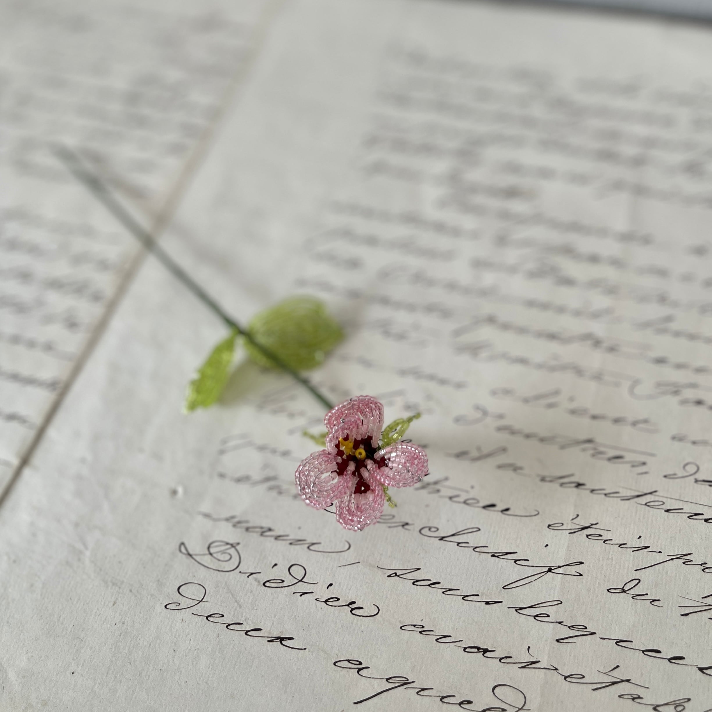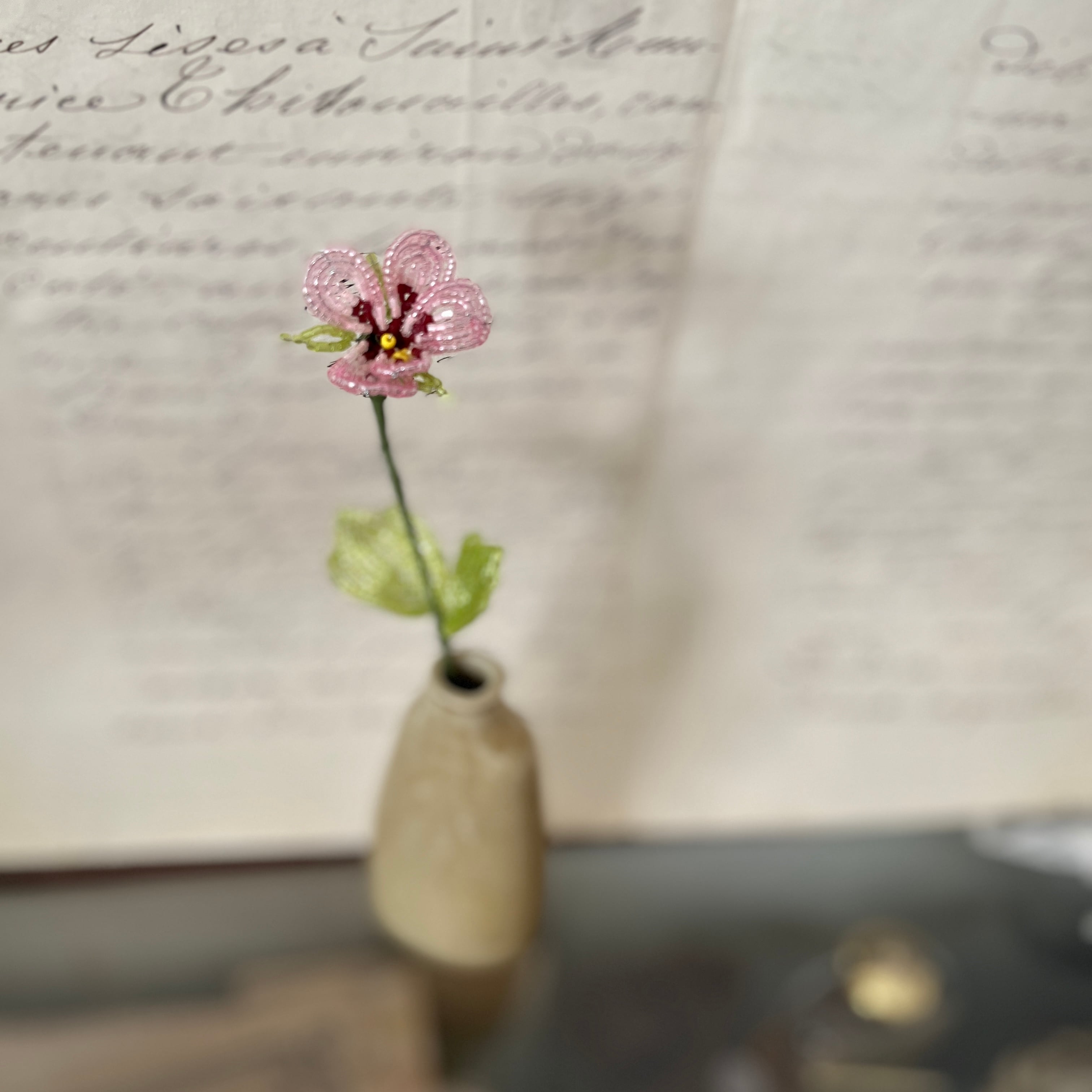 がくや、葉っぱもデザインされているので、小さな1輪でも存在感のあるビーズフラワーです