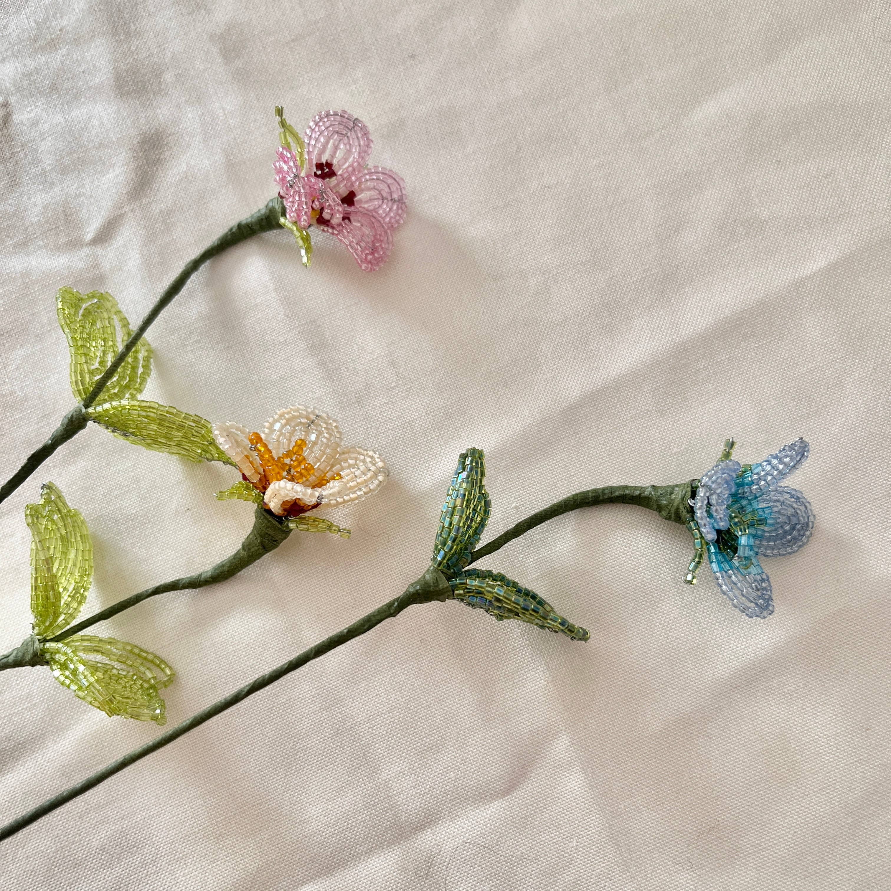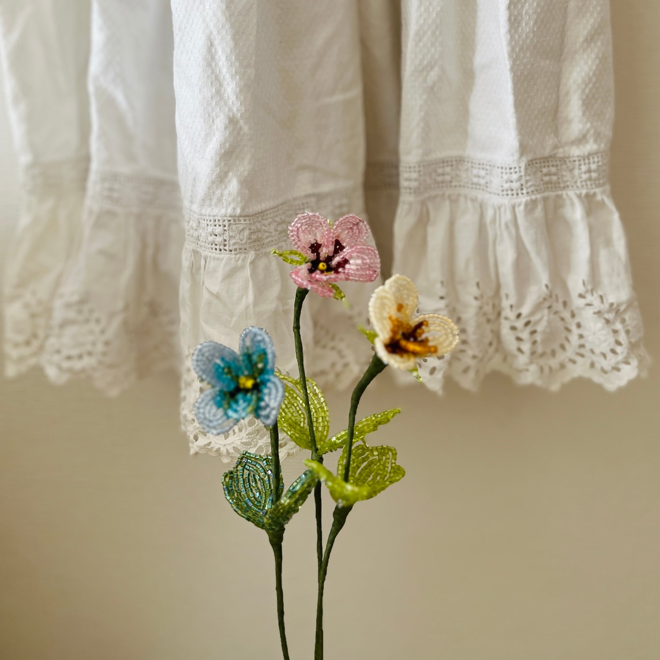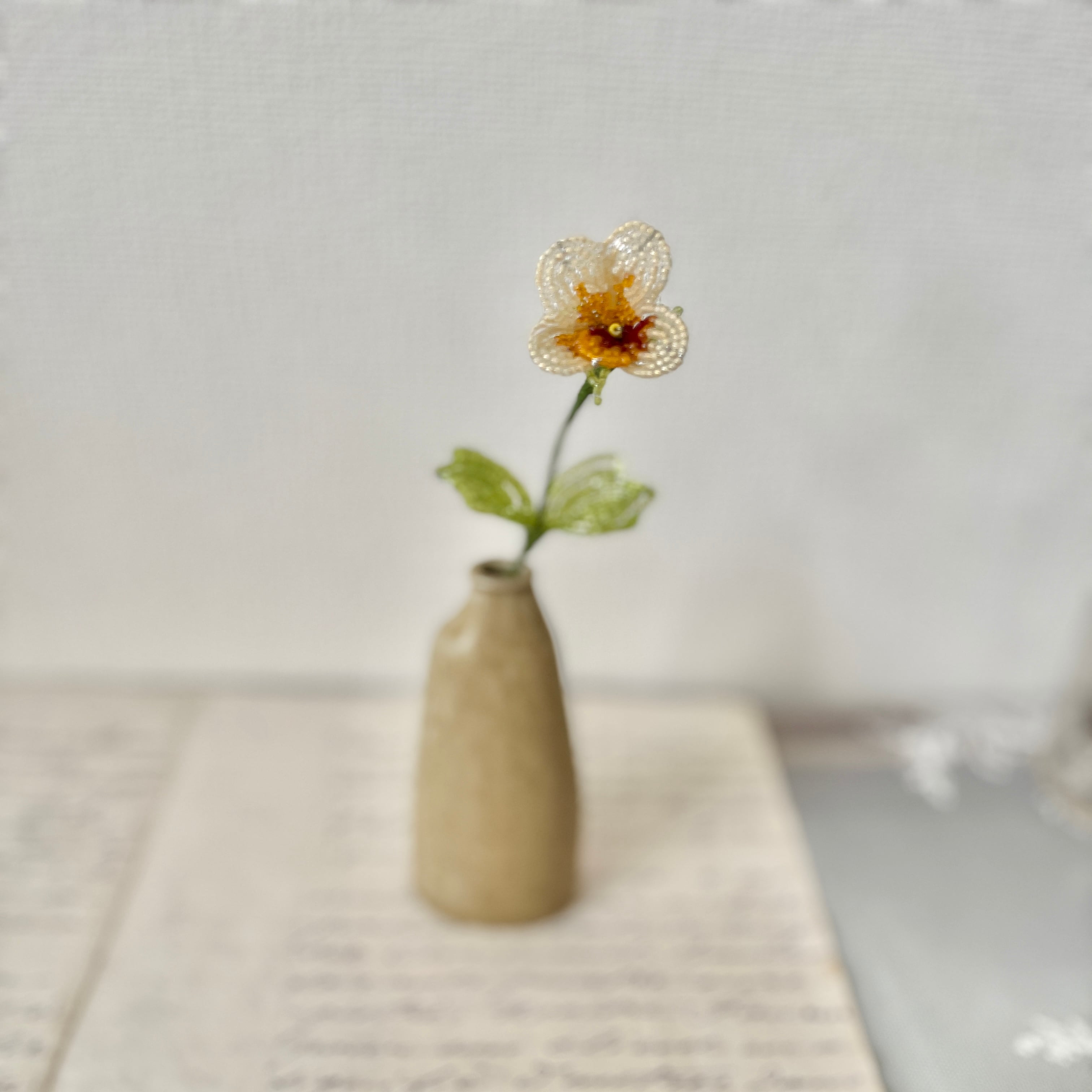 この「viola ビーズフラワー」は、小さくても存在感を放つデザインが特長です。