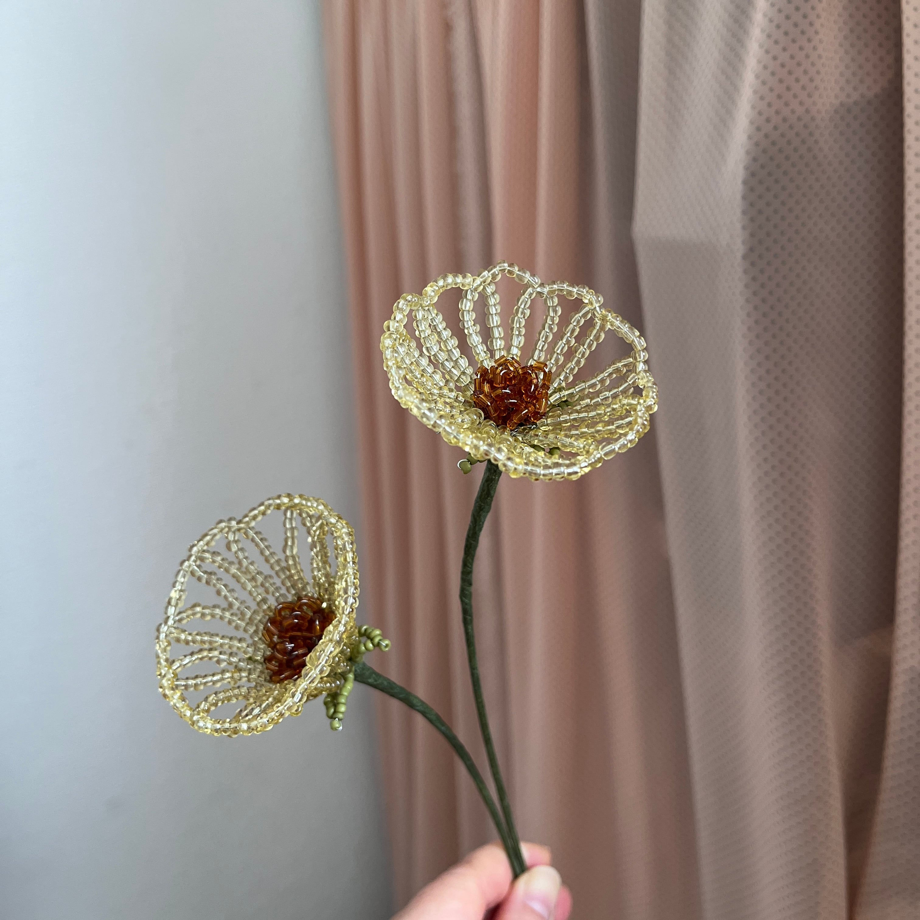 ウィスキー色の美しいビーズフラワーが登場!