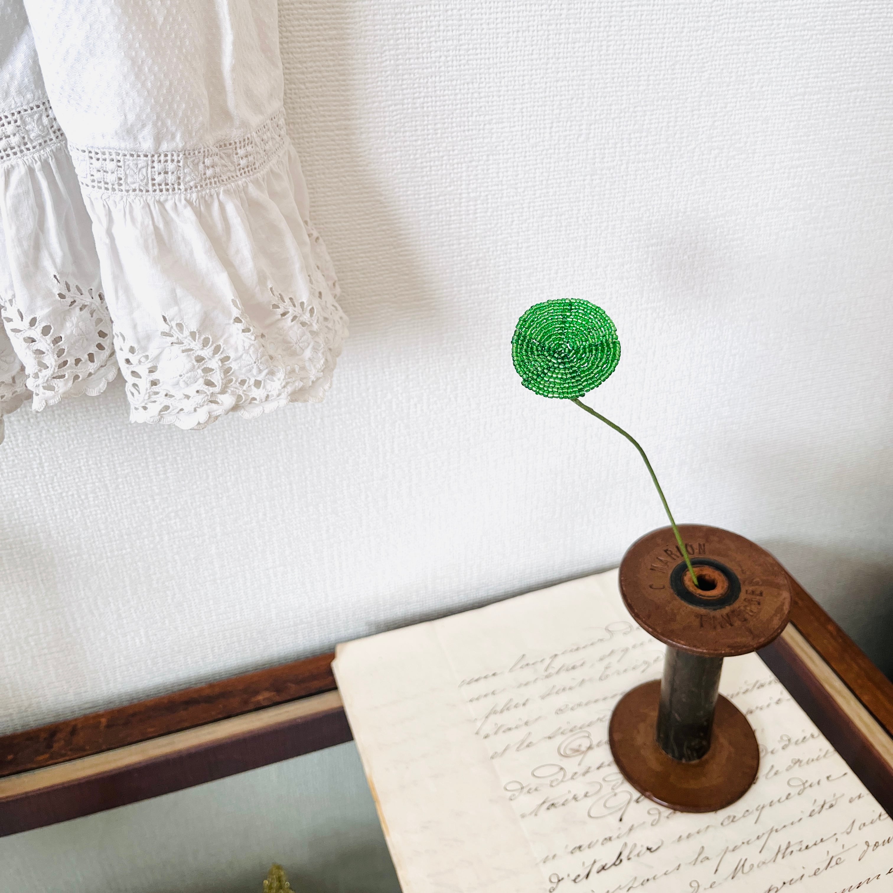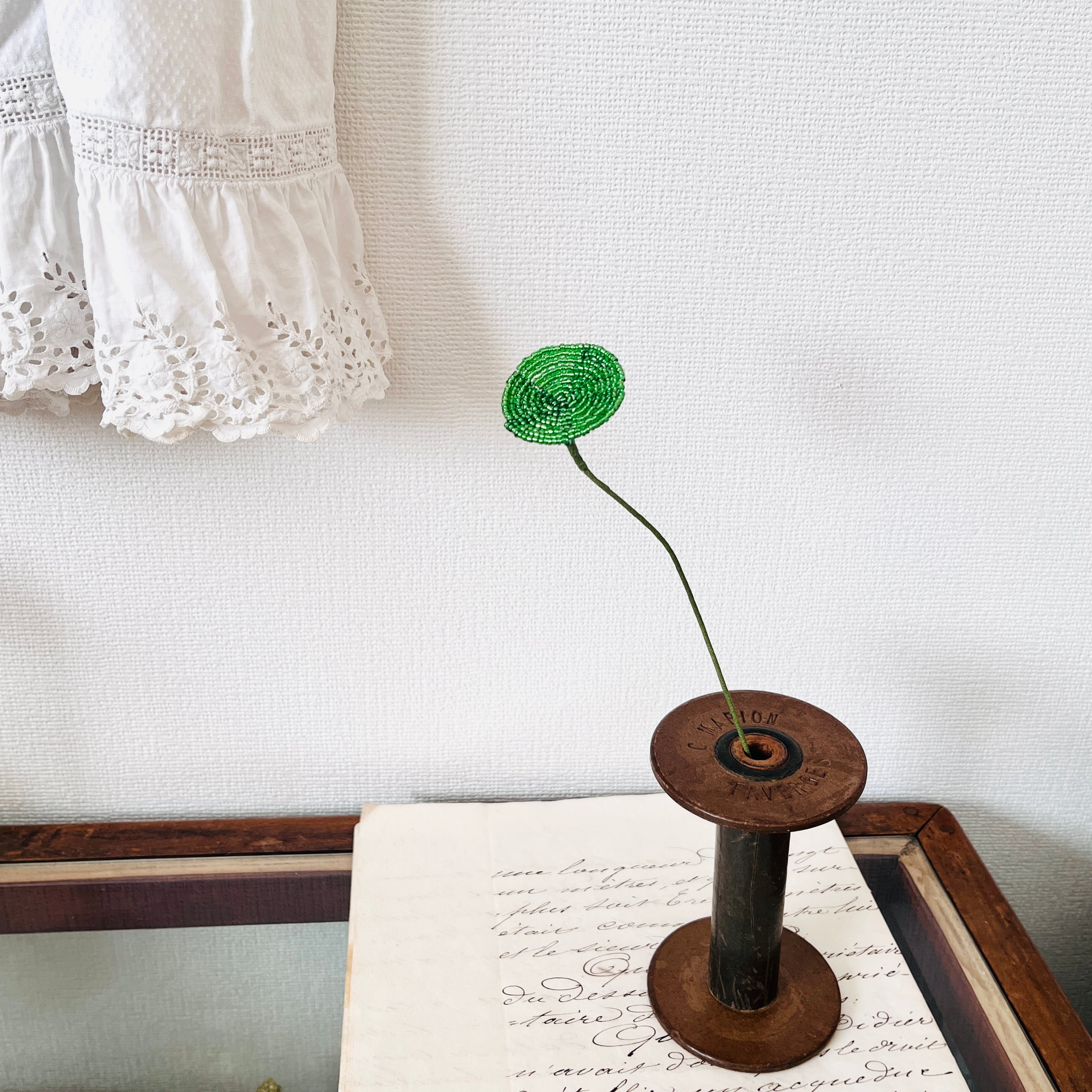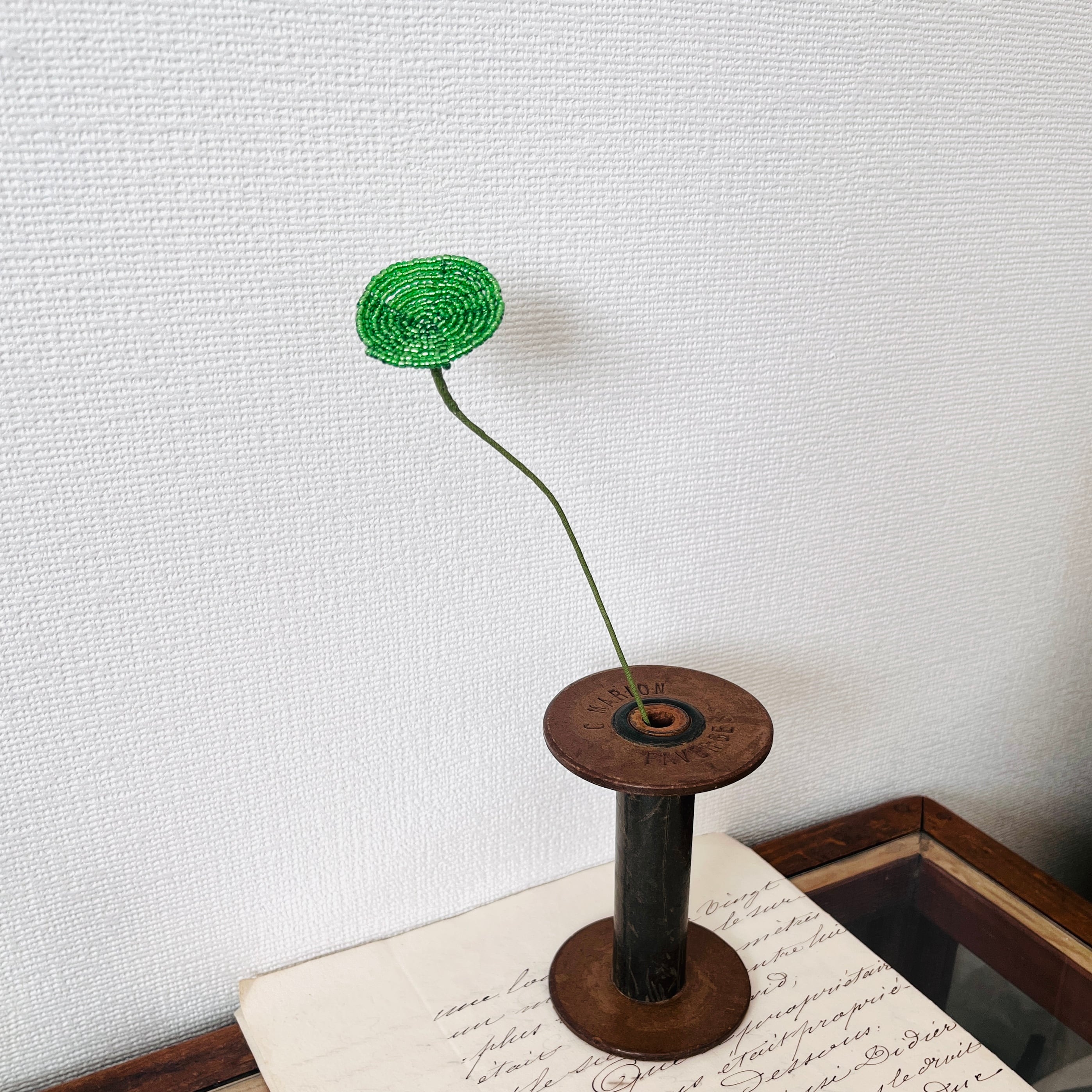【グリーン disk ビーズフラワー】