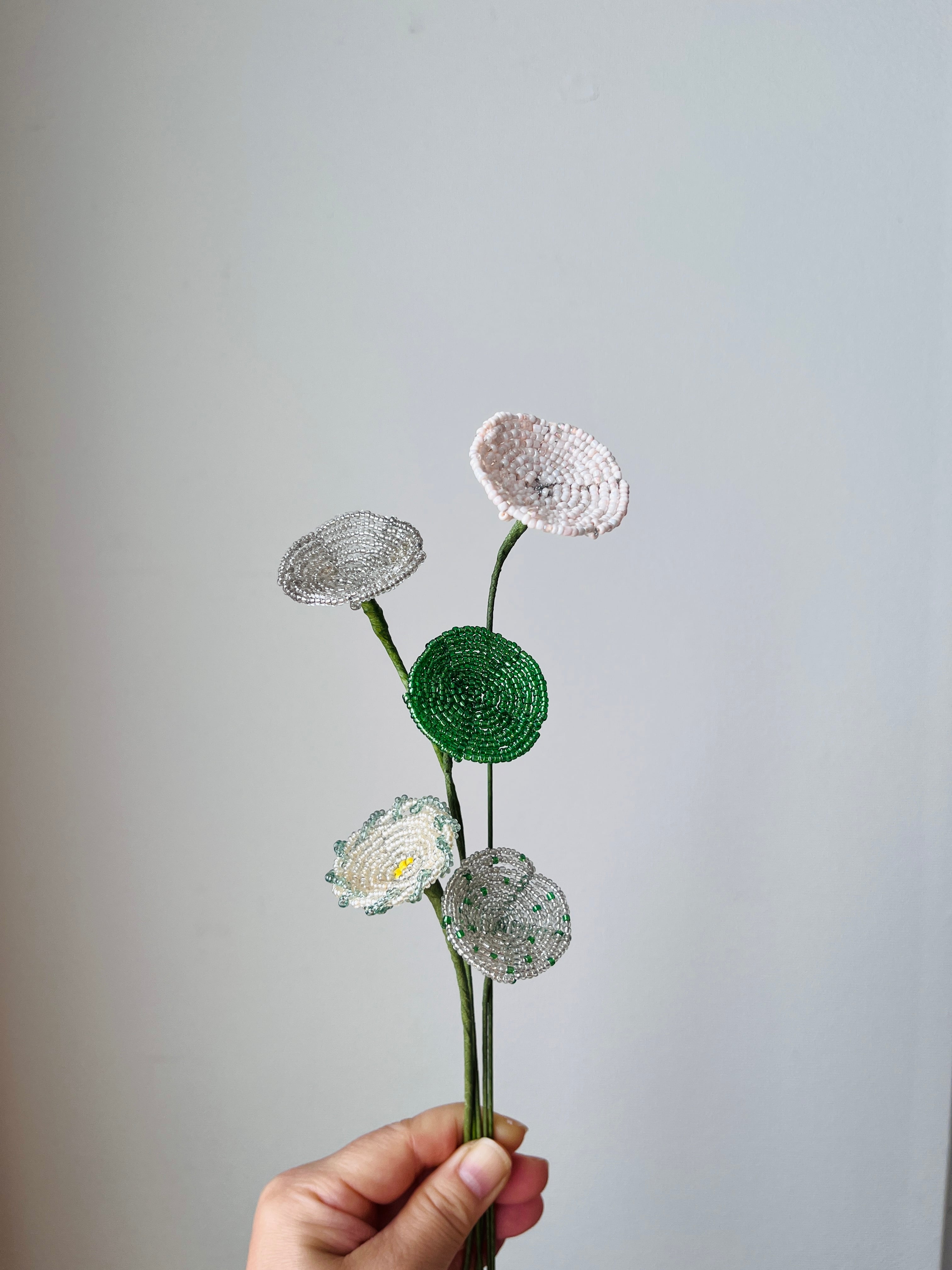 爽やかな印象を持つ円盤型ビーズフラワーが登場!