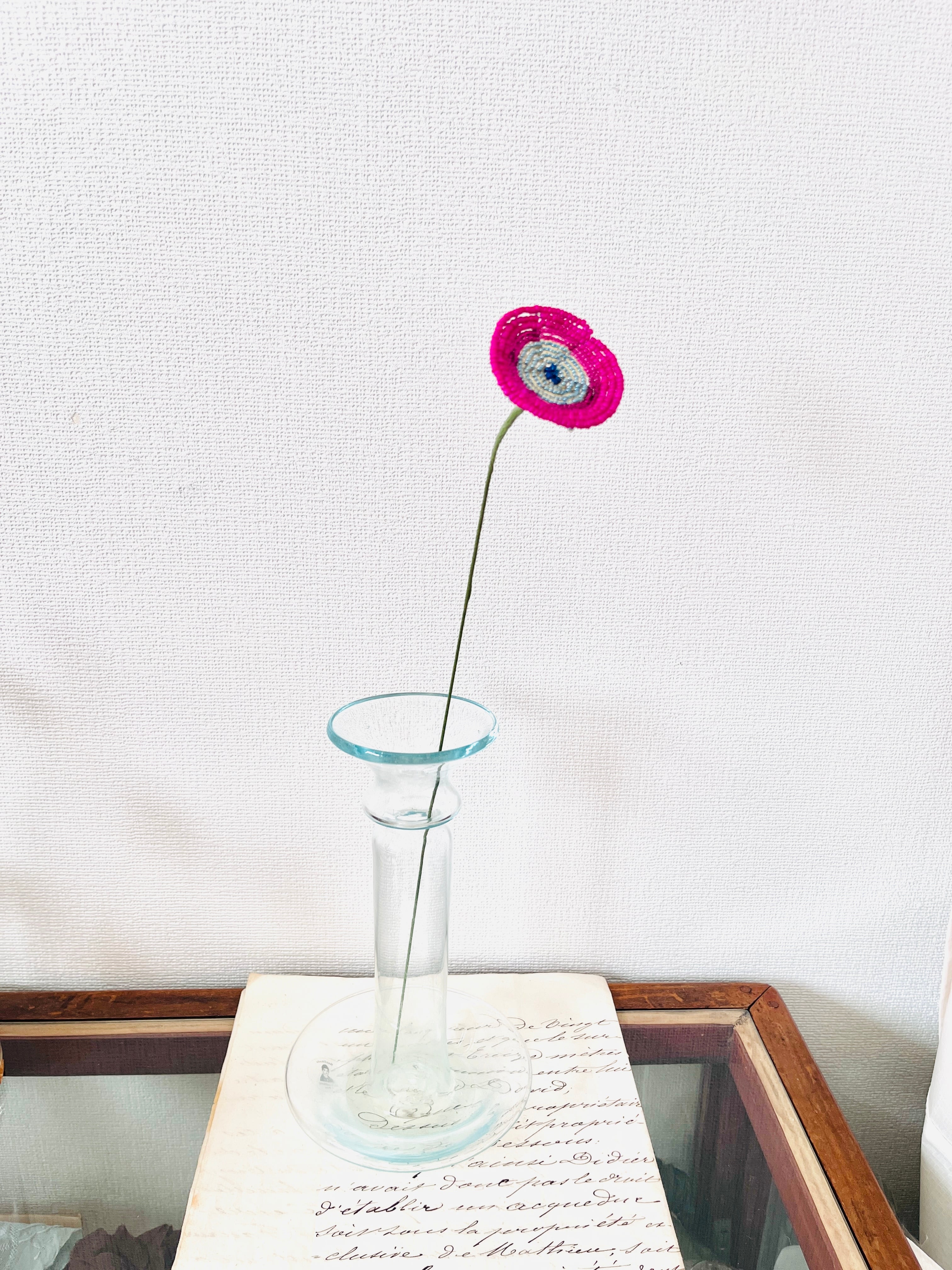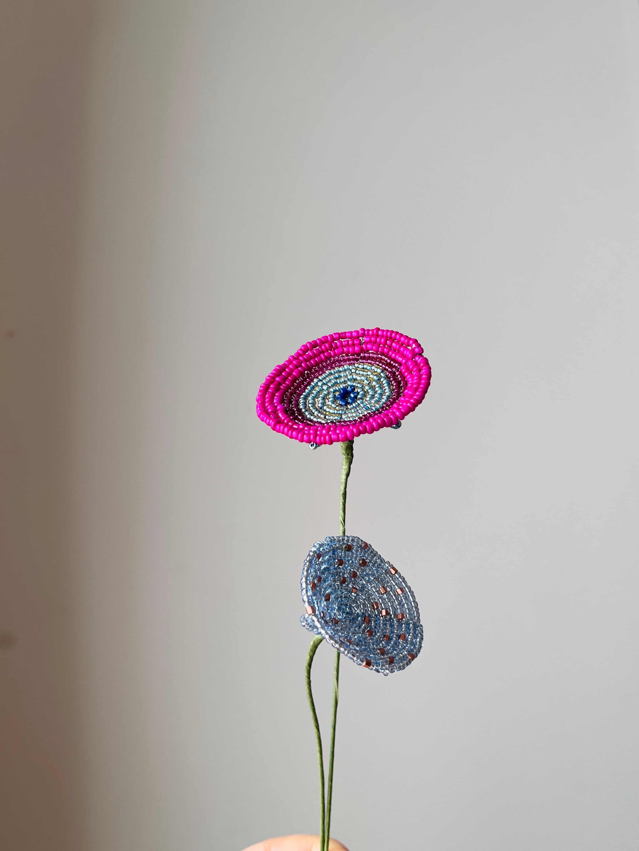 赤紫の円盤のようなビーズフラワーが新登場!