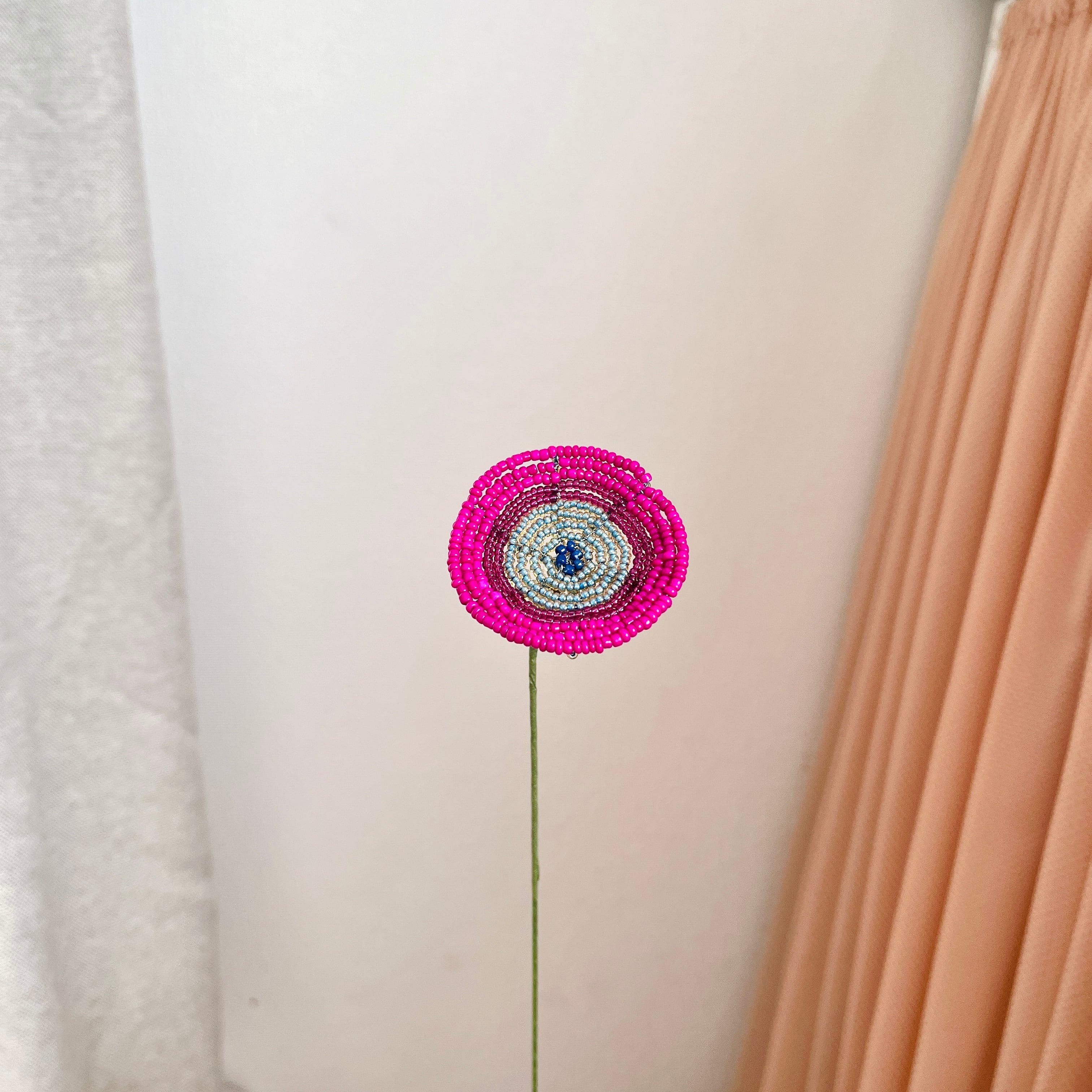この「signal ビーズフラワー」は、ユニークな赤紫の円盤型デザインが特徴で、印象的な空間を演出します。豊かな色合いと個性的なフォルムが、どんなインテリアにも自然に溶け込み、周囲の雰囲気を引き立てます。複数のビーズフラワーをアレンジすることで、さらに独創的なディスプレイを楽しむことができます。