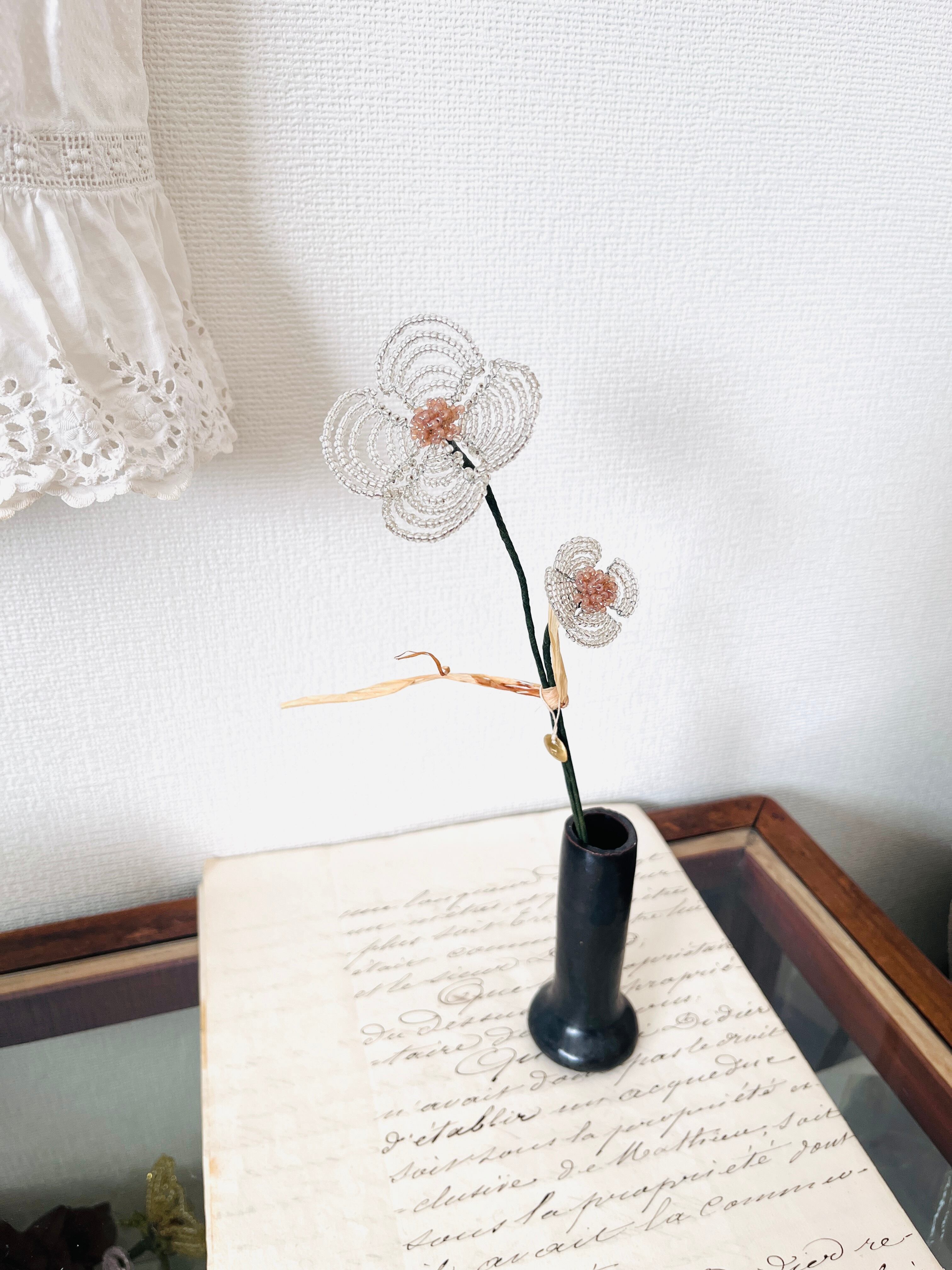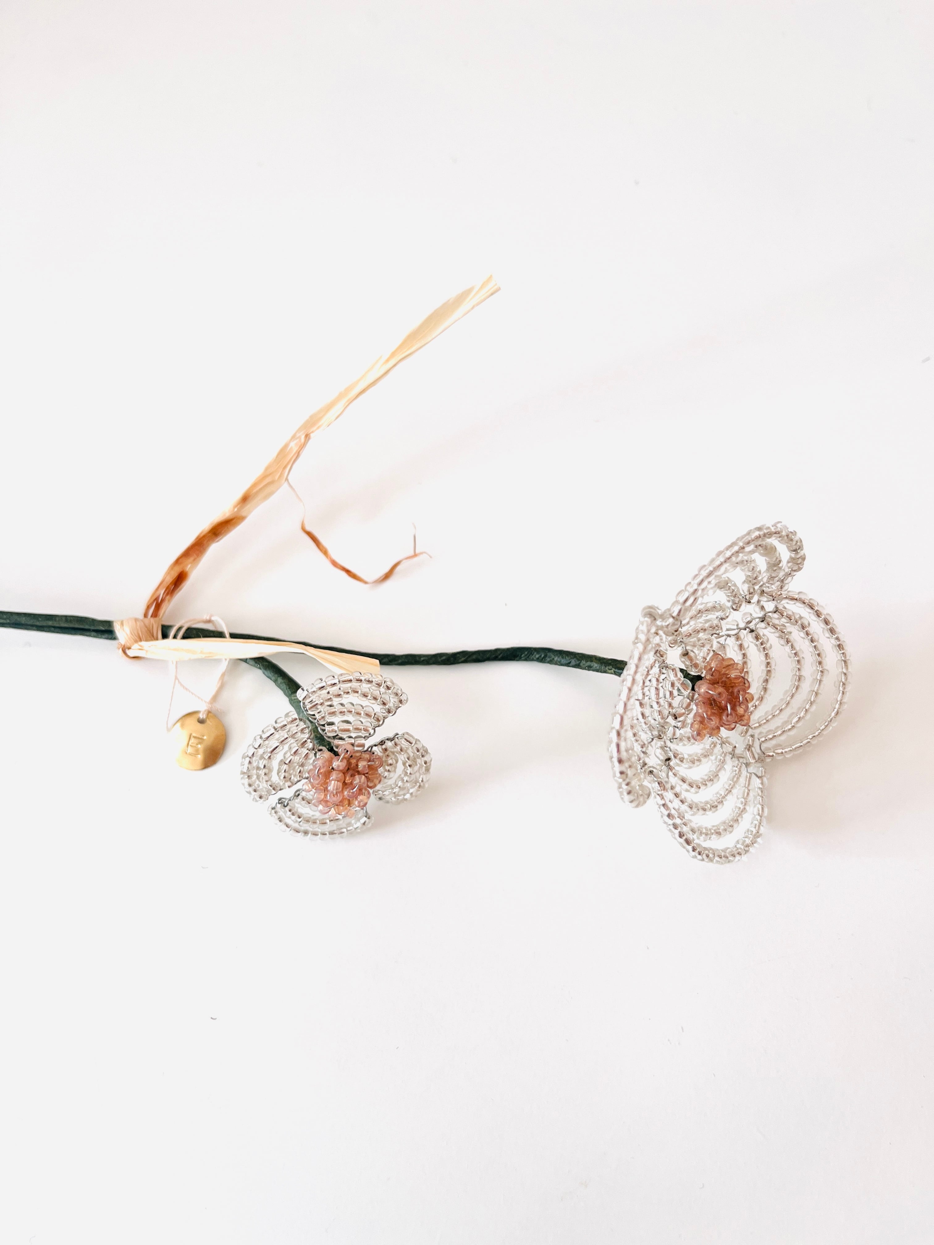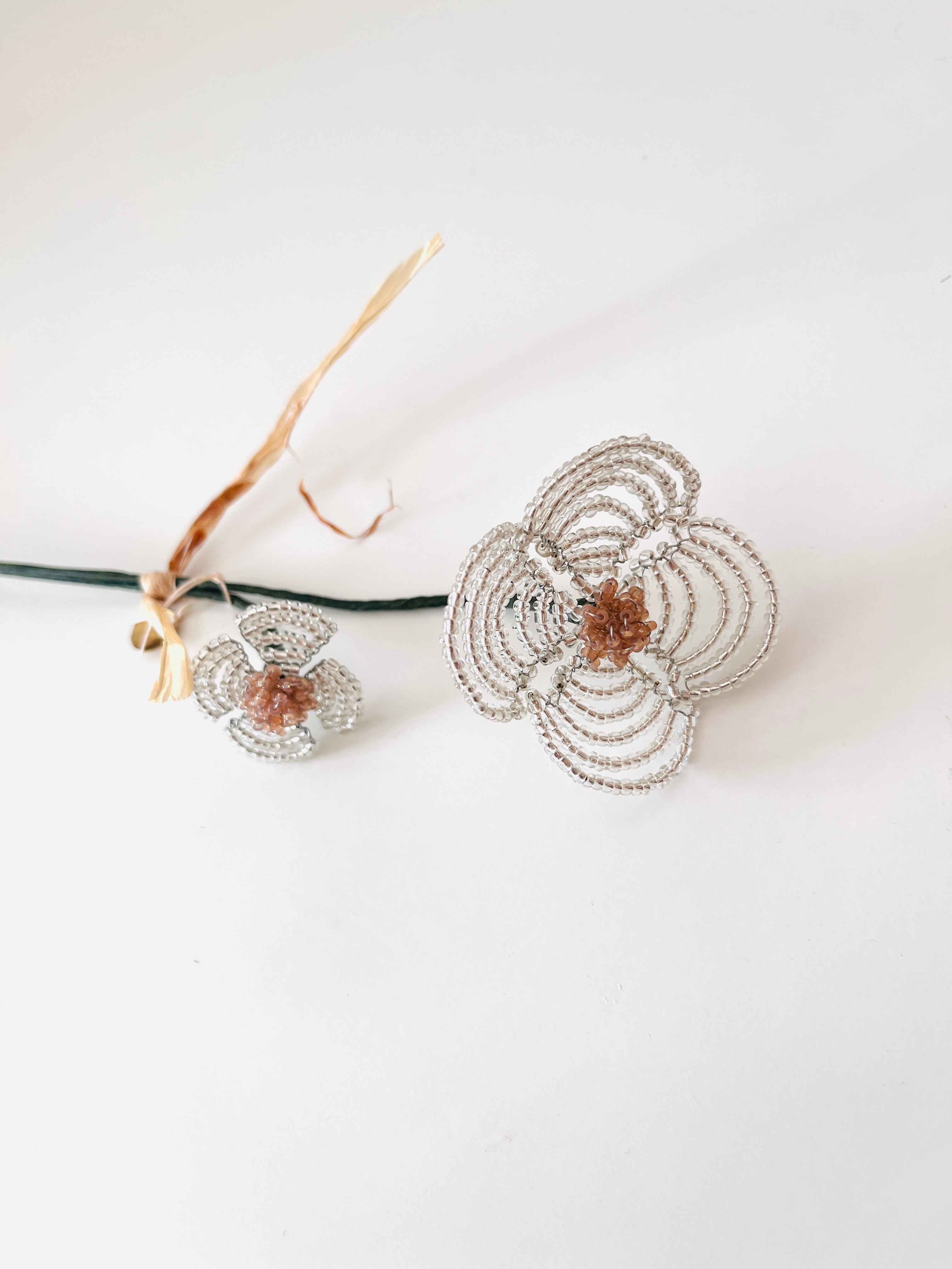 クリアなビーズが鈍く輝く、2本セットのビーズフラワーが登場!