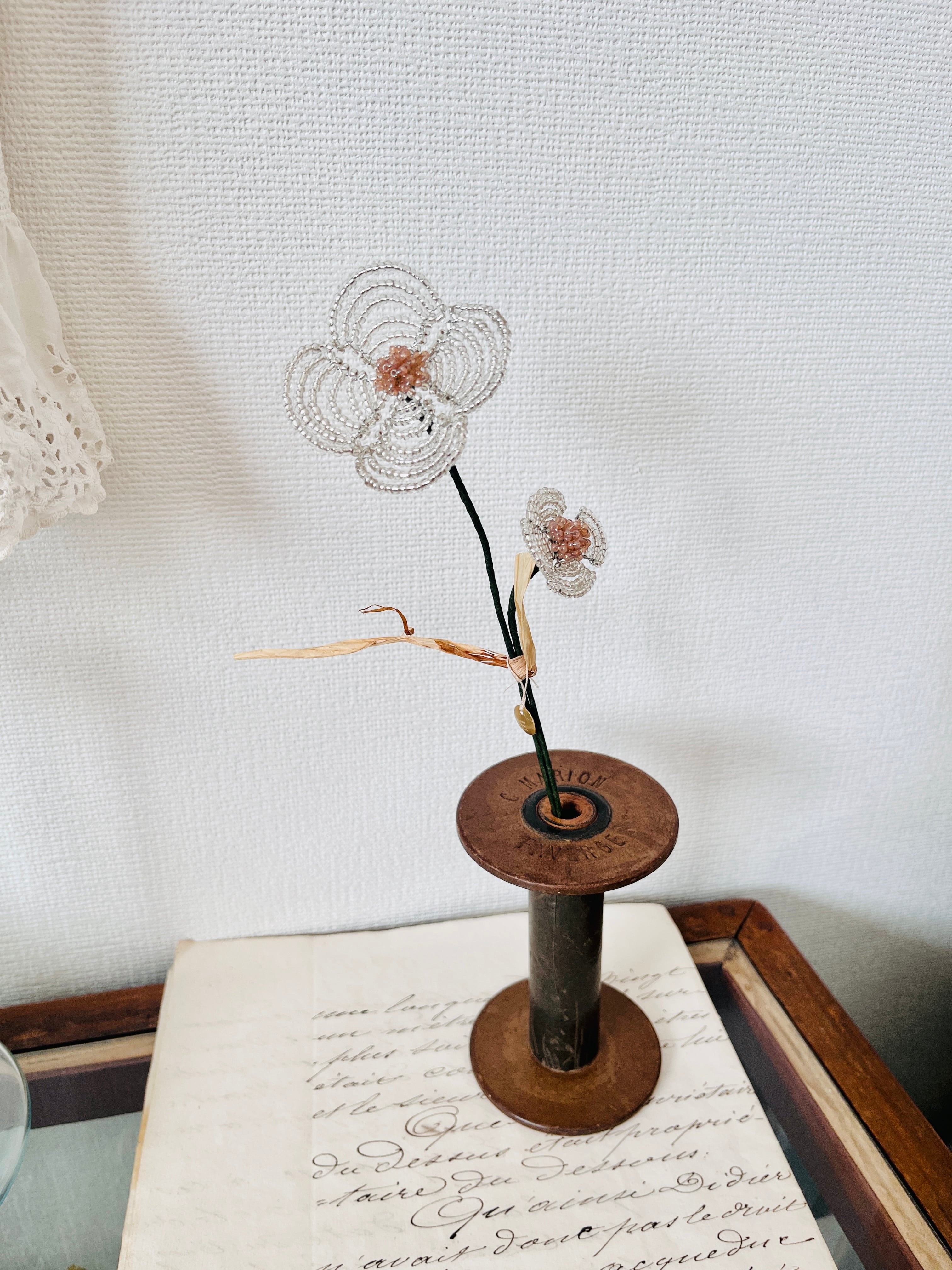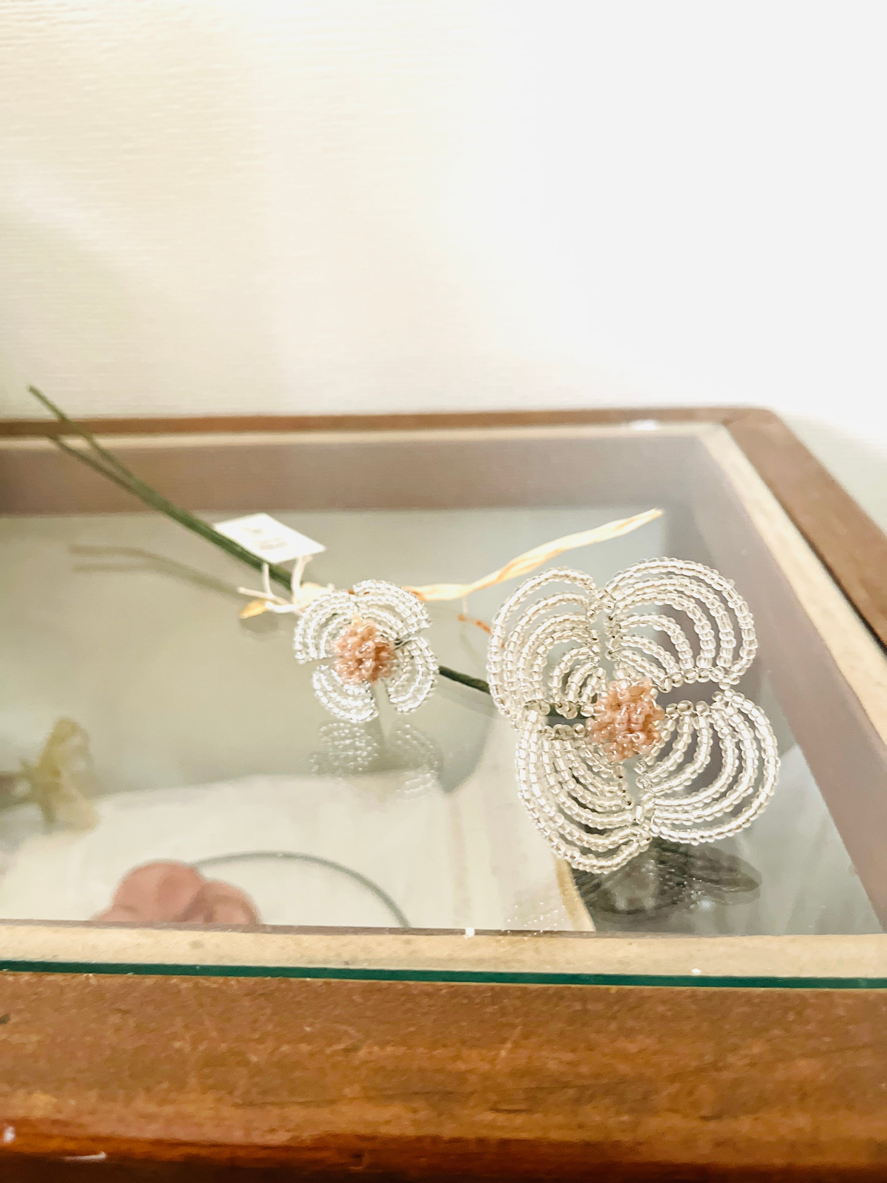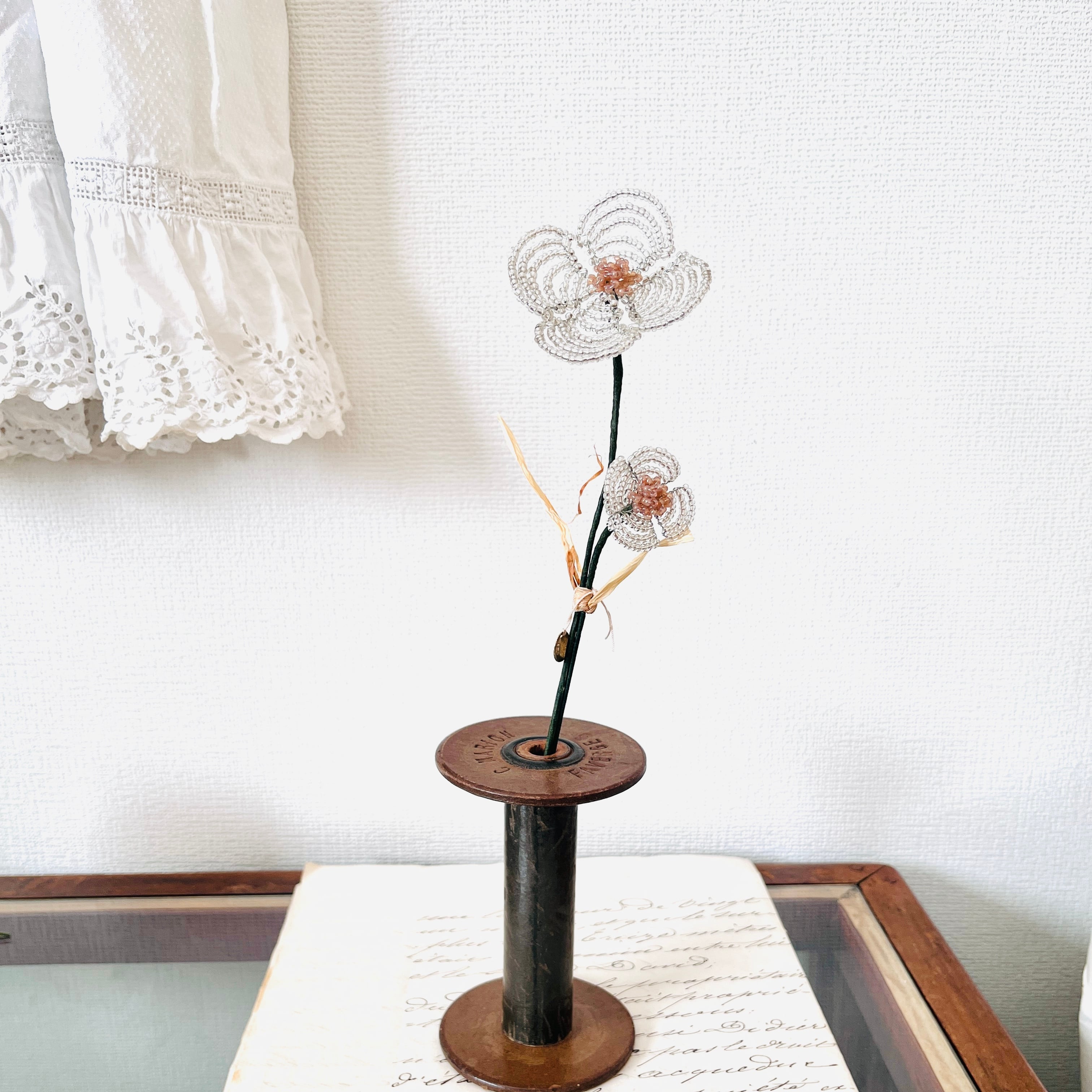 クリアなビーズが鈍く輝く、2本セットのビーズフラワーが登場!