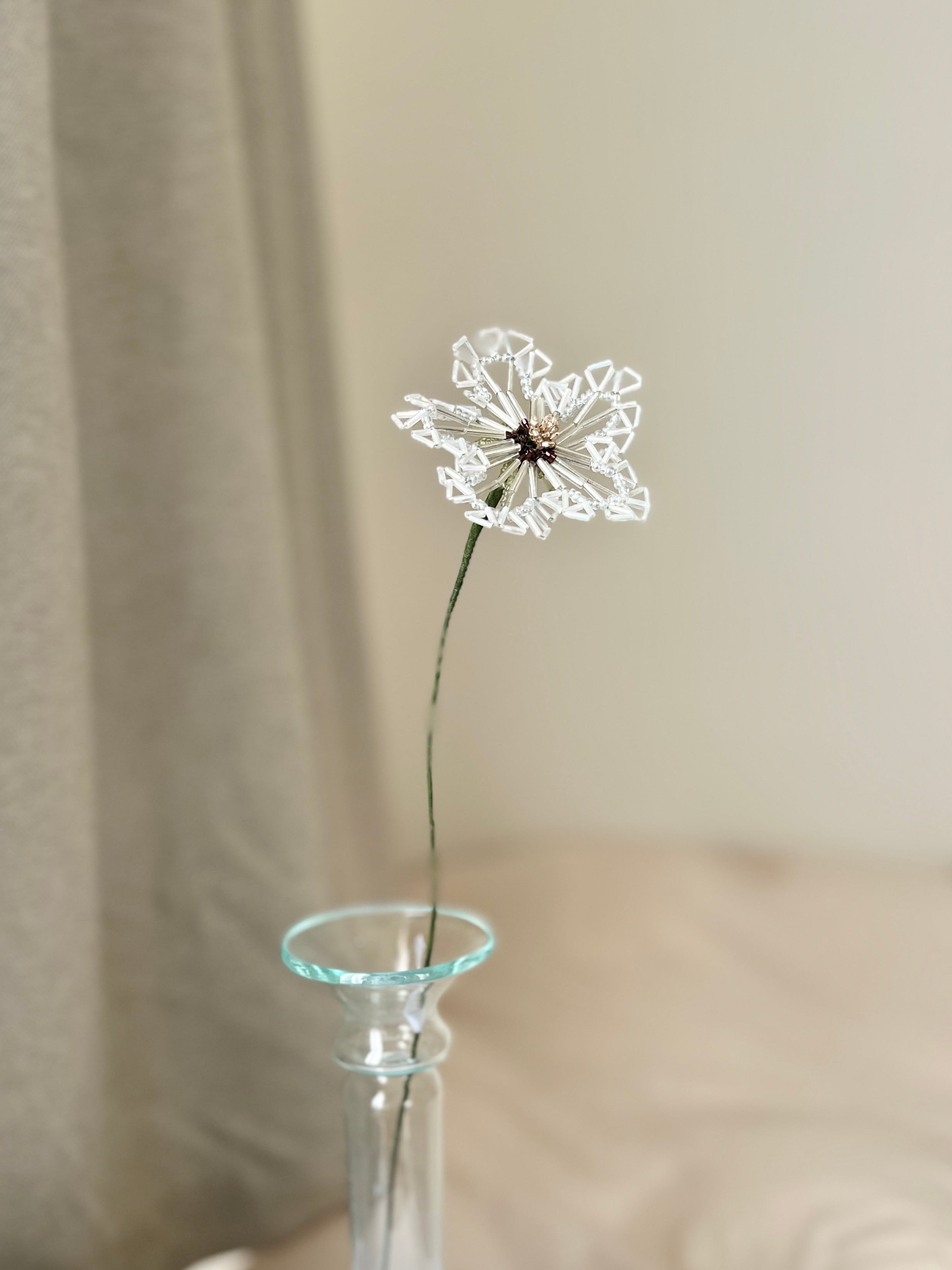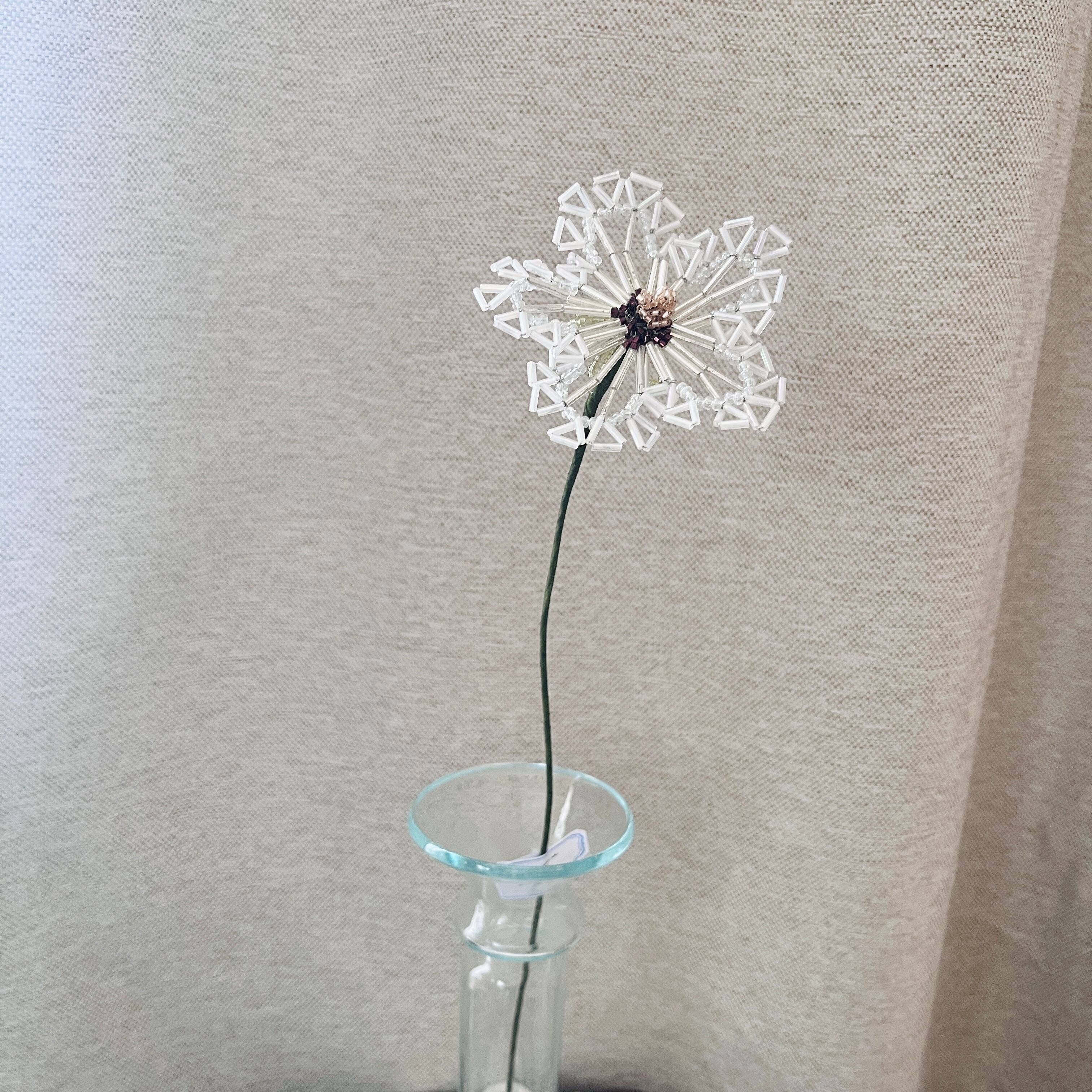 この「万華鏡(L) ビーズフラワー」は、繊細でありながらダイナミックなデザインが特徴です。お部屋のインテリアや、特別な日のテーブルセッティングにぴったりです。さりげなくも印象深いアクセントとして、どんなスタイルにも合います。