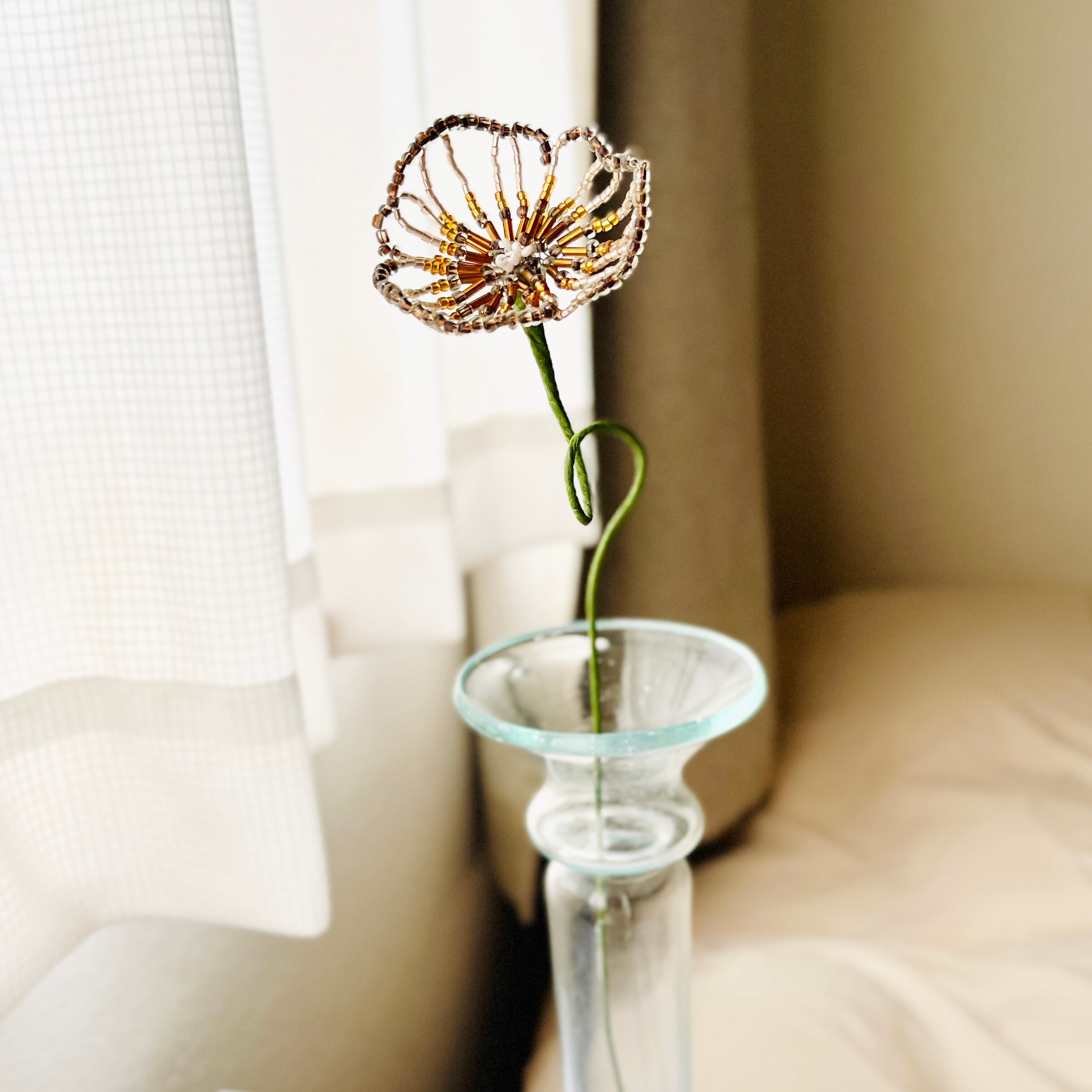 深いブラウンの色合いが、あなたの空間に温かみと落ち着きをもたらします。この「オランジェット ビーズフラワー」は、アンティーク調な家具とも好相性のデザインが特徴です。心地よい雰囲気で、リラックスしたい時にぴったりなアイテムです。