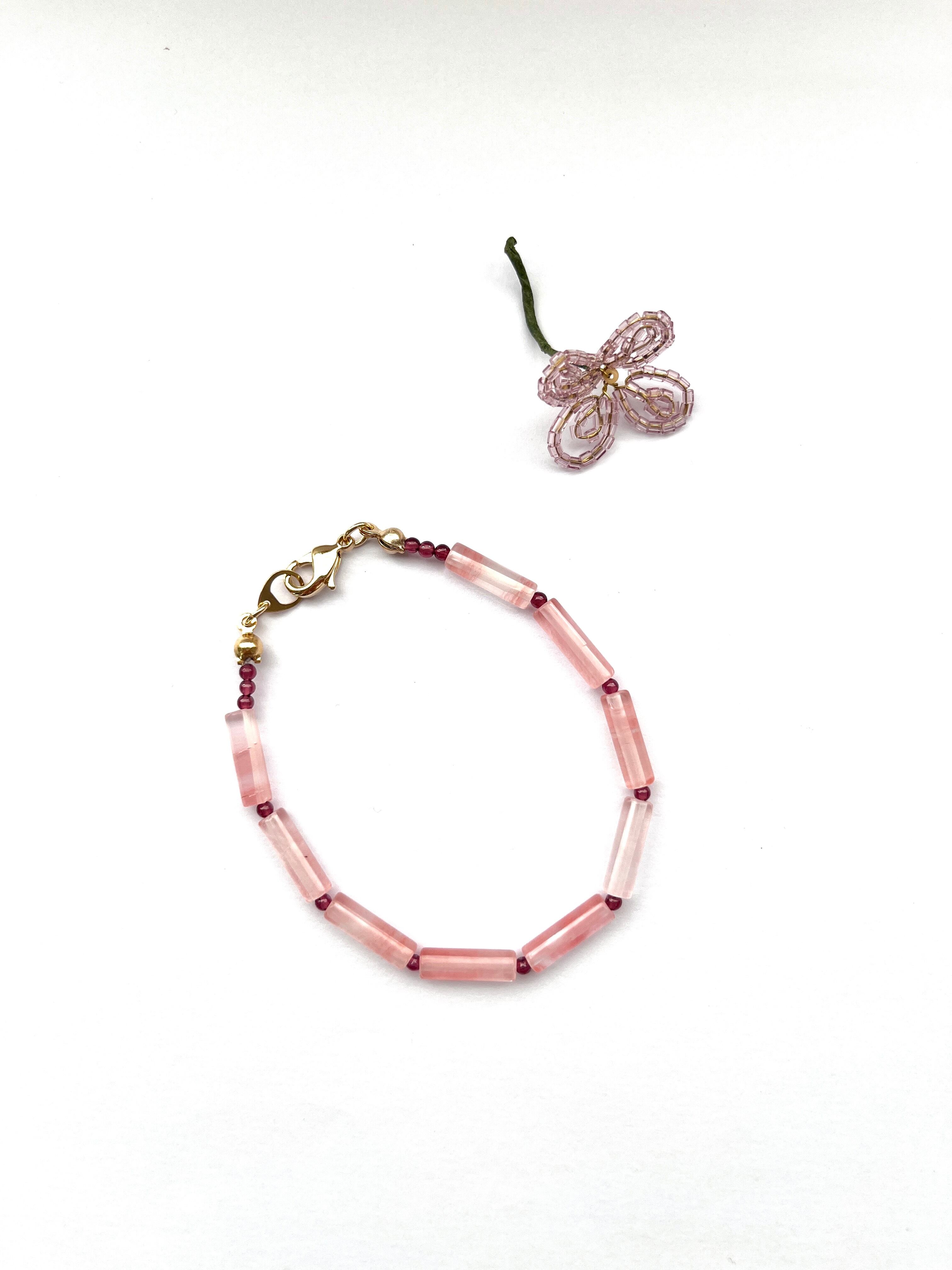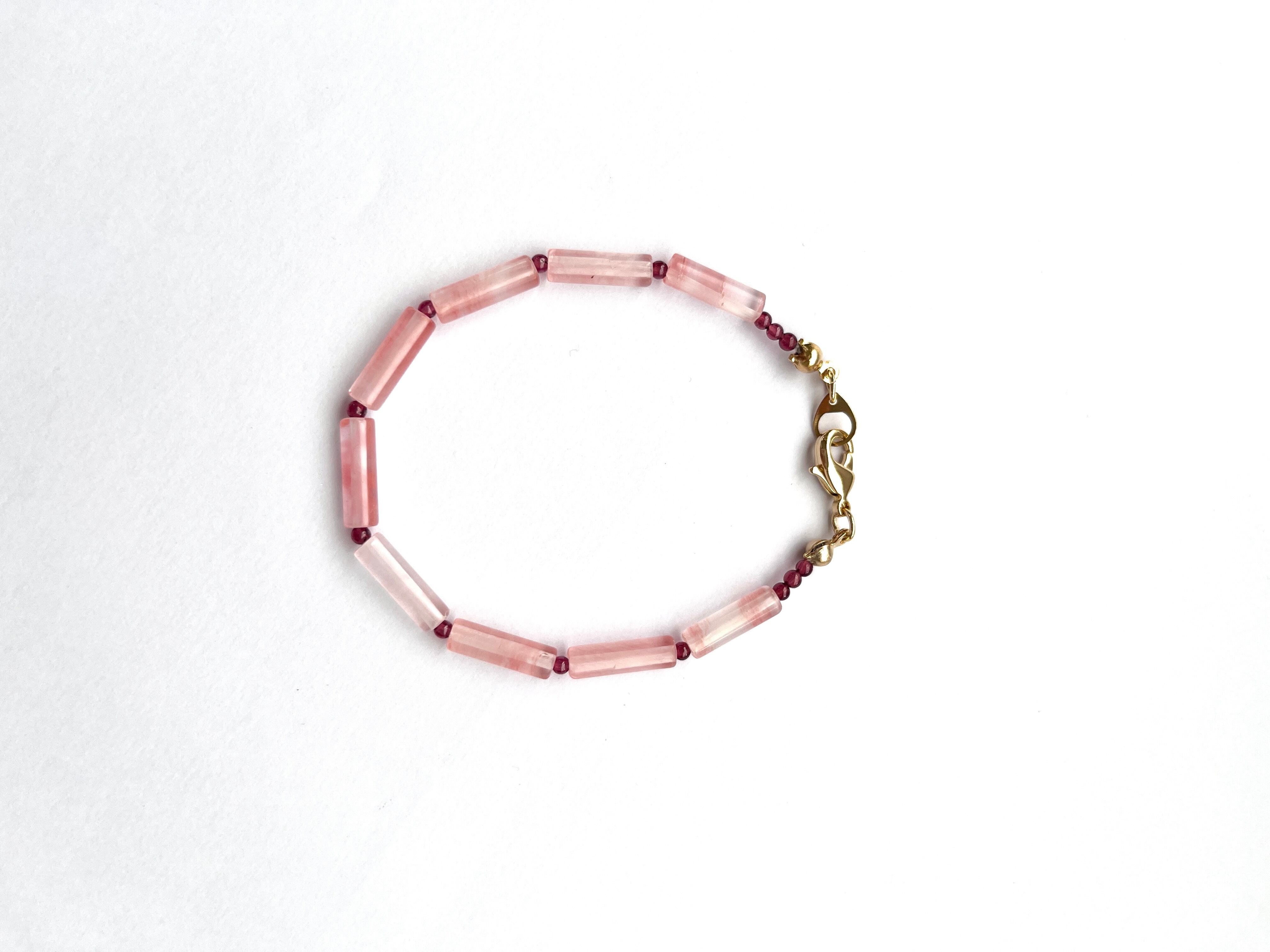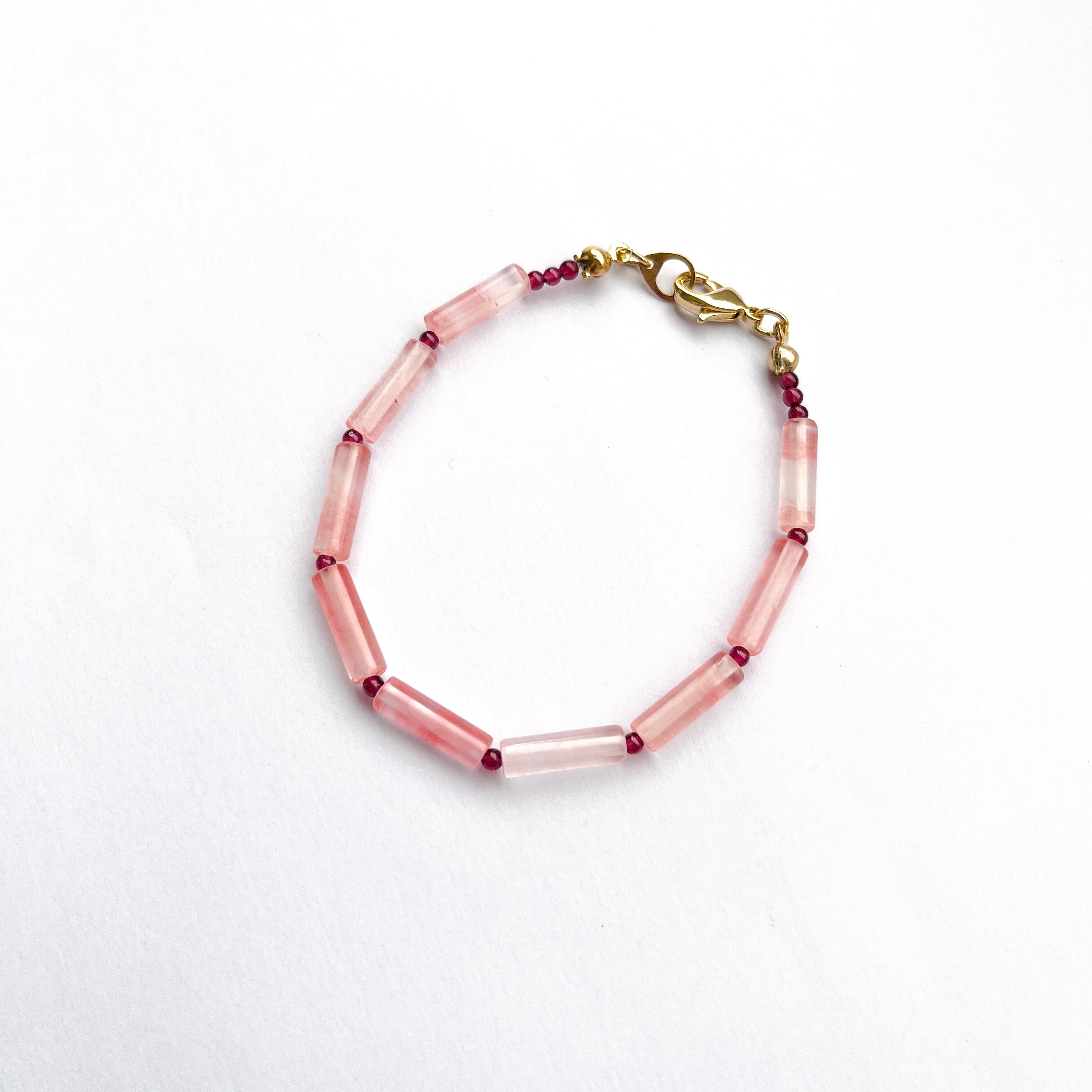 大人の女性にもぴったりな「pink ブレスレット」は、エレガントなピンクとレッドのコンビネーションが特徴のアクセサリーです。しっかりとした存在感がありながら、さりげない可愛らしさを添えるこのブレスレットは、日常のコーディネートを華やかに引き立てます。