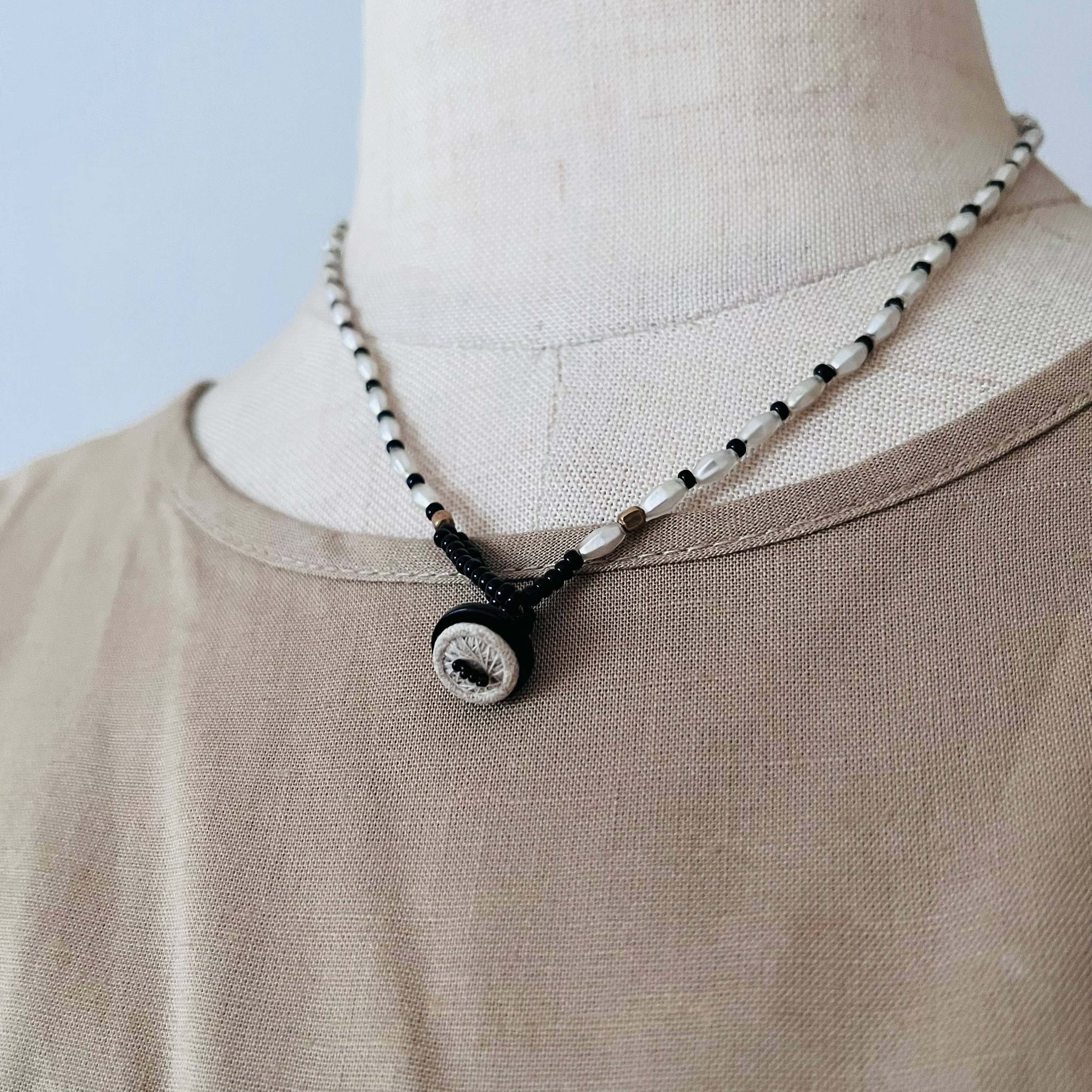 アンティークスフレビーズネックレスは、上品さと個性を兼ね備えたアクセサリーです。