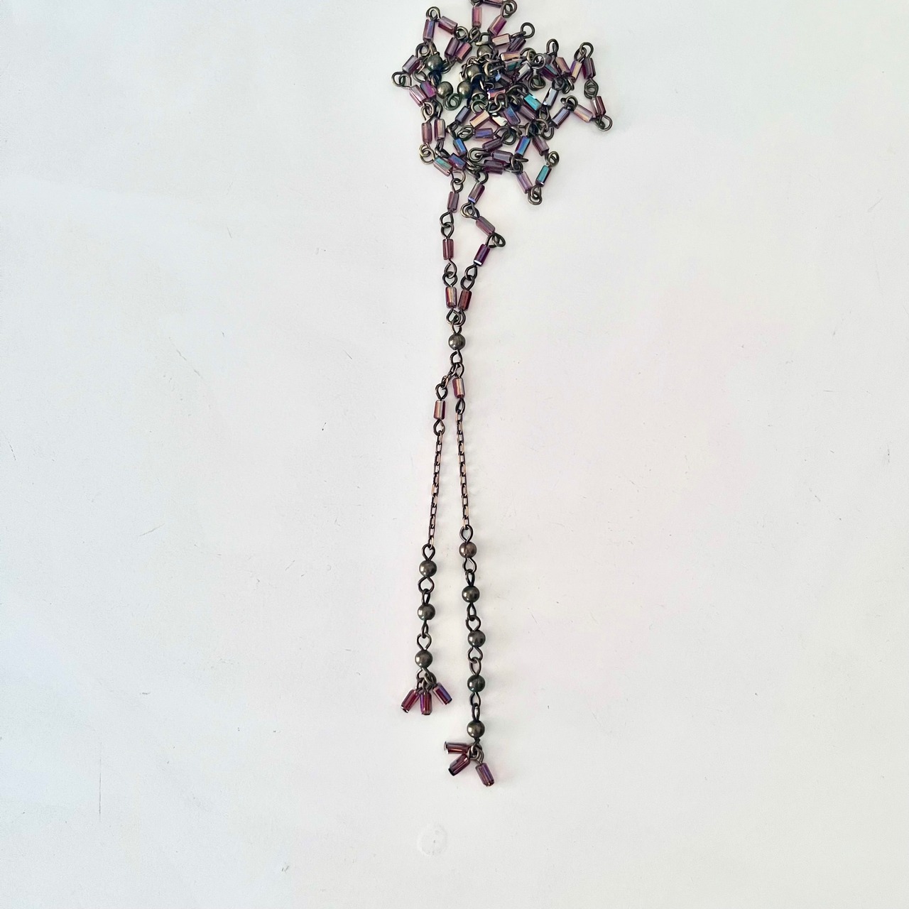 長方形のガラスビーズと、真鍮ボールを繋いだネックレスです
