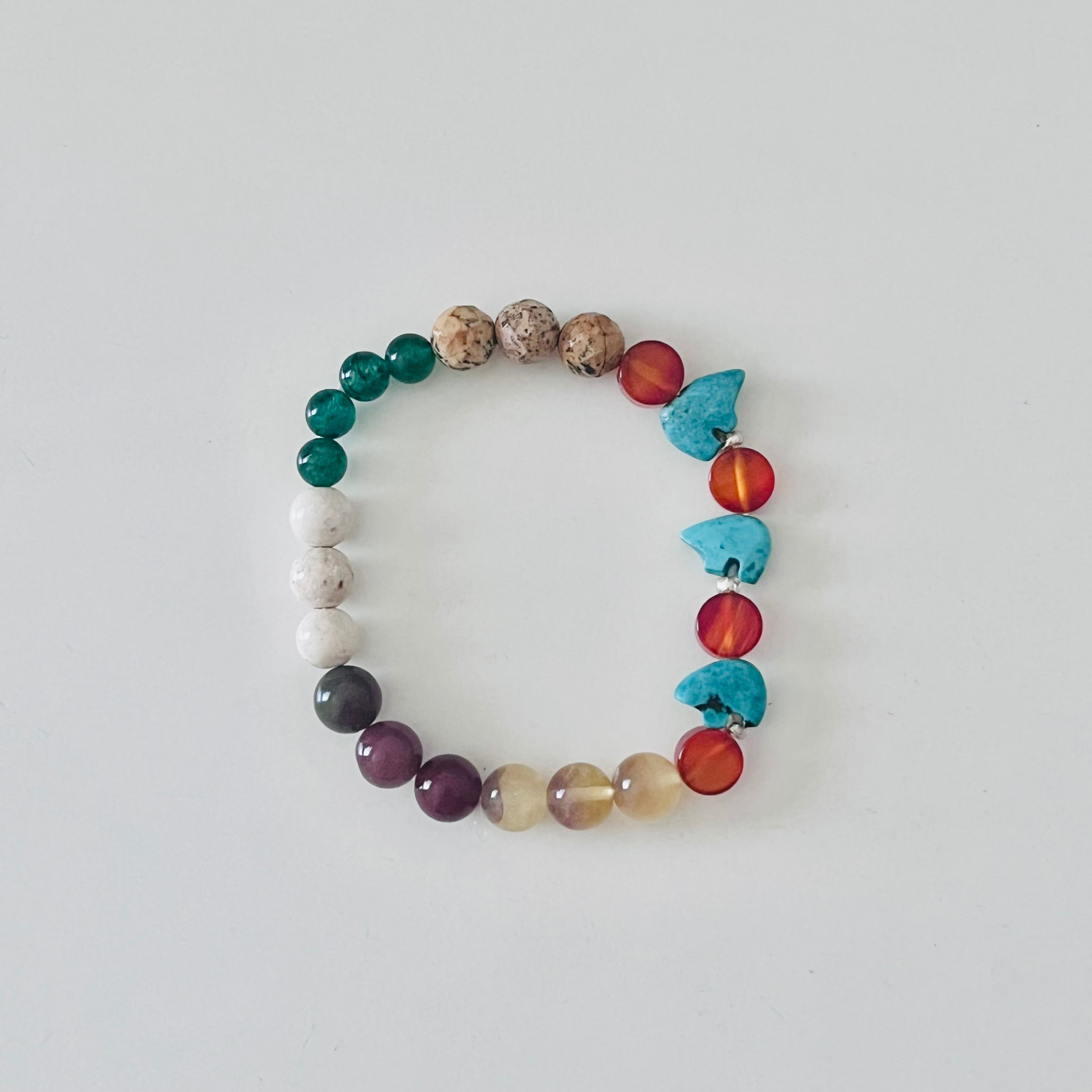 小さなターコイズベアーと6種の天然石のブレスレット