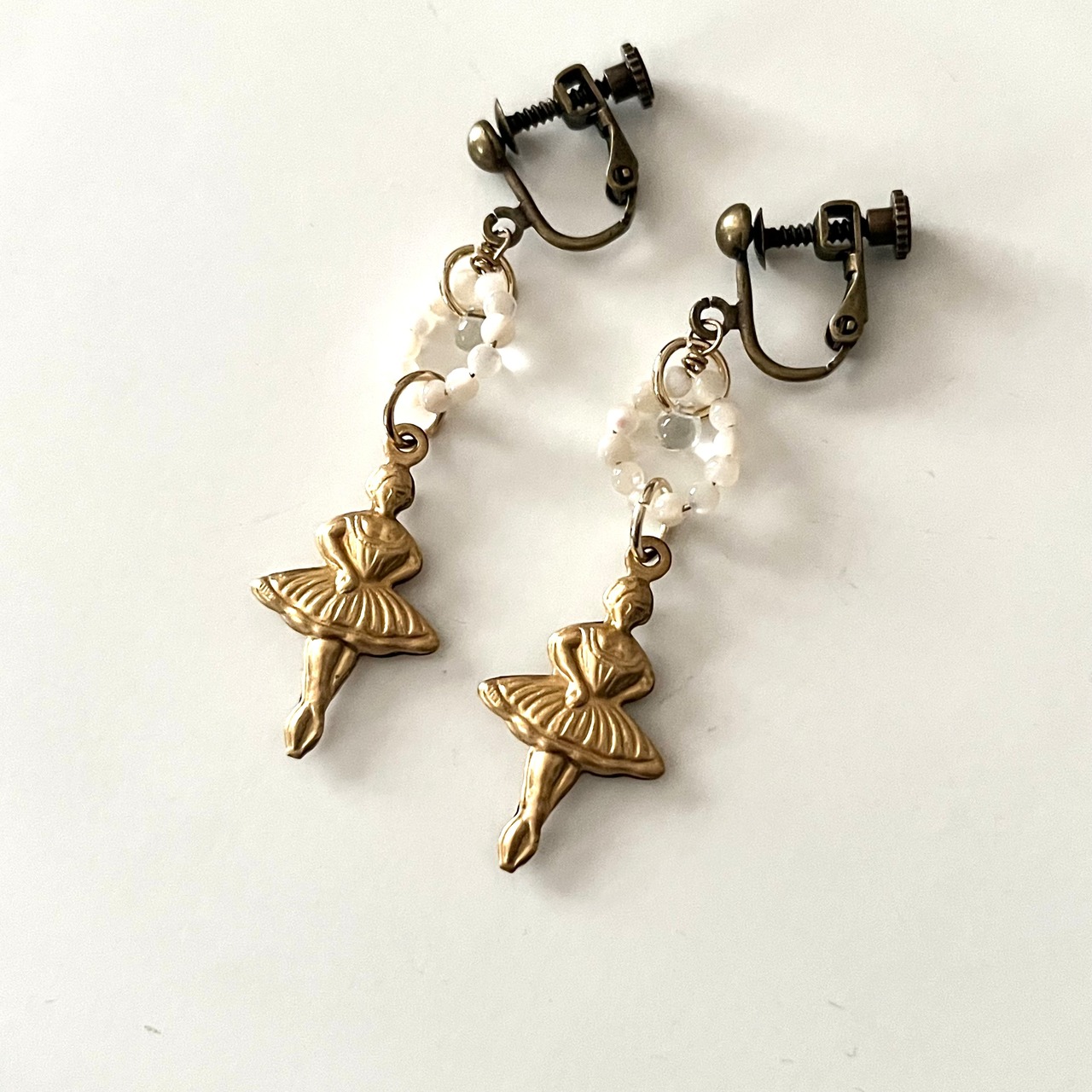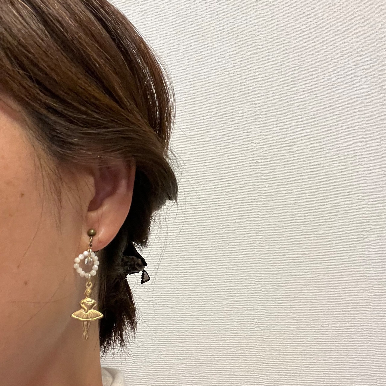 優雅なバレリーナの動きを思わせる、魅力的なバレリーナイヤリングピアスの登場です。シェルで形作られたサークルの中には、透き通るガラスドロップが揺れ動き、耳元で華やかな輝きを放ちます。