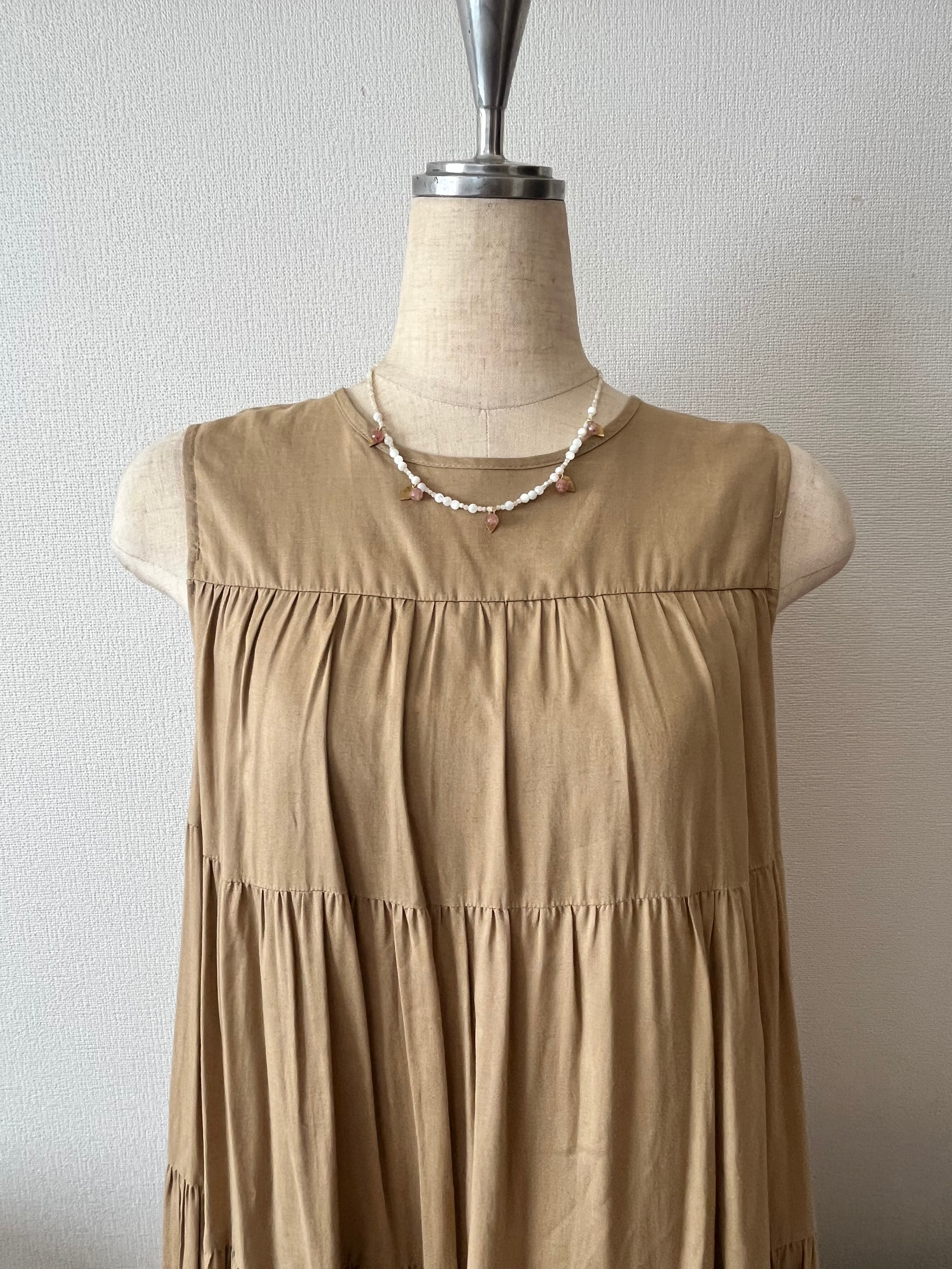 このネックレスは、マザーオブパールの優雅な光沢とエピドートのアンニュイな色合いが美しく調和しています。天然石の持つ個性が、洗練された大人の魅力を演出し、特別な日や日常使いにも最適です。